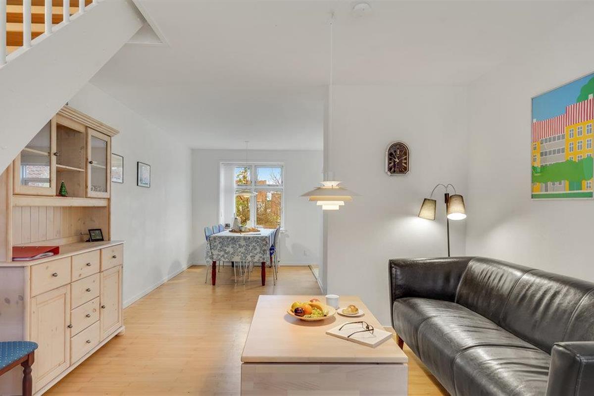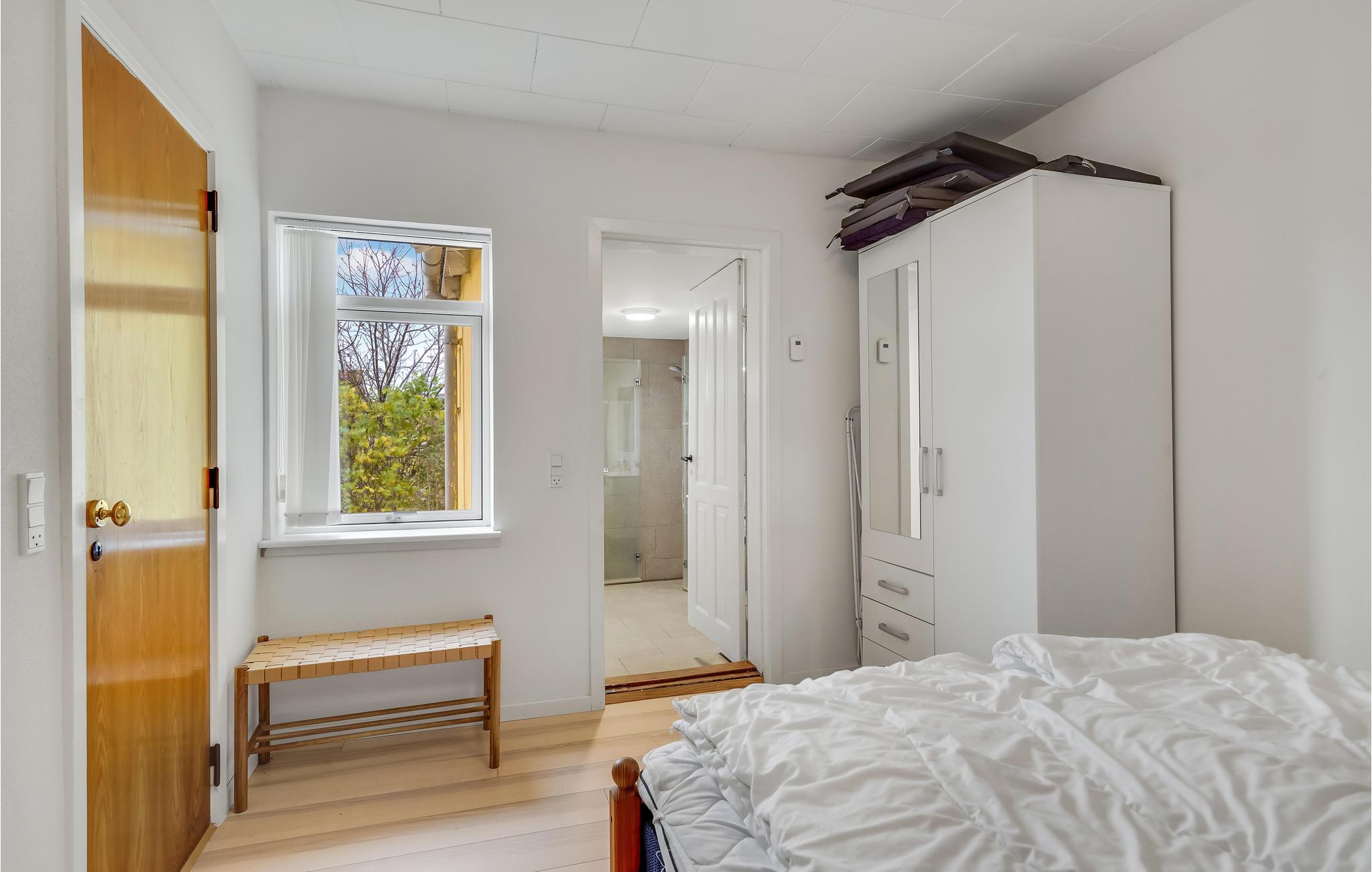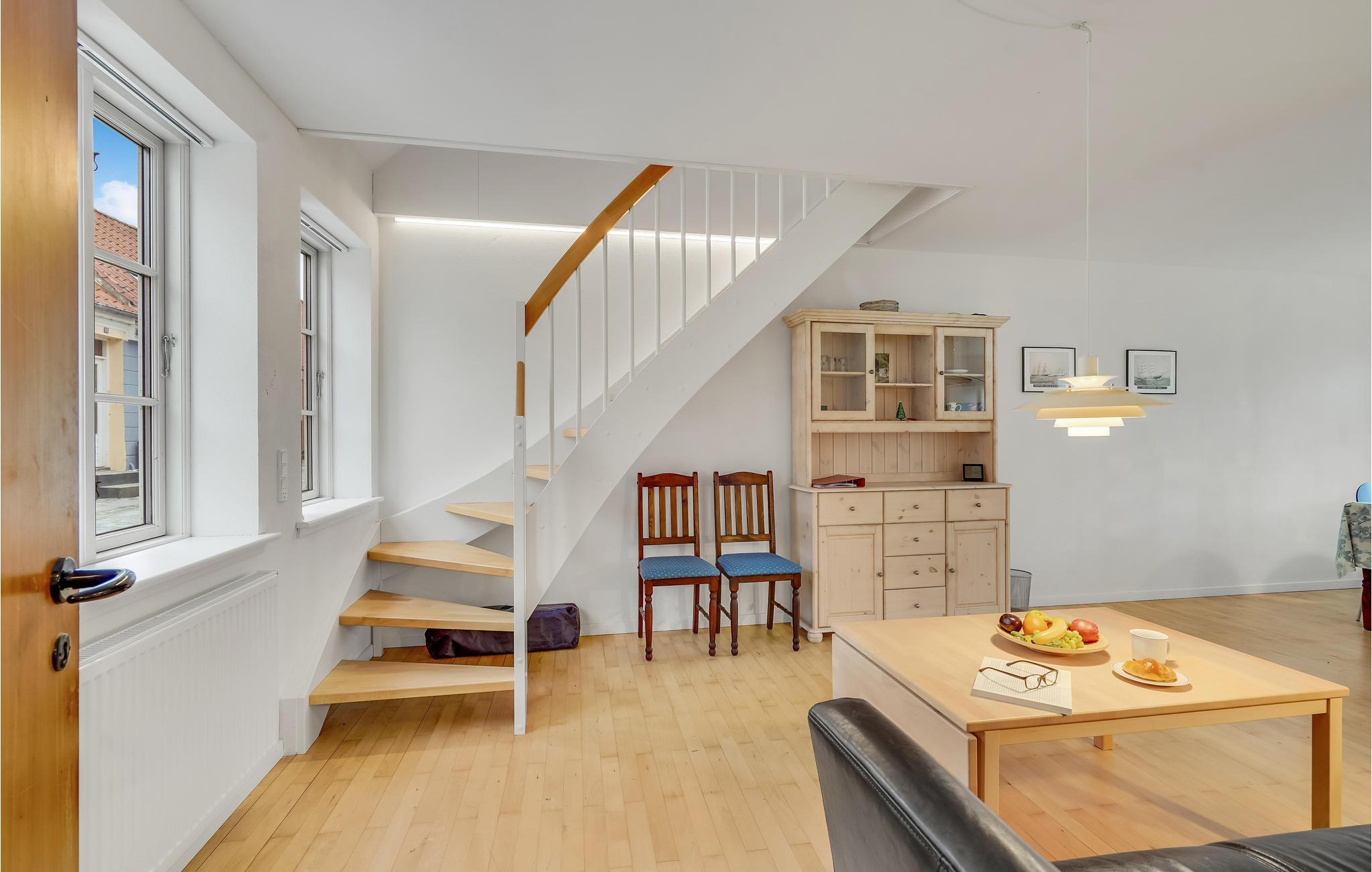 Het Bellevue strand ligt op 800 m van het vakantiehuis. Vanuit de woning komt u uit op de Havnegade, wat de directe verbinding is met het water. De tapijten in het huis liggen los en de toegang tot de badkamer op de begane grond is via slaapkamer 2.