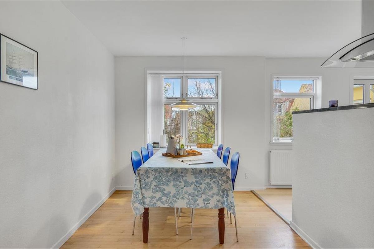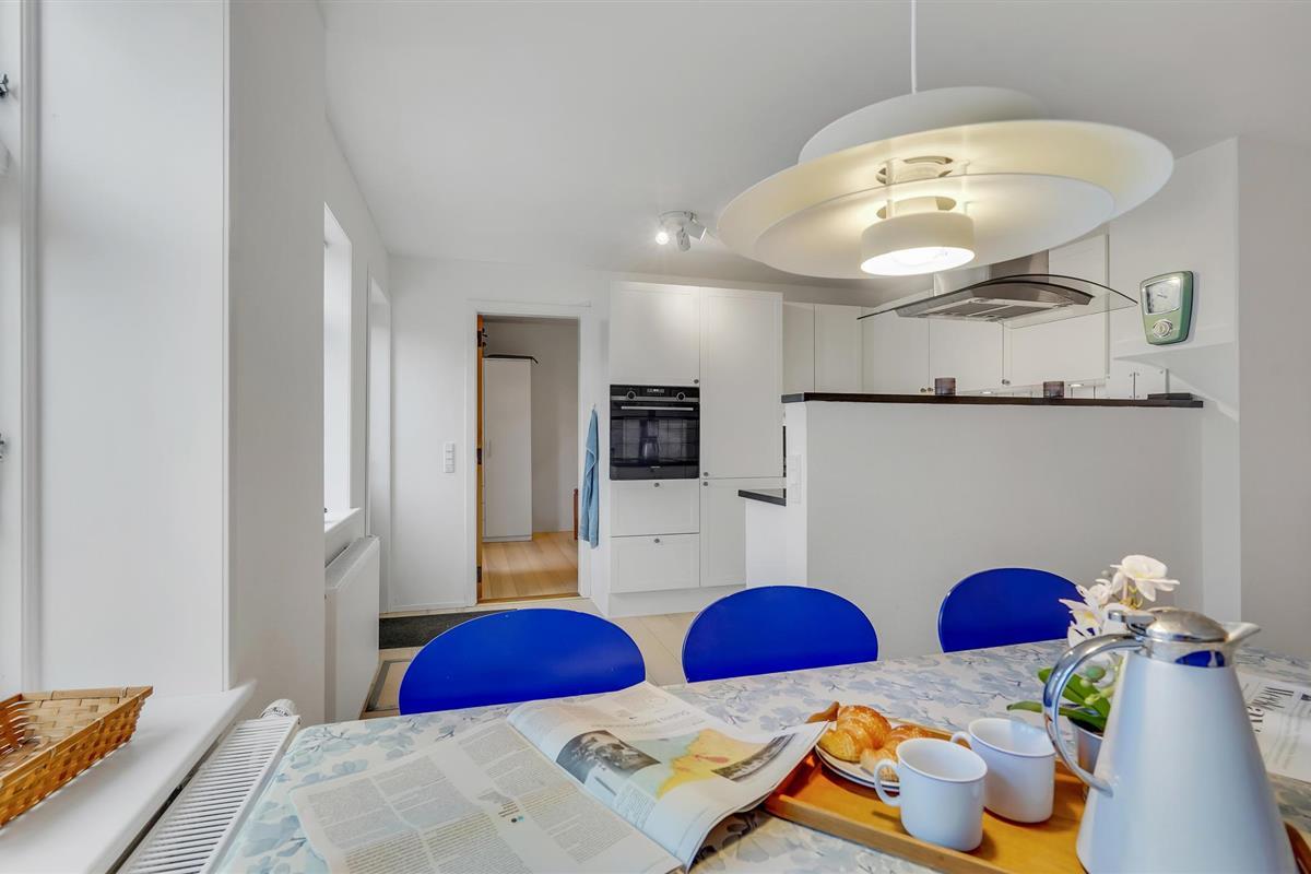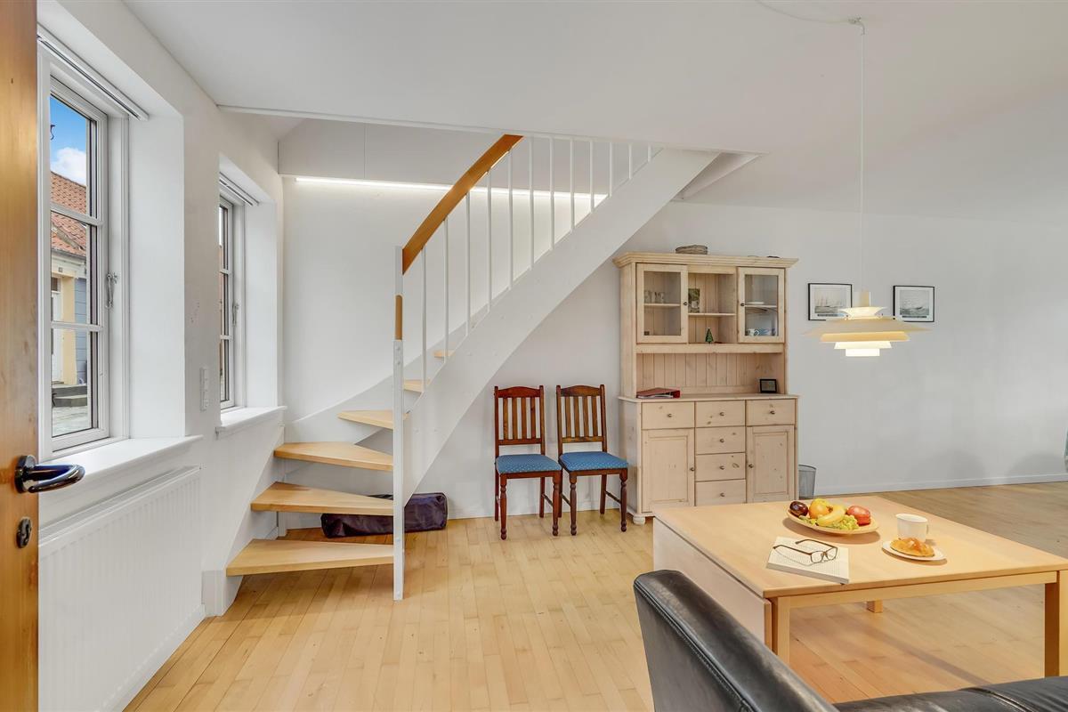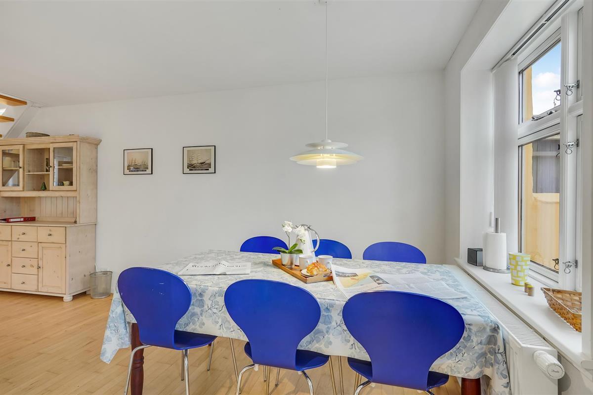Het Bellevue strand ligt op 800 m van het vakantiehuis. Vanuit de woning komt u uit op de Havnegade, wat de directe verbinding is met het water. De tapijten in het huis liggen los en de toegang tot de badkamer op de begane grond is via slaapkamer 2.