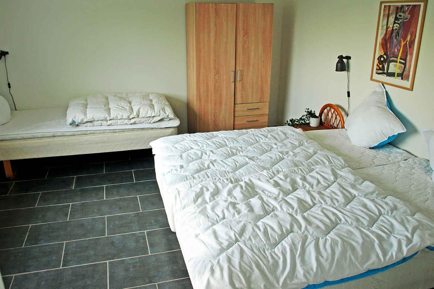 Ruim vakantiehuis van 225 m² verdeeld over 2 verdiepingen, gelegen op de tweede rij bij de Langelandsbelt. Geschikt voor grote gezelschappen met 6 slaapkamers, 11 eenpersoonsbedden en 2 badkamers. Grote woonkamer met houtkachel en gratis internet.