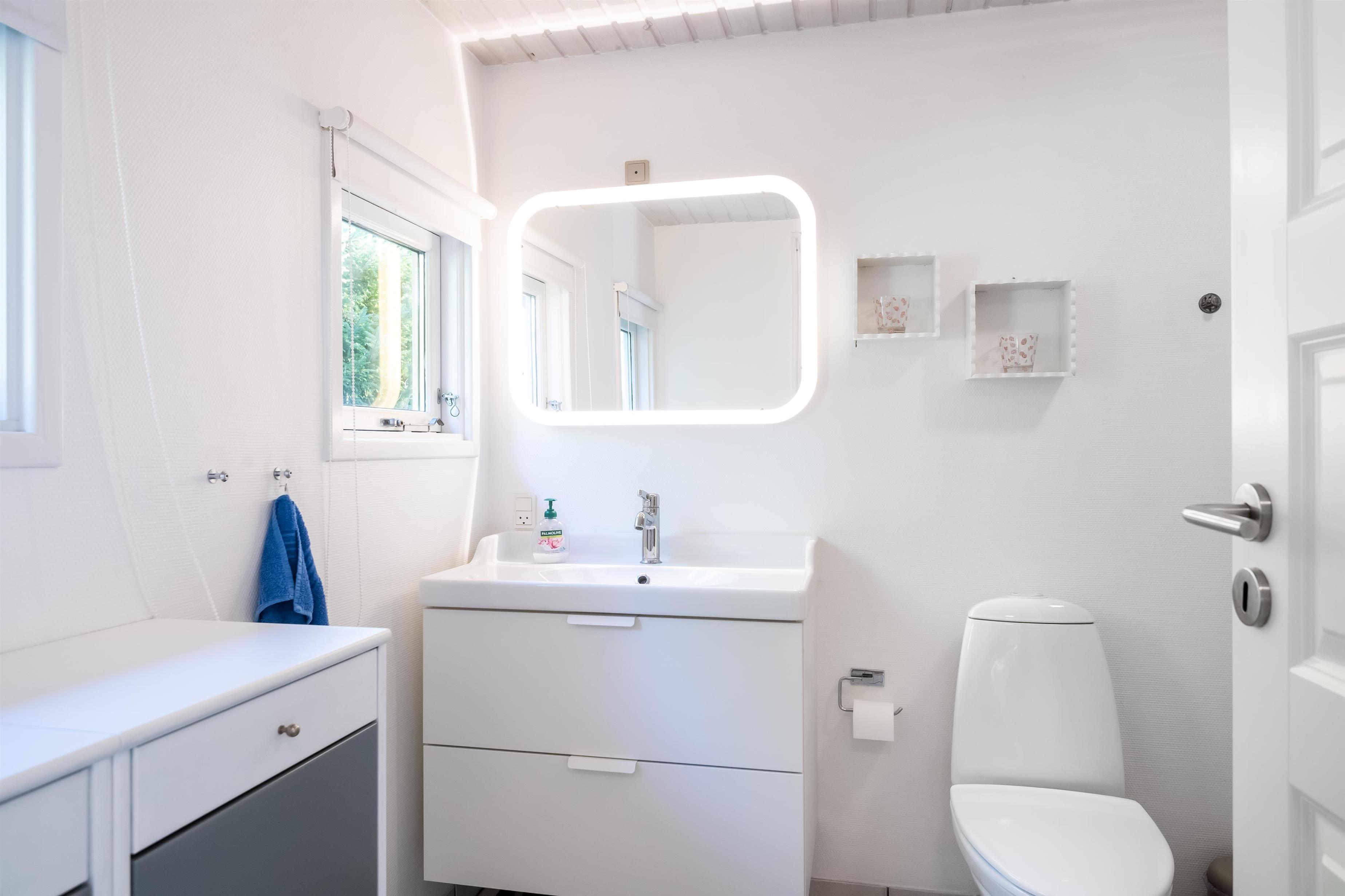The large stone-paved terrace invites outdoor coziness. Here you can sit in several places, easily choosing between sun or shade. The house is ideal for an active family with children, where on good summer days you can enjoy outdoor activities with both swings and a sandbox.