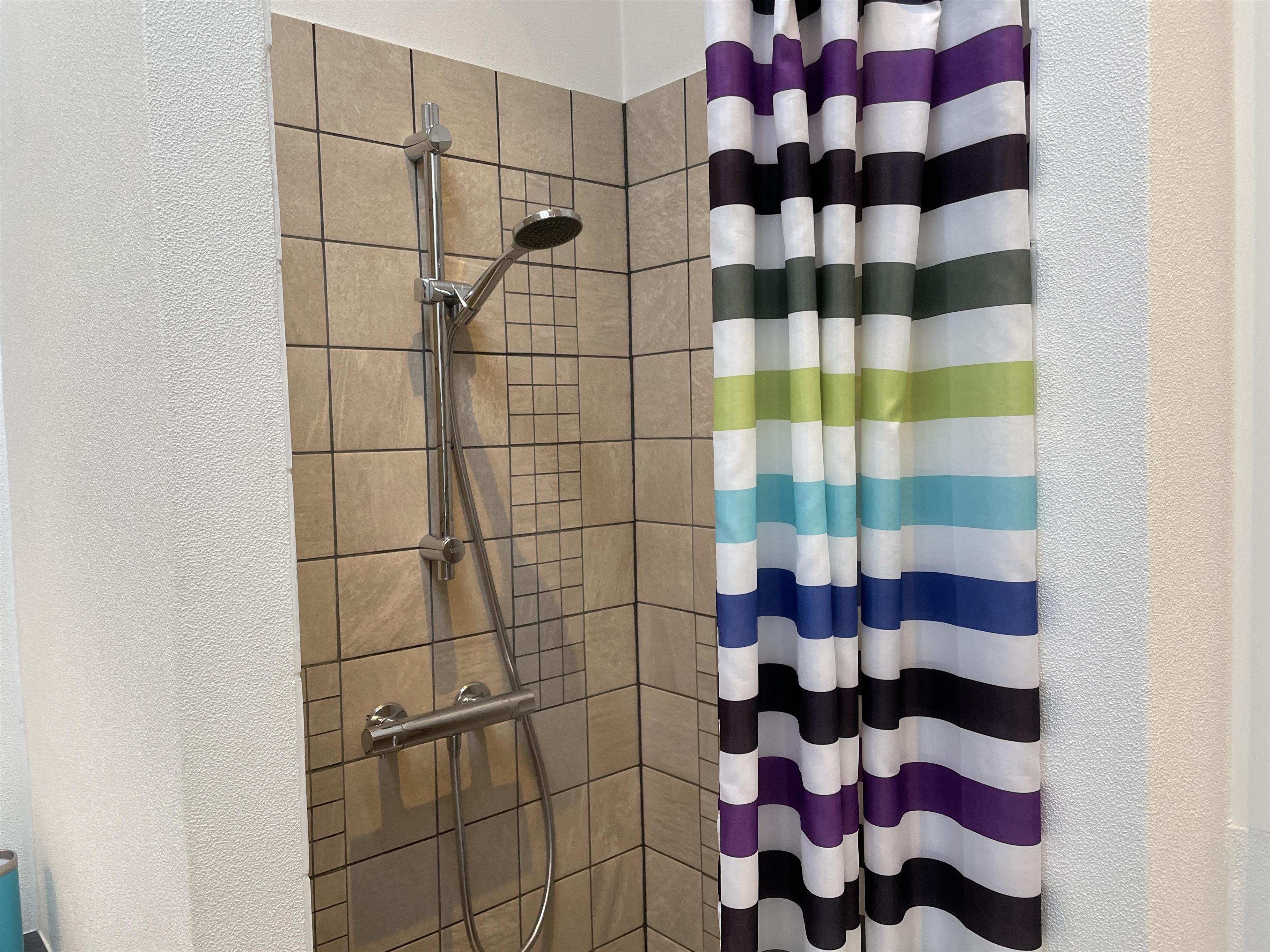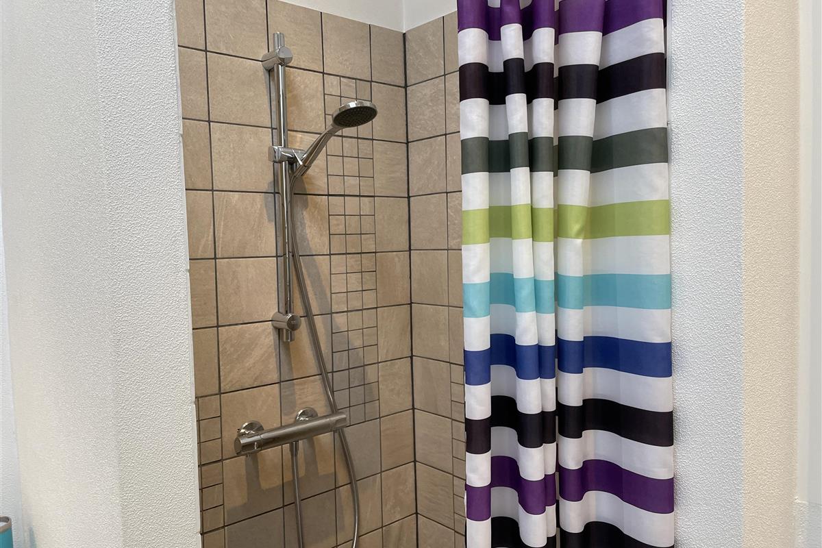 The summer house has two spacious bedrooms, each offering plenty of room to relax and enjoy your vacation. The interior design features a cohesive blue theme that ties the entire house together harmoniously, bringing the tranquility and beauty of the sea inside. This blue thread creates a relaxing and maritime ambiance that makes it easy to feel at home. The house also includes a beautifully designed bathroom with a shower and a washing machine.