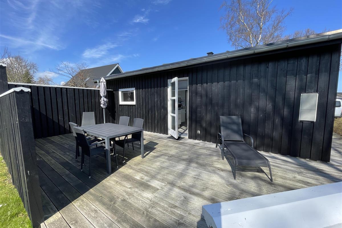Outside, the garden provides a captivating sea view that can be enjoyed from the various terraces. These terraces are designed to offer shelter from the wind, allowing you to fully enjoy the Danish summer weather. Here, you have ample opportunities for outdoor living, whether you want to enjoy a quiet morning coffee, barbecue with the family, or simply relax in the sun.