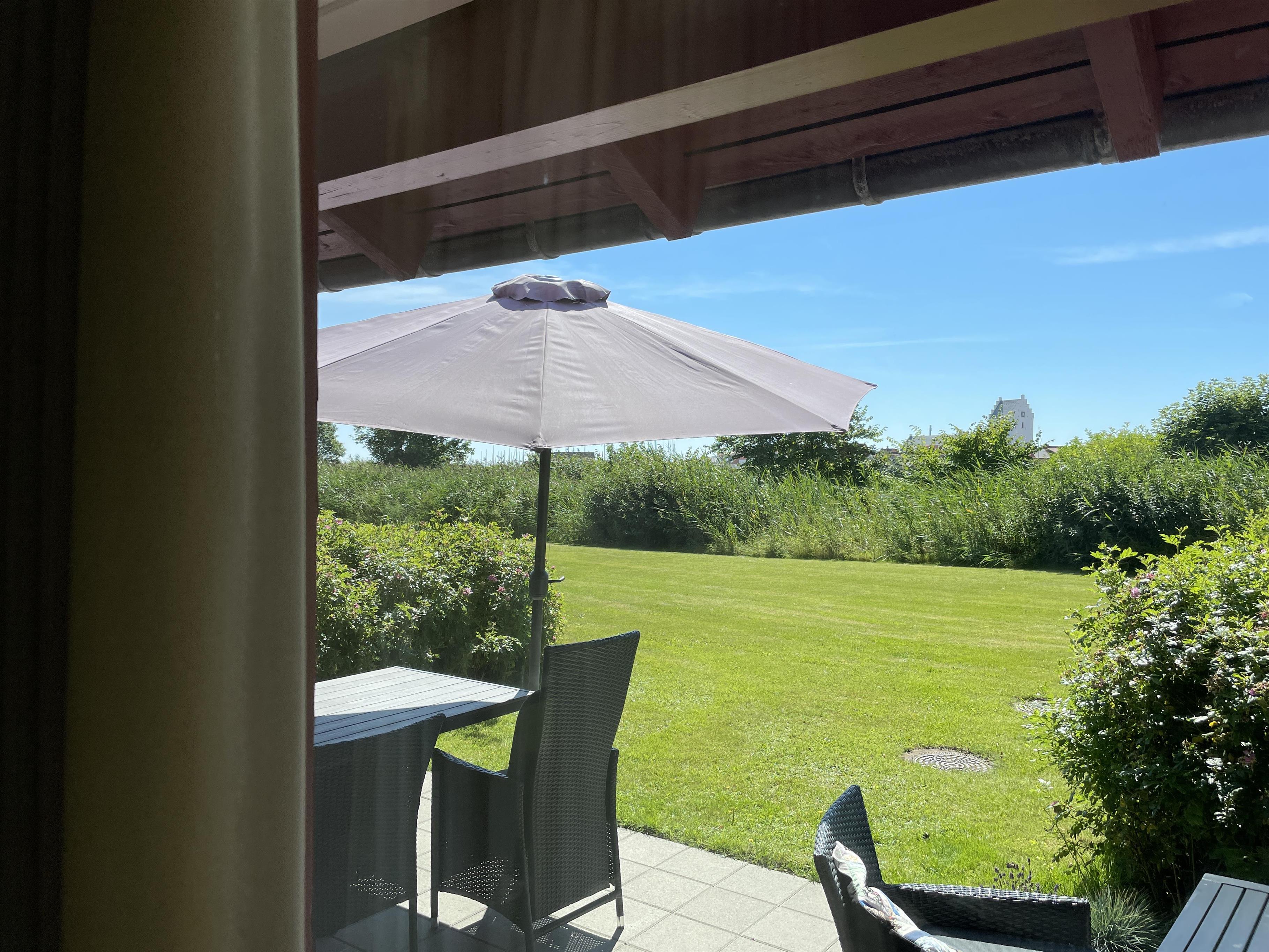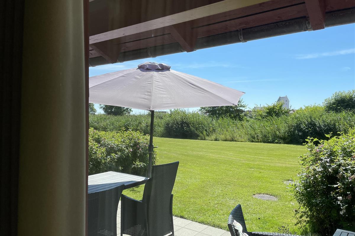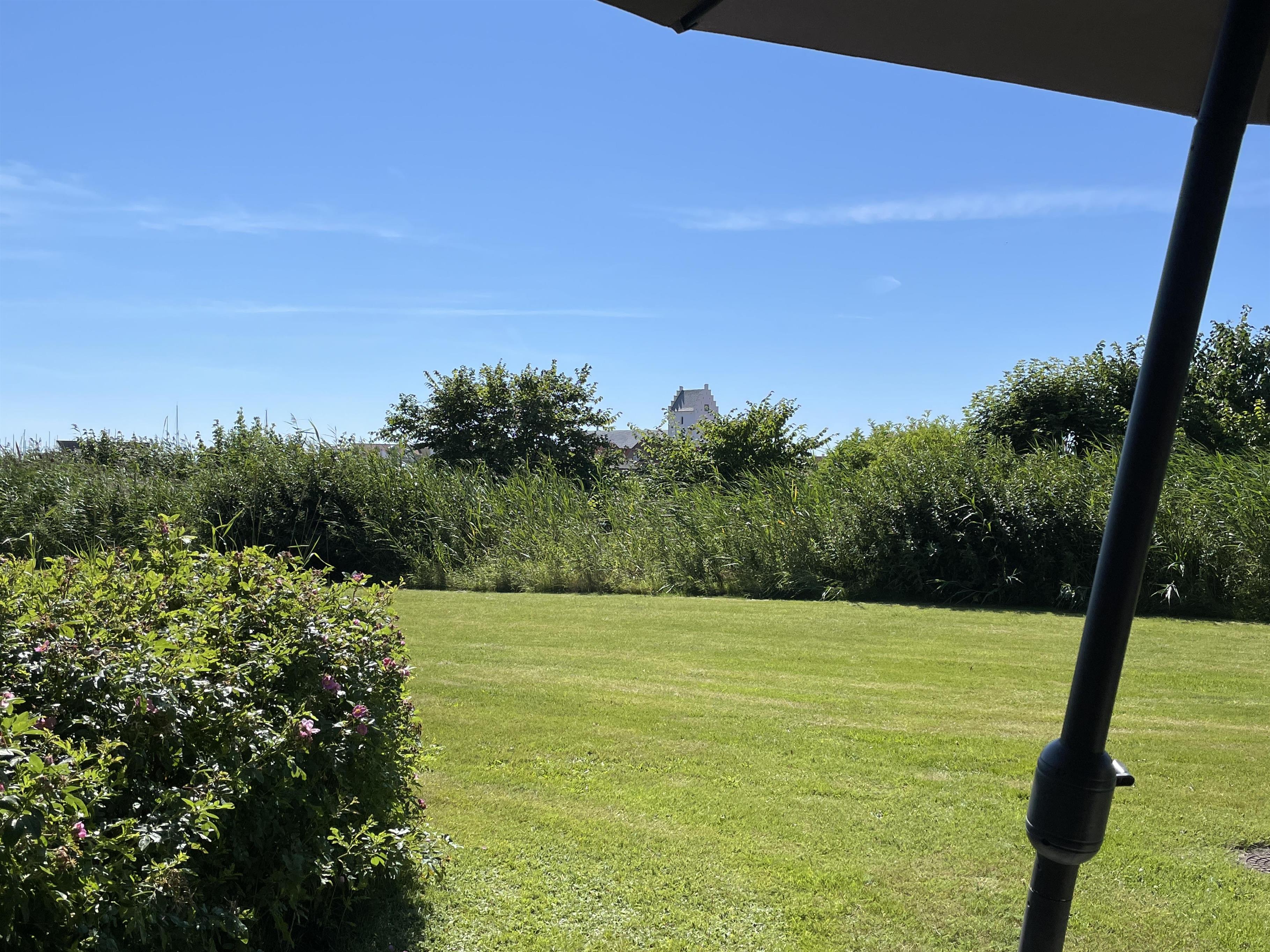 From the living room and terrace, you have a beautiful view over the stream and towards the old town and church - a beautiful sight in the daytime, but also beautiful when the lights sparkle from the town houses in the evening - one is tempted to call it Sæby's little skyline. The terrace has beautiful black wicker garden furniture. There is a garden table for 6 people + 2 adjustable chairs, 2 footstools, and a coffee table for 2 (a total of 10 chairs and 2 x 6 person tables) - and on the large, shared lawn just outside there is plenty of opportunity for both children and adults to enjoy themselves. There is also a terrace in front of the house.