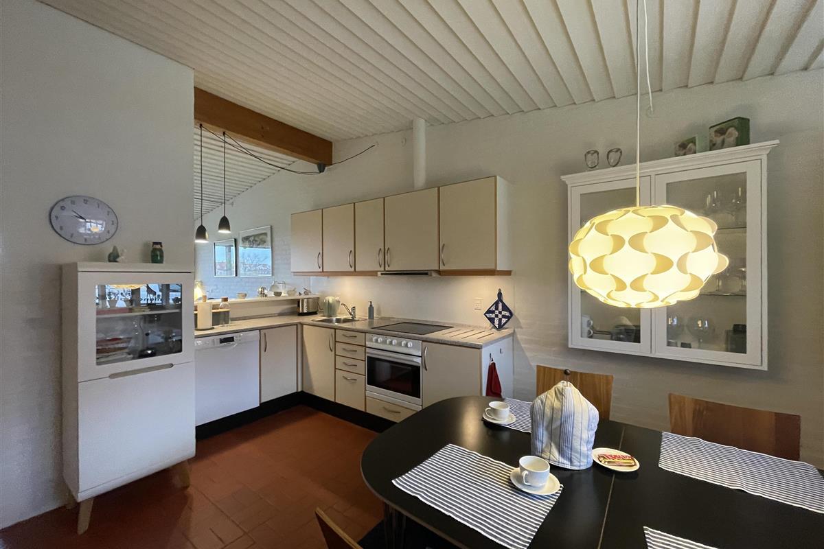 From the main entrance, you enter a kitchen with a good dining area for 6 people and a well-maintained and very functional kitchen, with doors where the owner has preserved in the original fine design. You also have a dishwasher at your disposal.