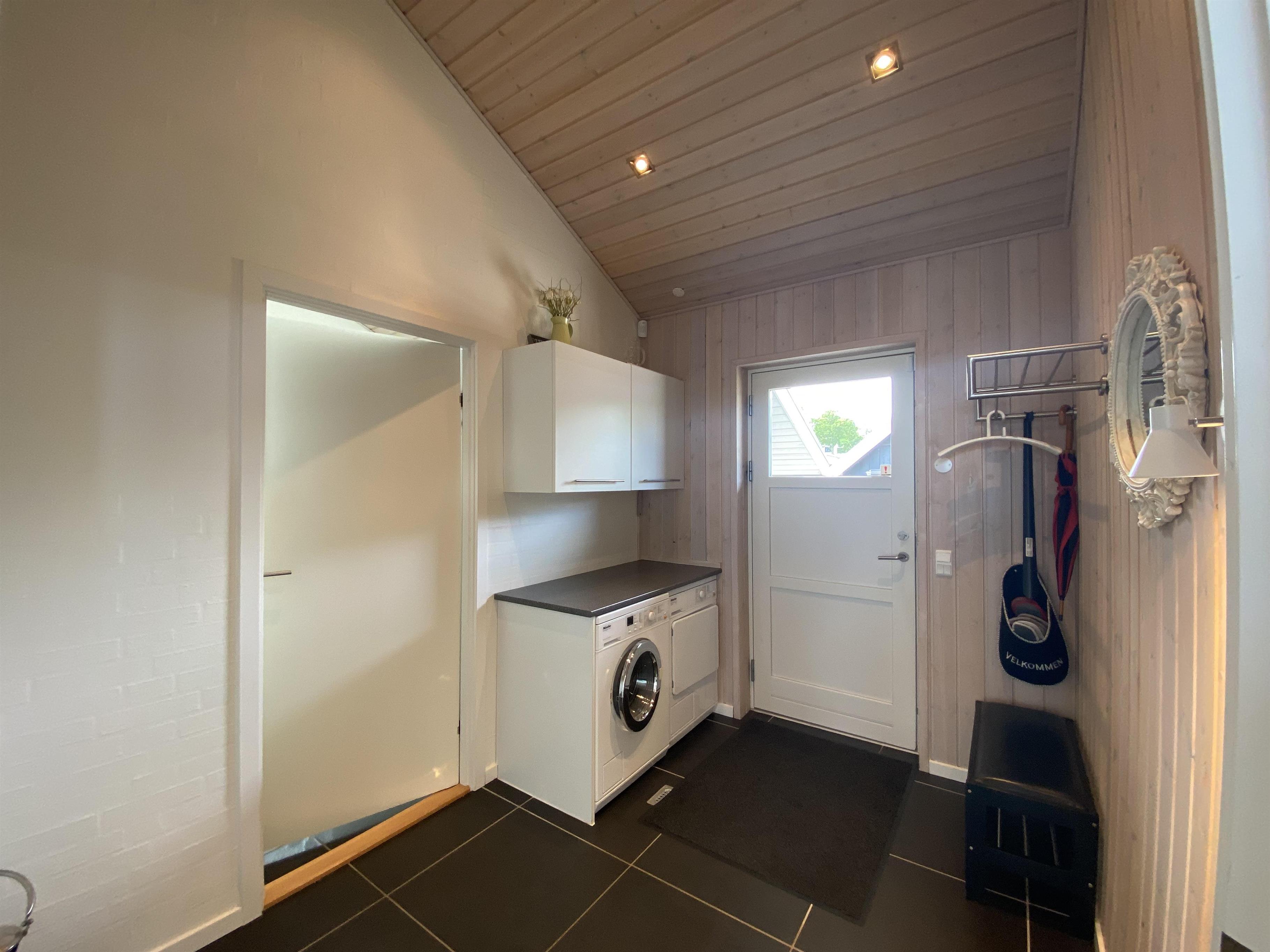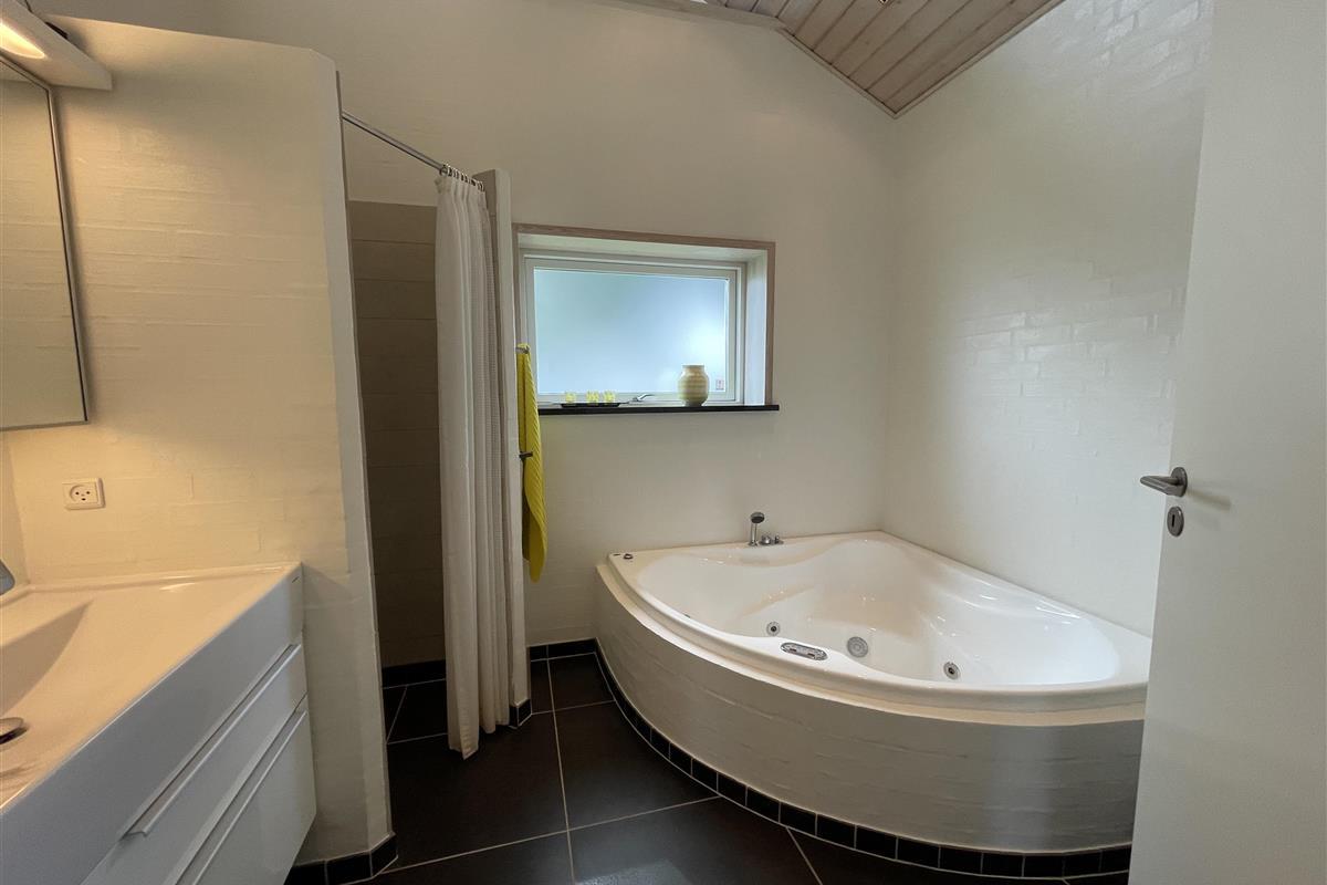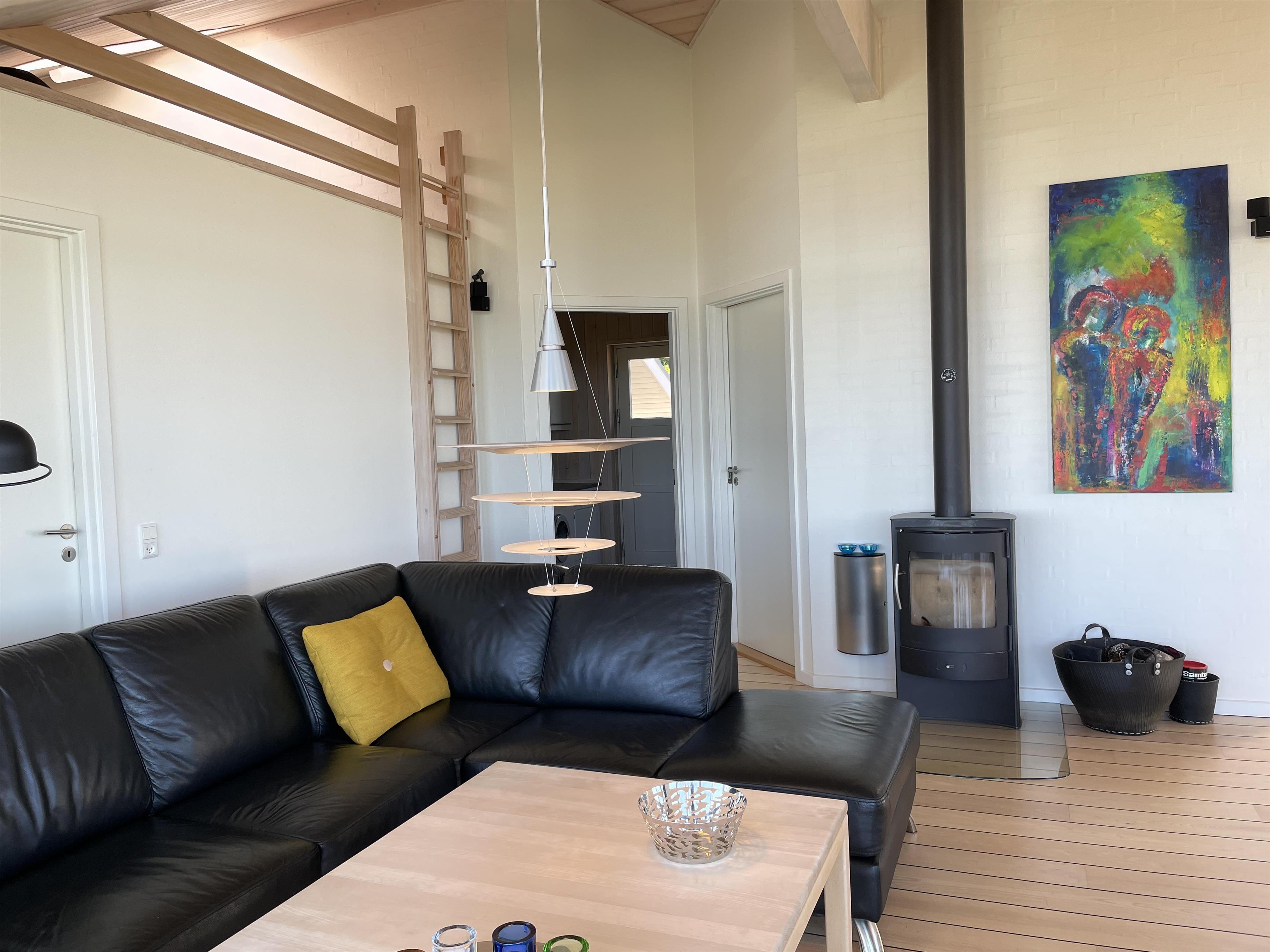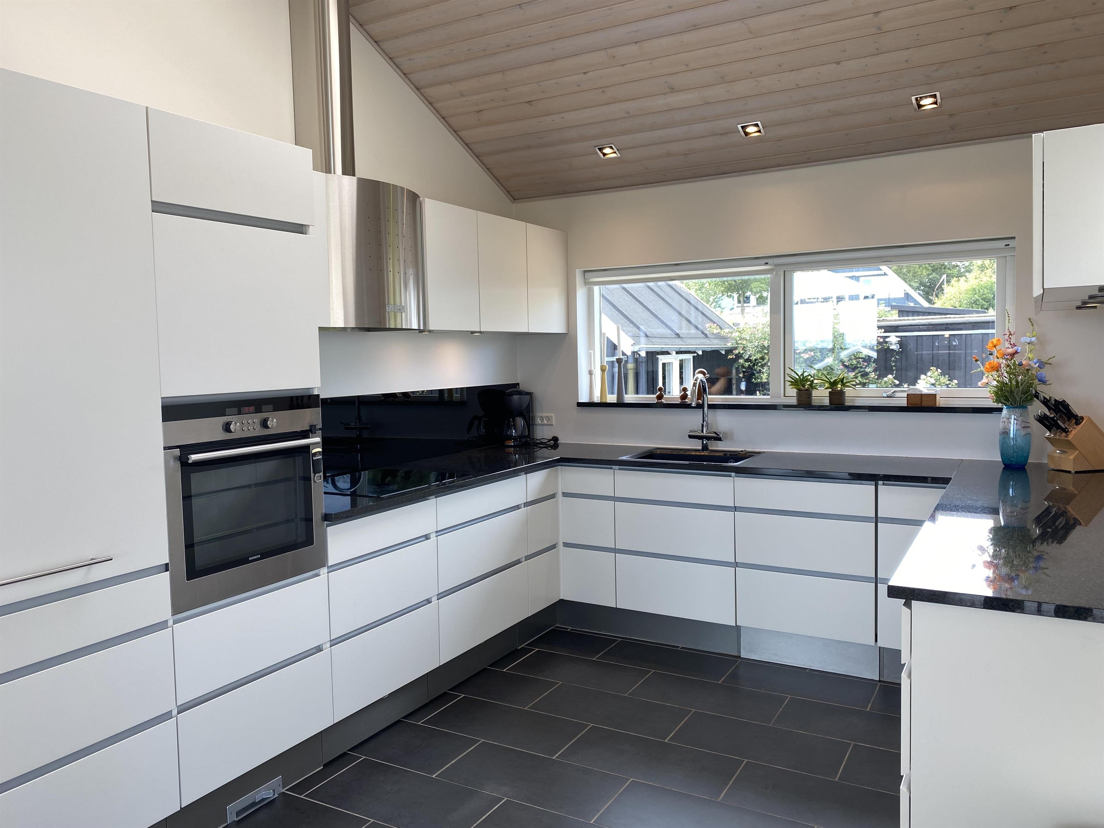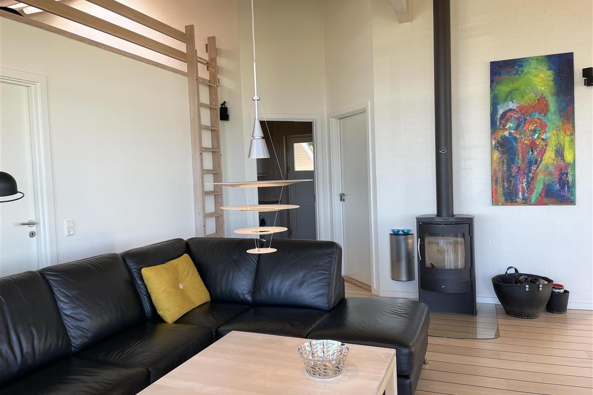The kitchen, dining area, and living room are designed as a large, open space from which you can enjoy a breathtaking view of the Kattegat. From the sofa, you can admire the beautiful panorama, see Frederikshavn on the horizon, and follow the ship traffic. The kitchen is top modern with an impressive granite countertop and all the necessary kitchen equipment. There's also a Quooker installed, providing boiling water instantly. In the annex, you'll find an extra fridge with a freezer, ideal for additional storage. The bathroom is bright and elegant with large drawers and a wonderful spa bath, where you can relax after a day full of activities.