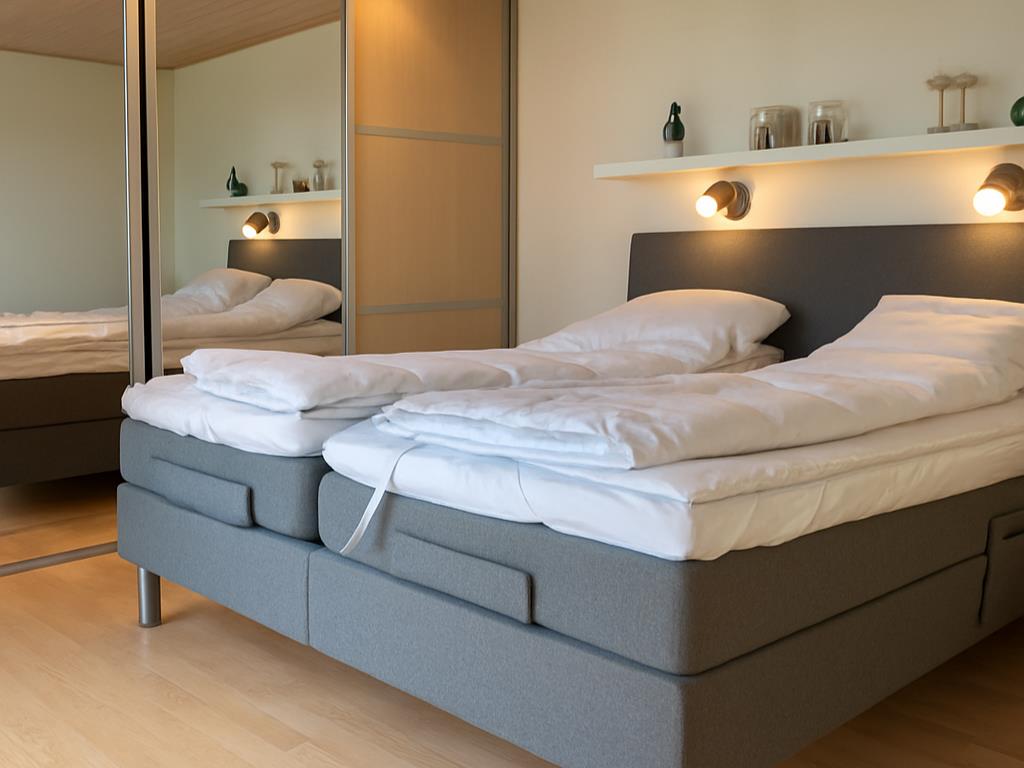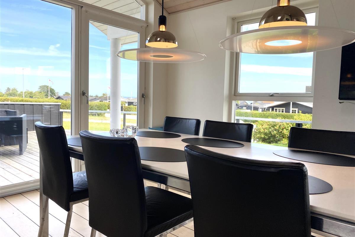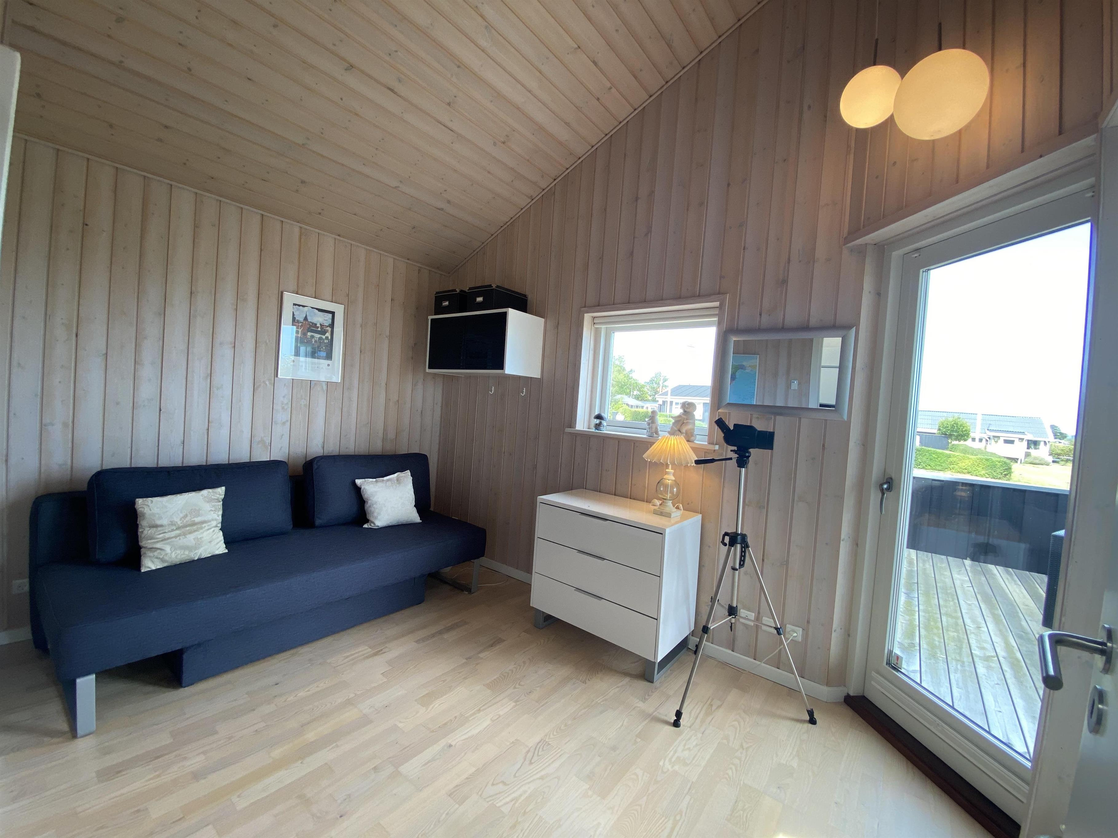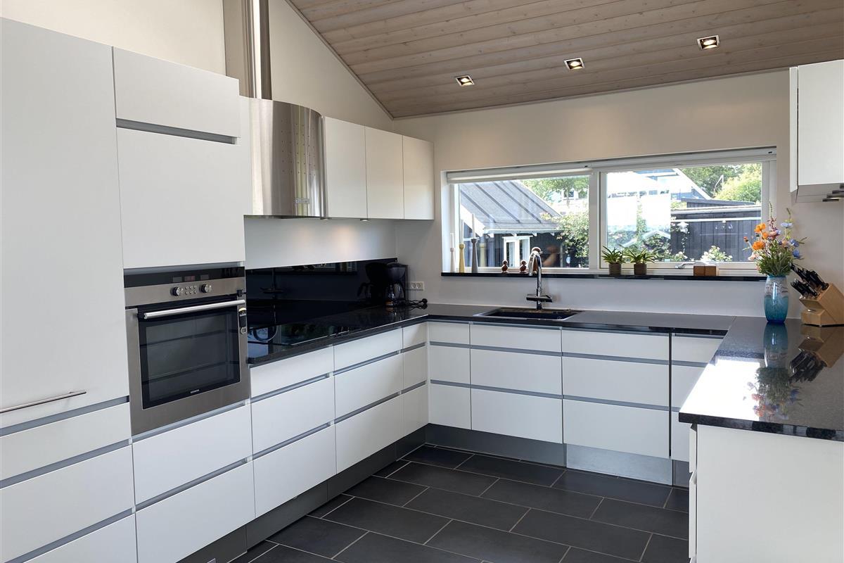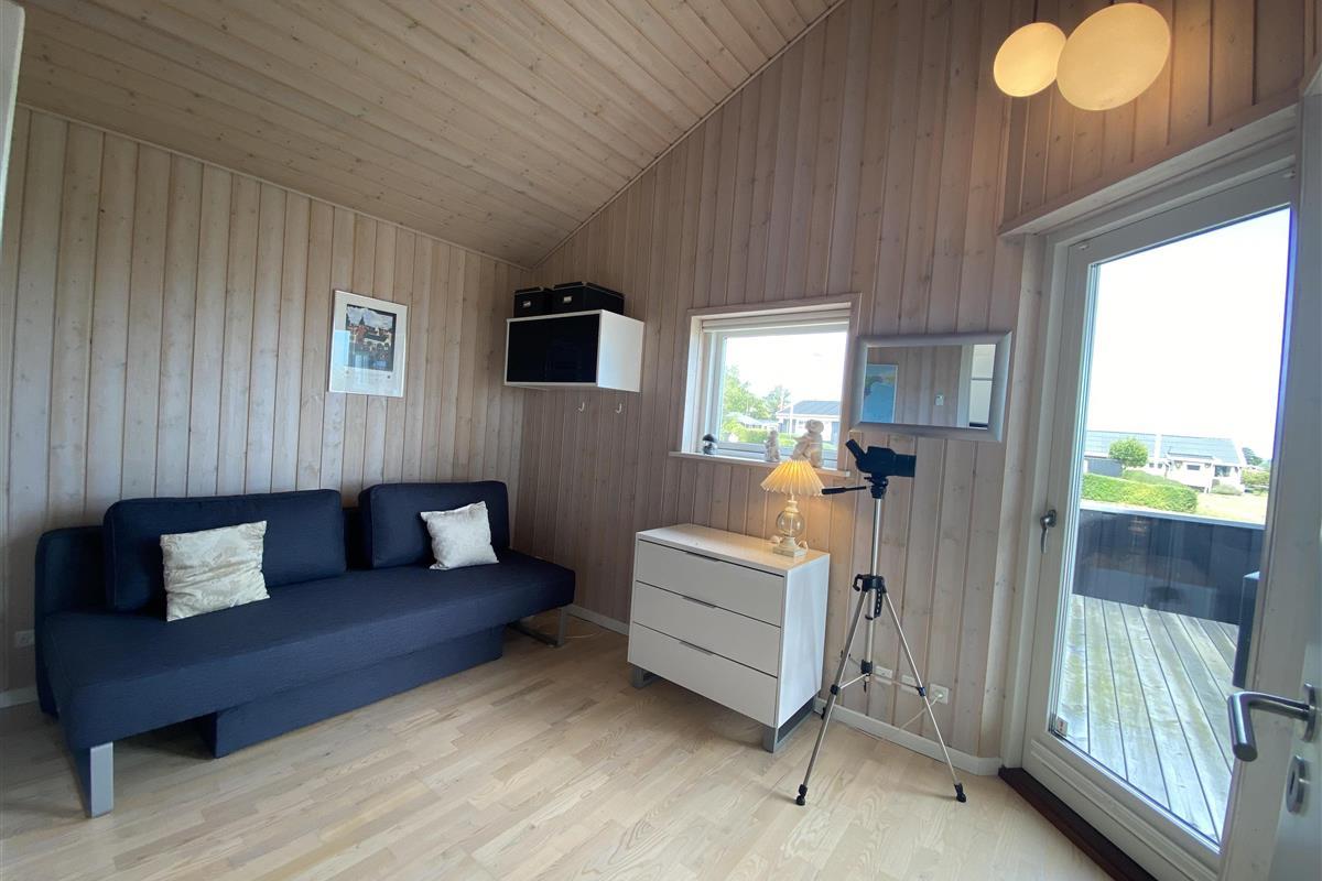 The kitchen, dining area, and living room are designed as a large, open space from which you can enjoy a breathtaking view of the Kattegat. From the sofa, you can admire the beautiful panorama, see Frederikshavn on the horizon, and follow the ship traffic. The kitchen is top modern with an impressive granite countertop and all the necessary kitchen equipment. There's also a Quooker installed, providing boiling water instantly. In the annex, you'll find an extra fridge with a freezer, ideal for additional storage. The bathroom is bright and elegant with large drawers and a wonderful spa bath, where you can relax after a day full of activities.