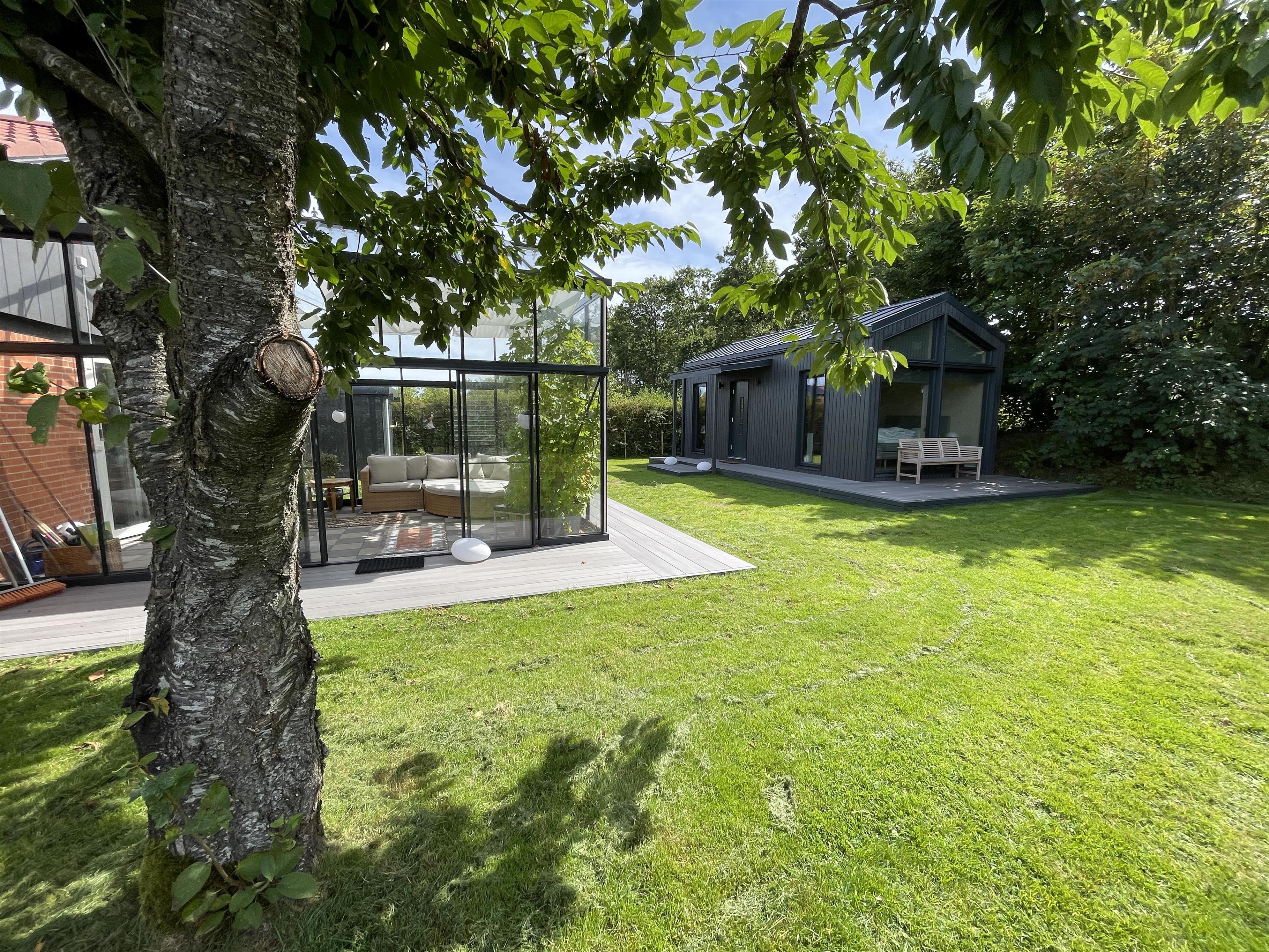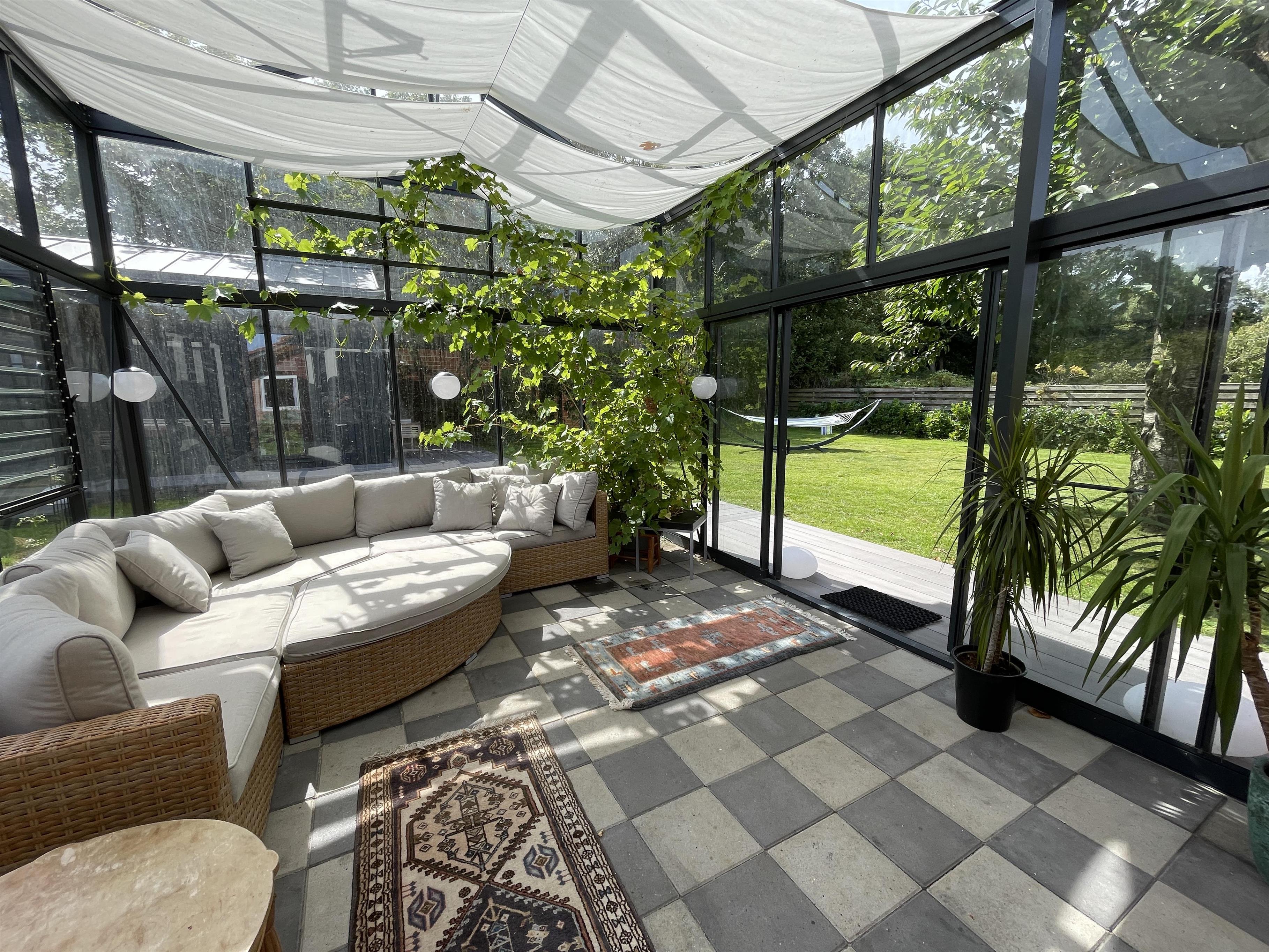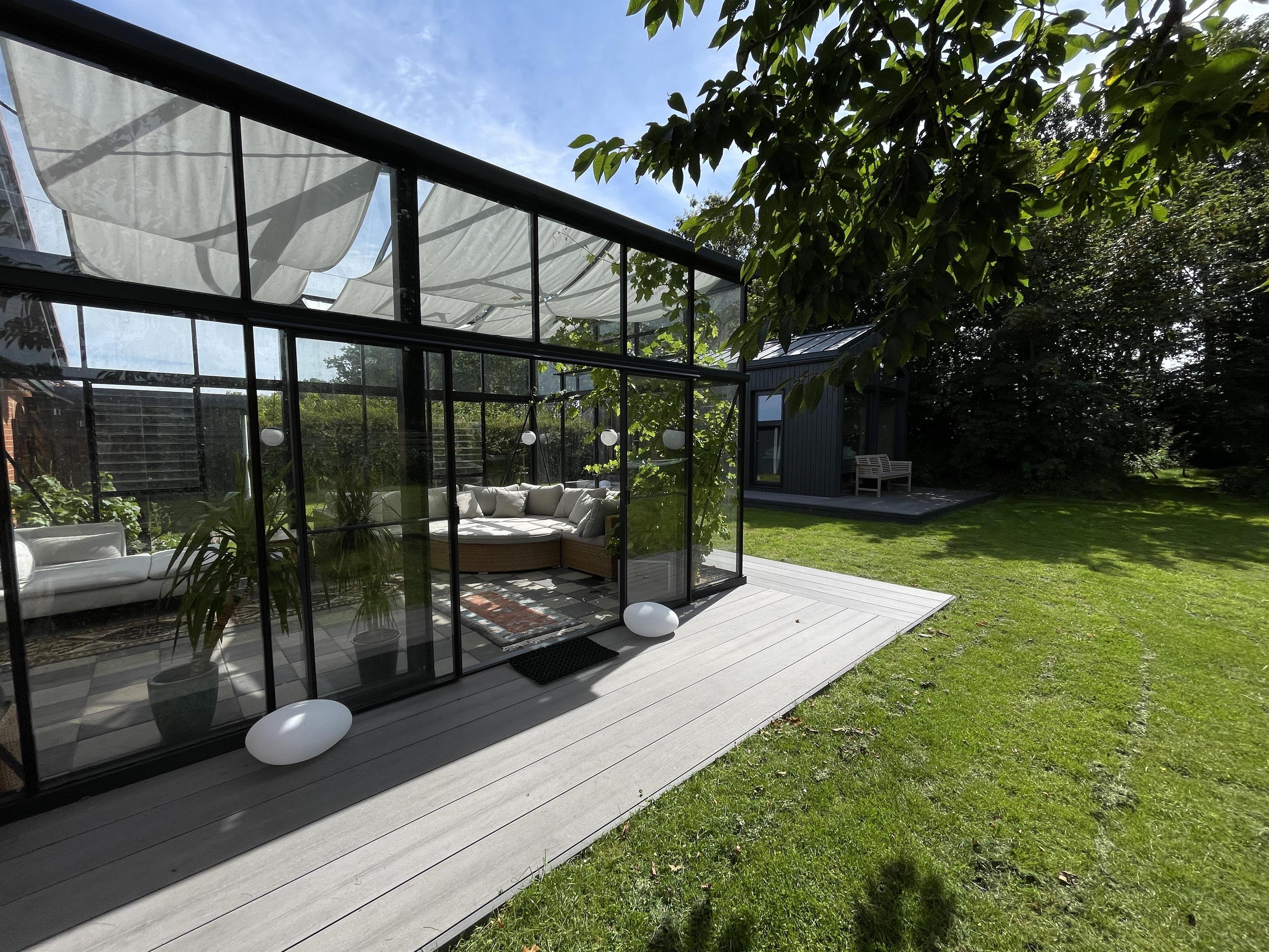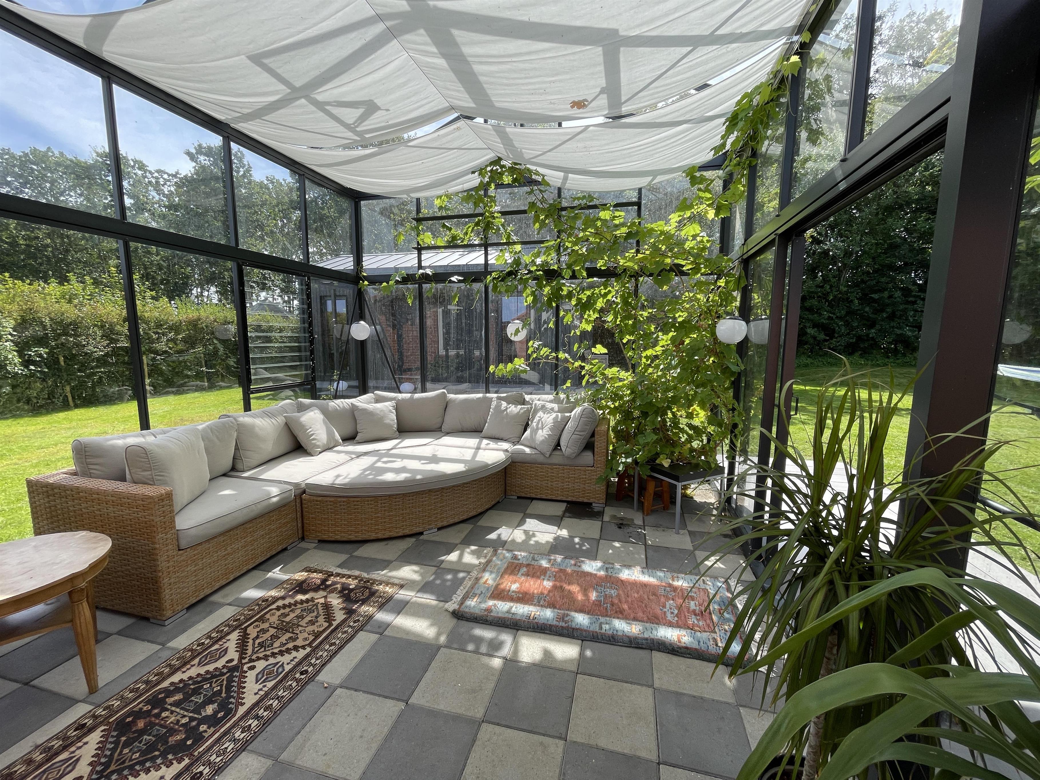 Furthermore, the house offers a very charming orangery, which invites good communal cozy moments with a nice view of the garden and forest. The orangery is pleasant with green plants and has a large new sofa where everyone can find space. Here you have the opportunity to extend the summer on days when the weather is less good. It is always bright and warm.