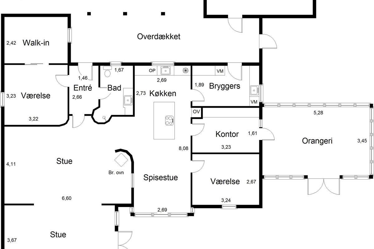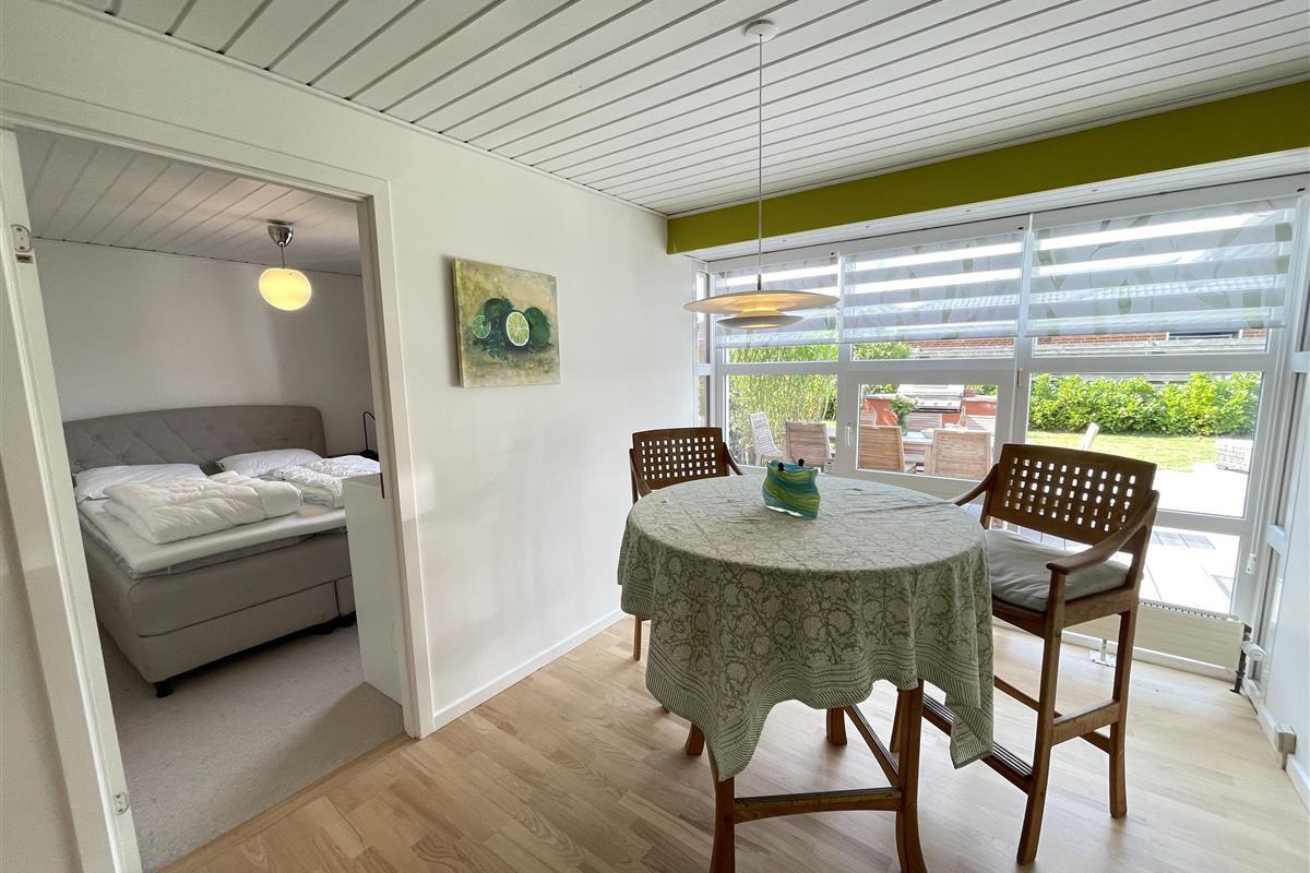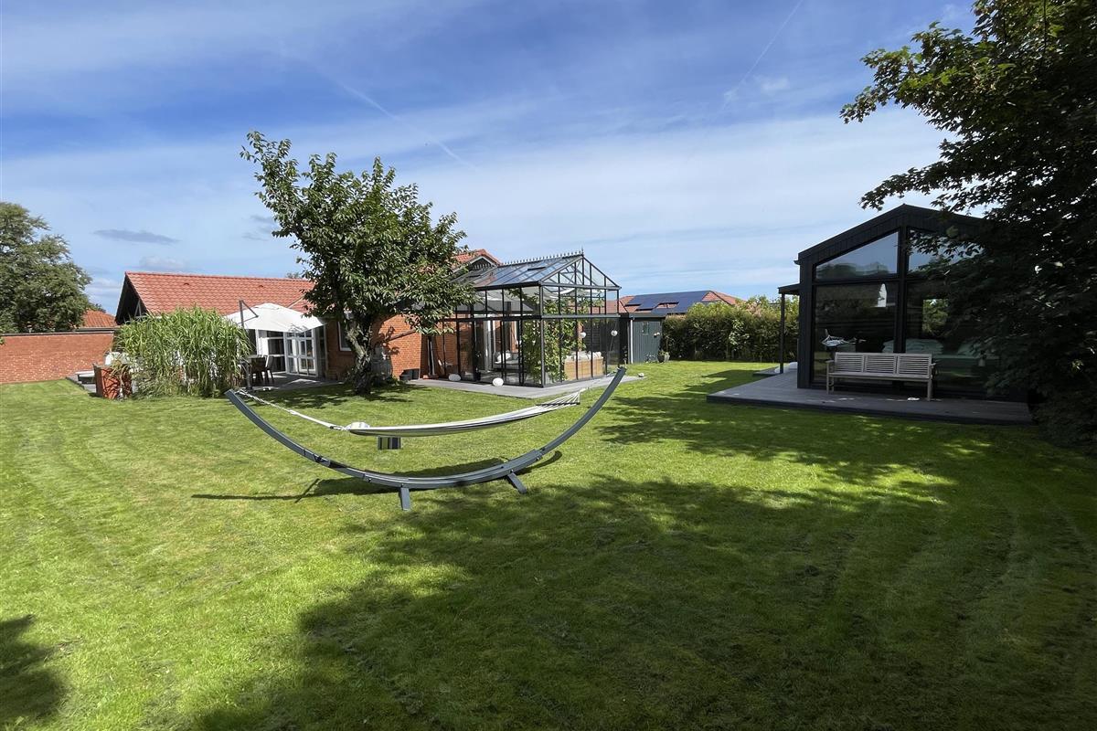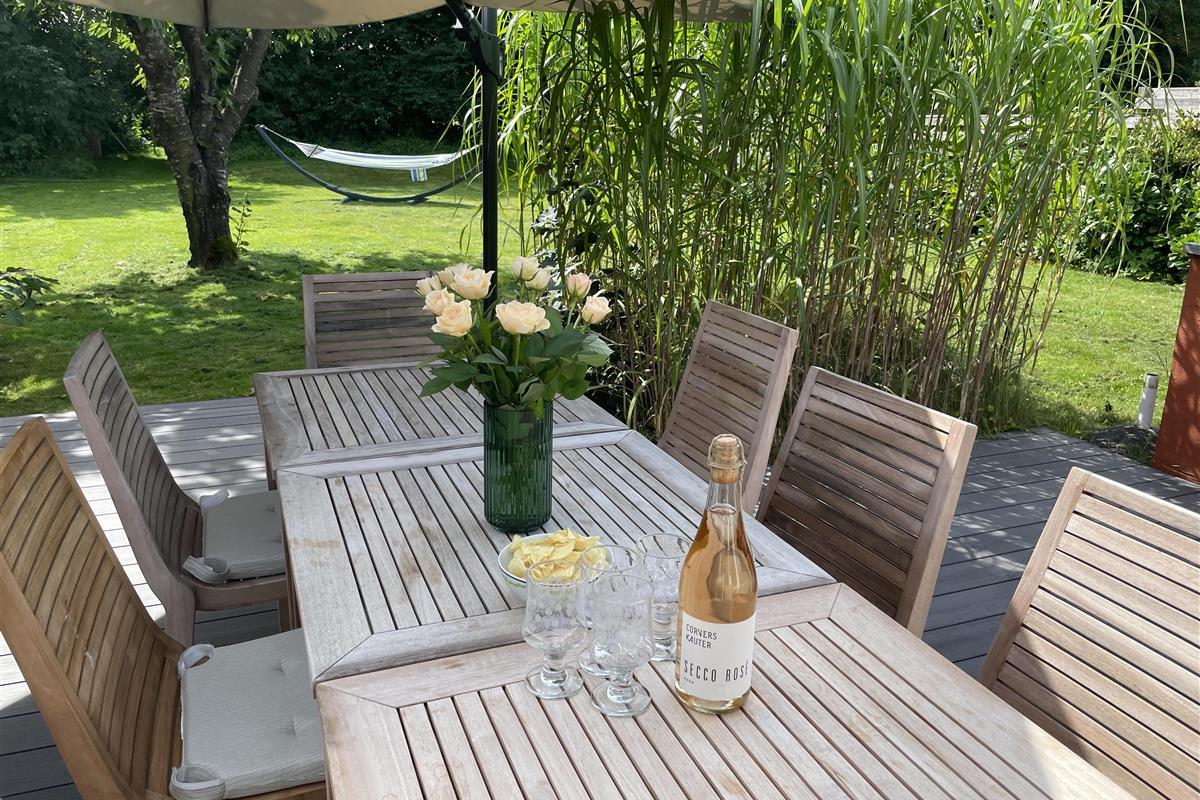 Furthermore, the house offers a very charming orangery, which invites good communal cozy moments with a nice view of the garden and forest. The orangery is pleasant with green plants and has a large new sofa where everyone can find space. Here you have the opportunity to extend the summer on days when the weather is less good. It is always bright and warm.