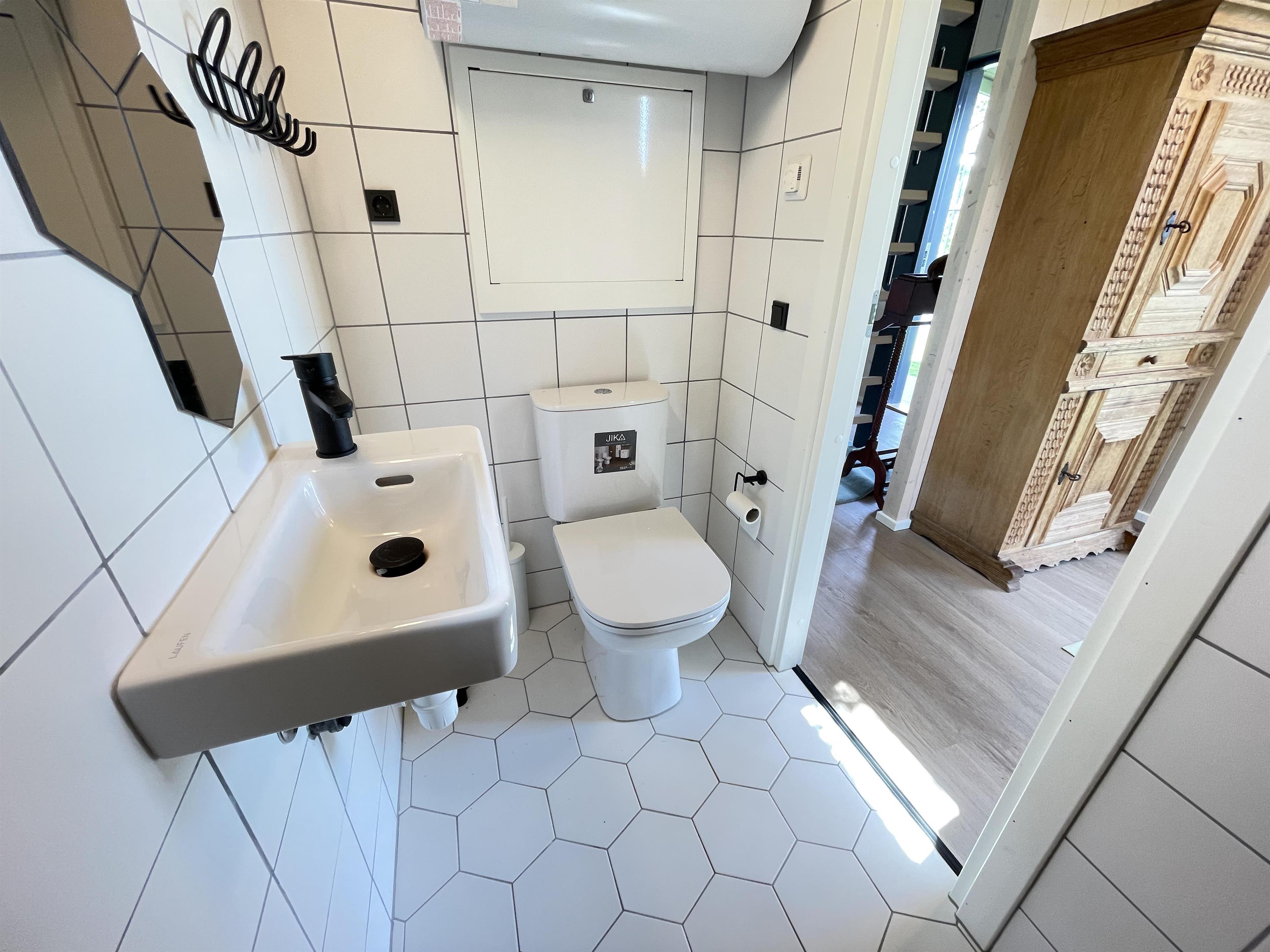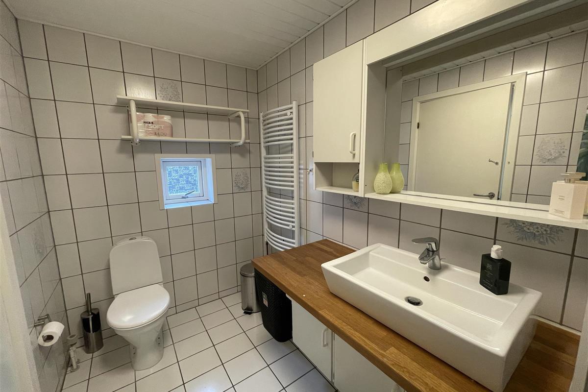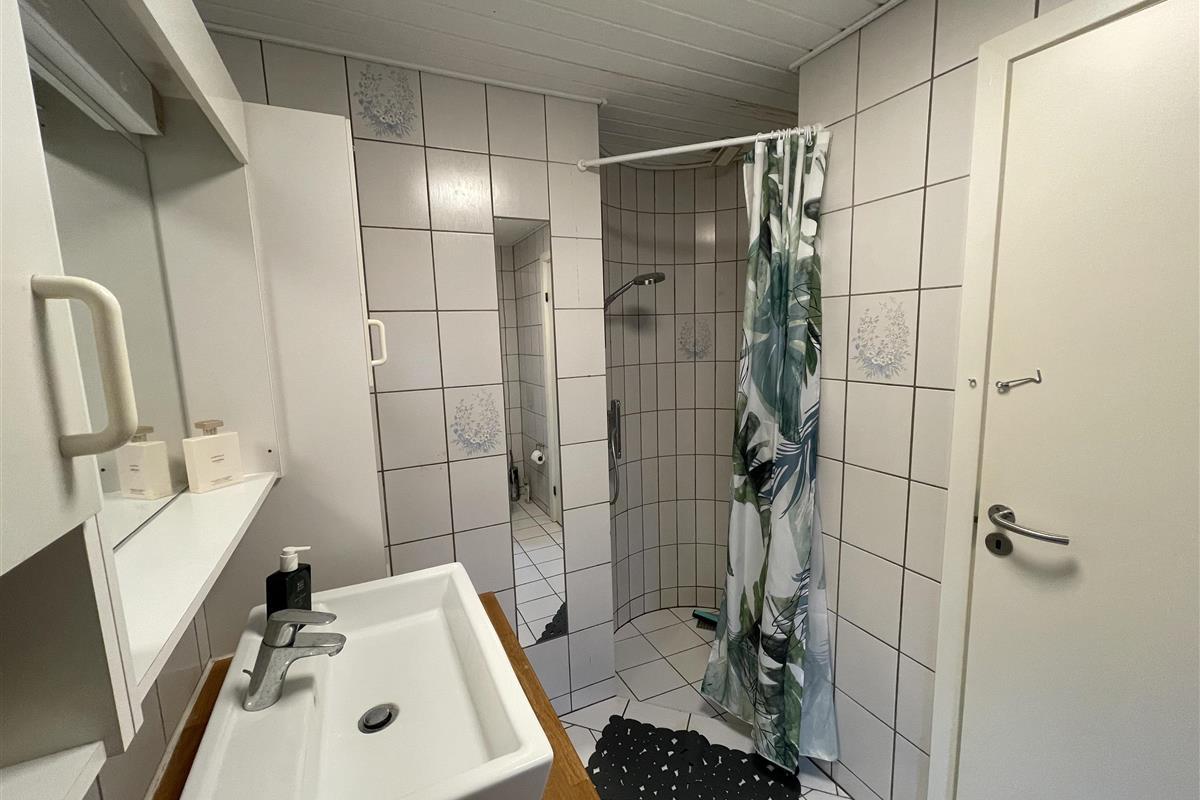 The bathroom in the house is very nice with light tiles. Here you can enjoy both the start and end of the day and use the large, round shower when you bathe.