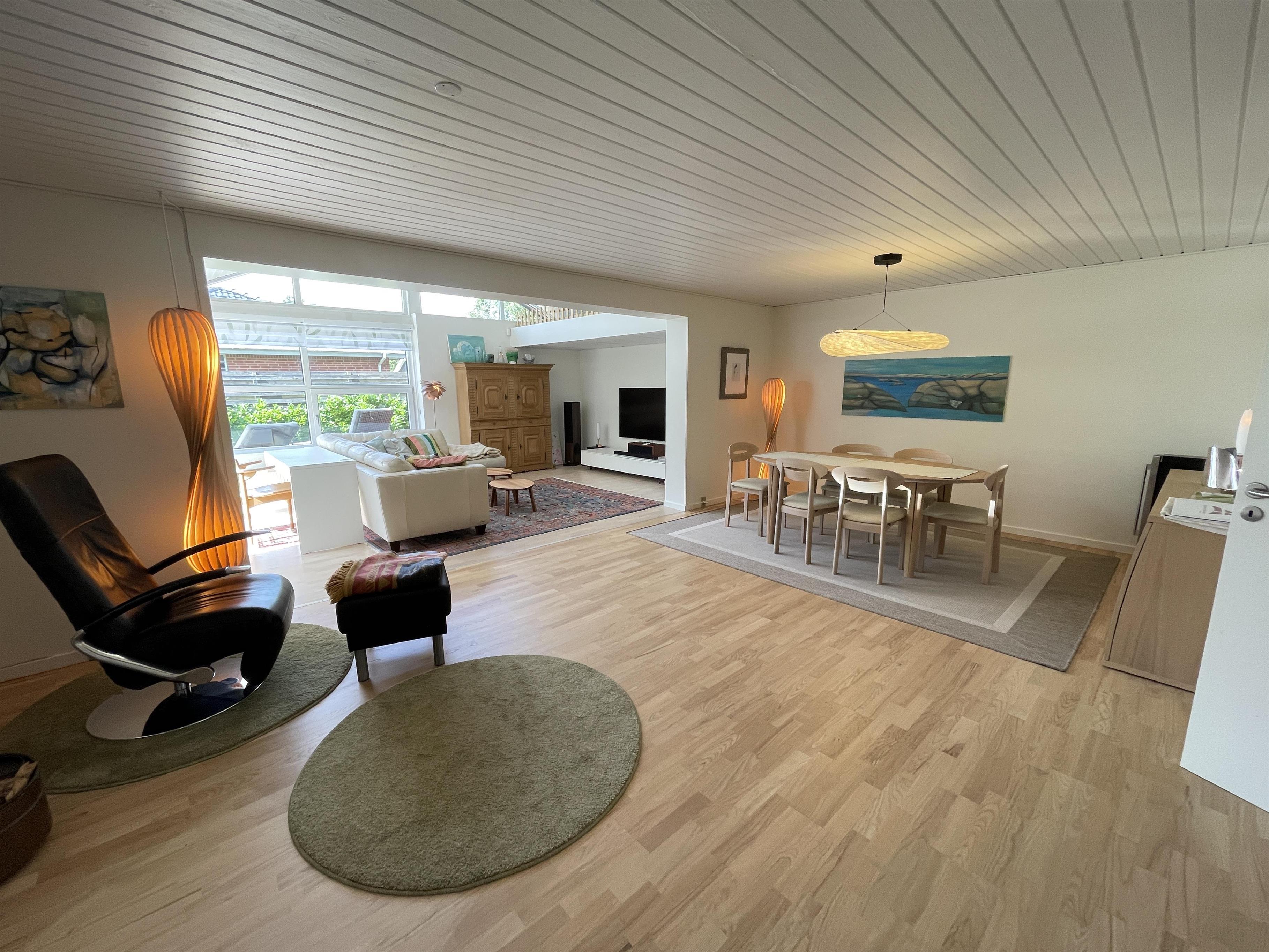 The house is located in a charming residential area with both beach and forest nearby. Here there are good opportunities for cycling or walking via paths to Sæby town center, which has a lively city center with many shops, cafés, and restaurants. Here you will also find Algade, the city's most exclusive street, with small yellow houses, peonies, a church, and many different artisans with working workshops that you and your family can experience or participate in. The church is a relic of a monastery from 1470 and has some fantastically beautiful frescoes, which were renovated a few years ago by conservators from the National Museum. At the end of this street is the harbor with local boats, an active community life, and in summer, a multitude of pleasure boats and motorhomes.