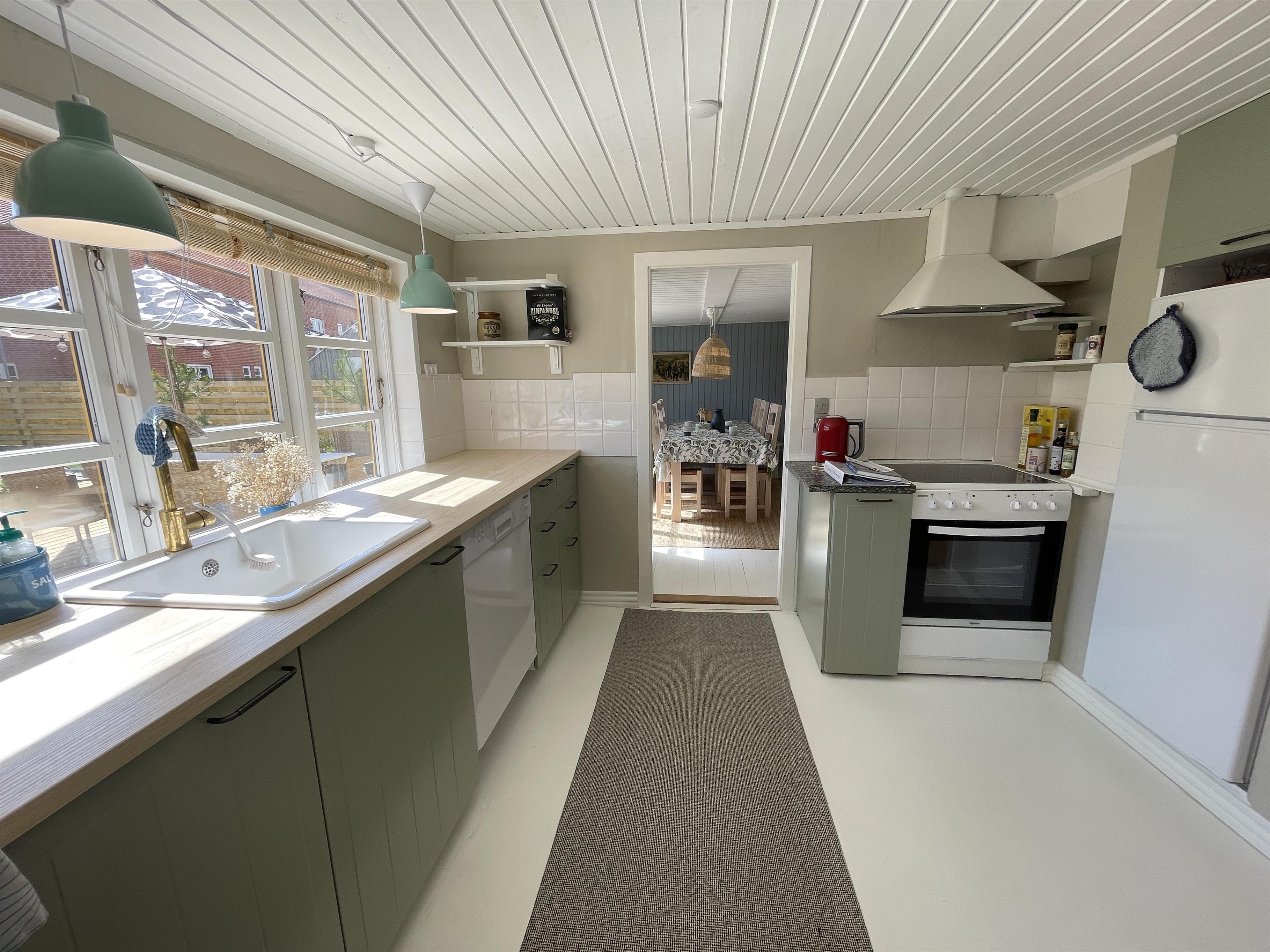 The house is on a quiet and peaceful street in the centre of the town and 800 metres from the beach and harbour. Only 100 meters from the house, you'll find the town park itself, with a playground and a multi-sports court, as well as a newly established skatepark (the largest in North Jutland), making the house perfectly situated for families with children.