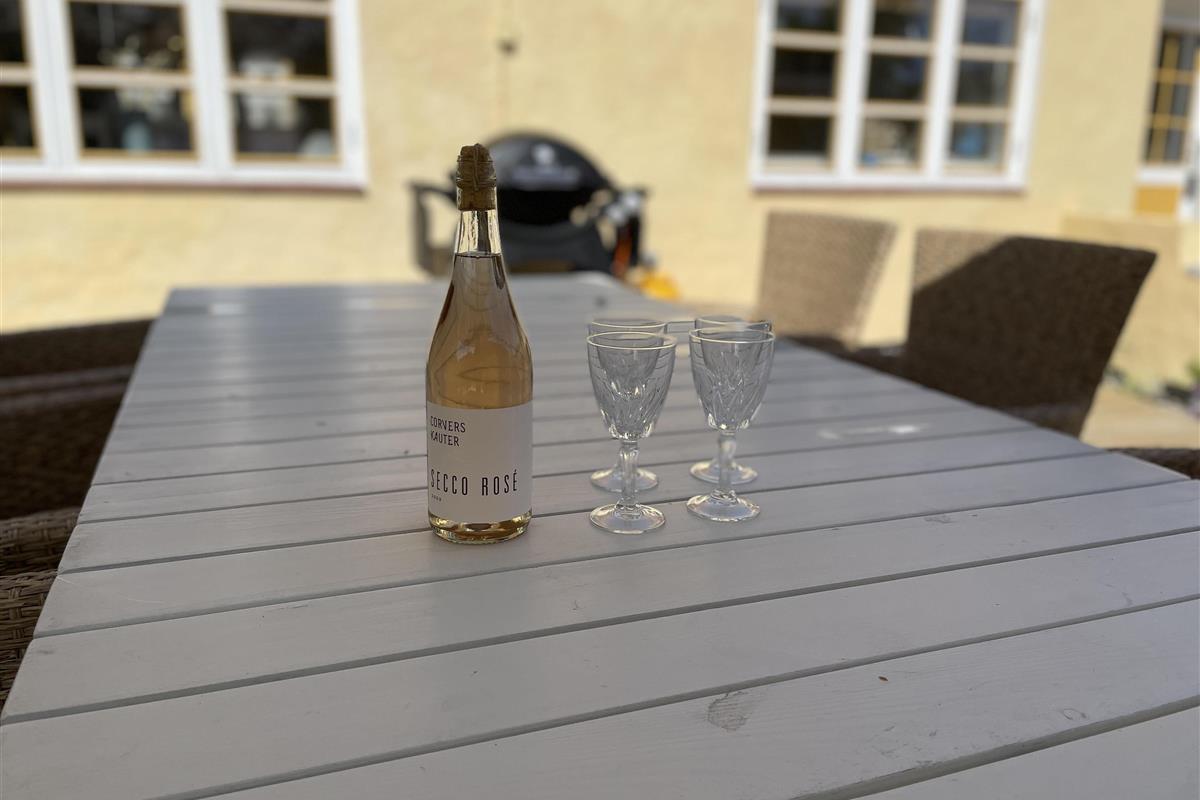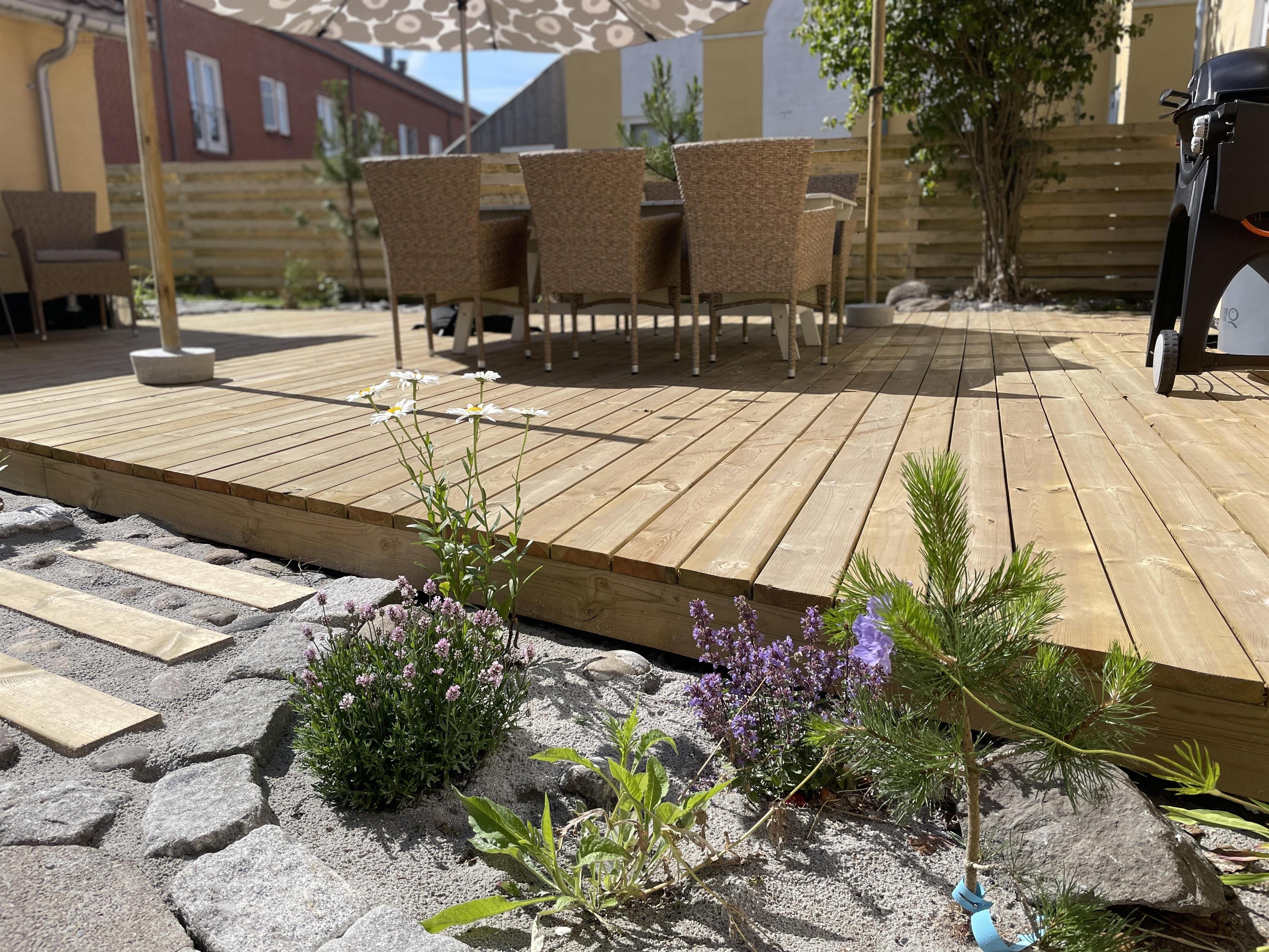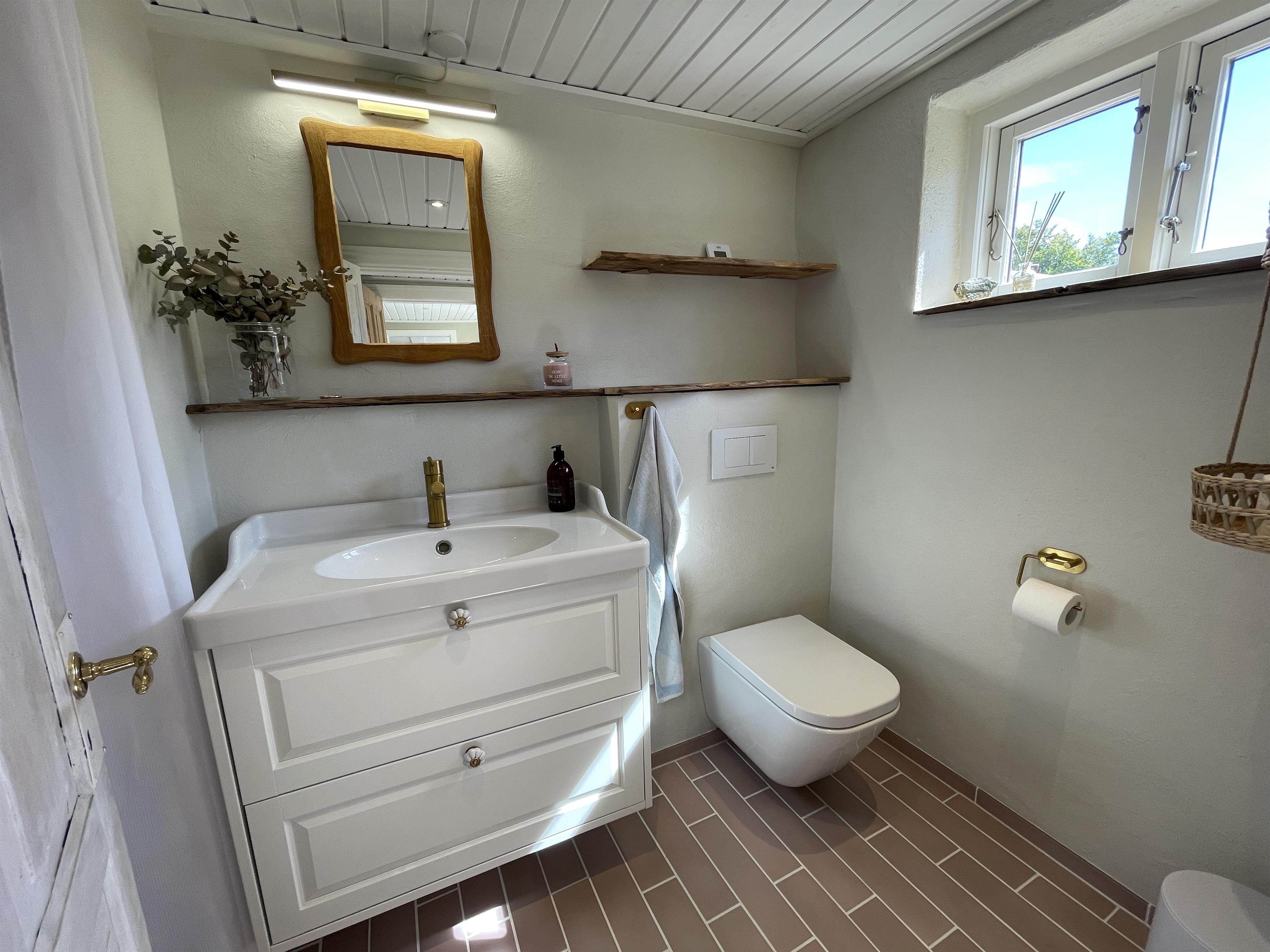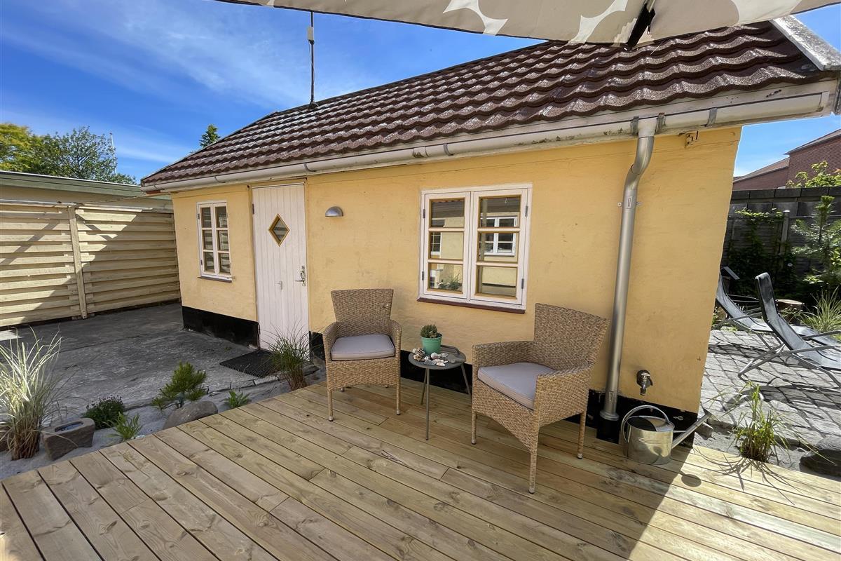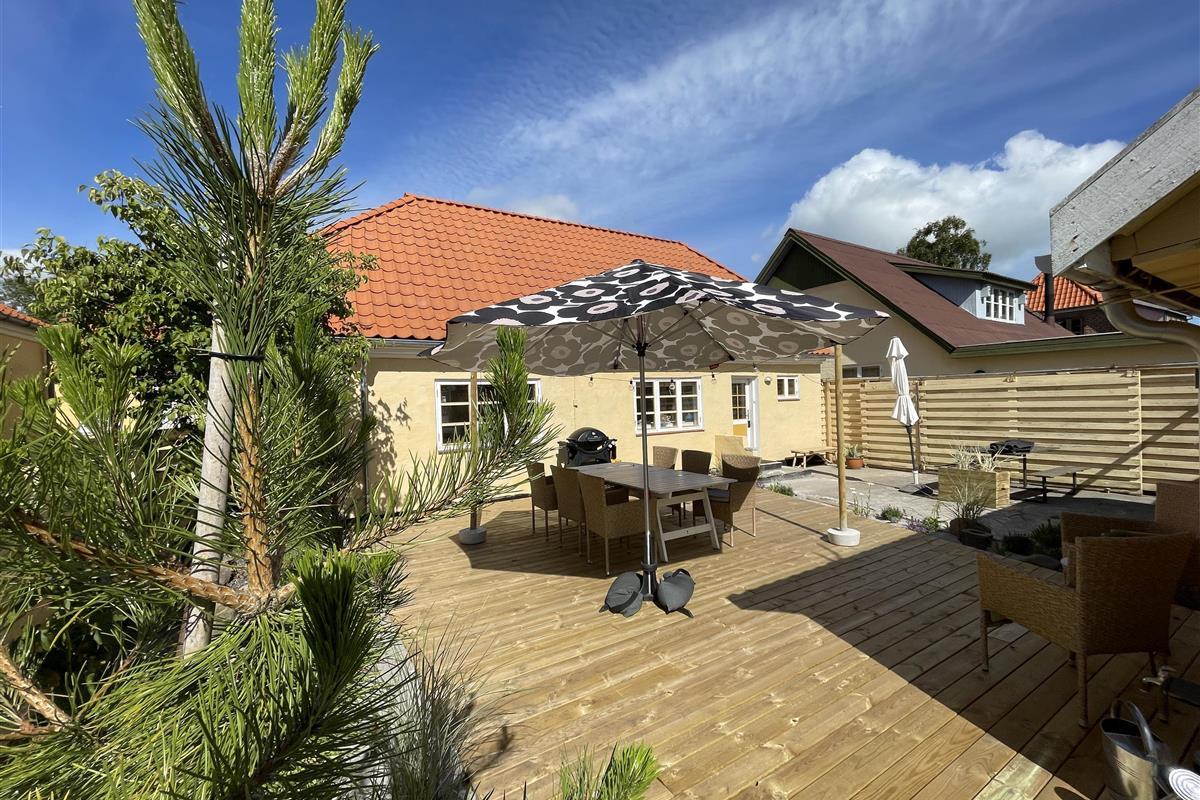 Outside you will find the most beautiful courtyard with a large new wooden terrace, lovely garden furniture and a good barbecue, as well as a cosy enclosed courtyard environment with small green shrubs and plants. It is a small oasis where you can enjoy the outdoors in the sun and sheltered from the weather.