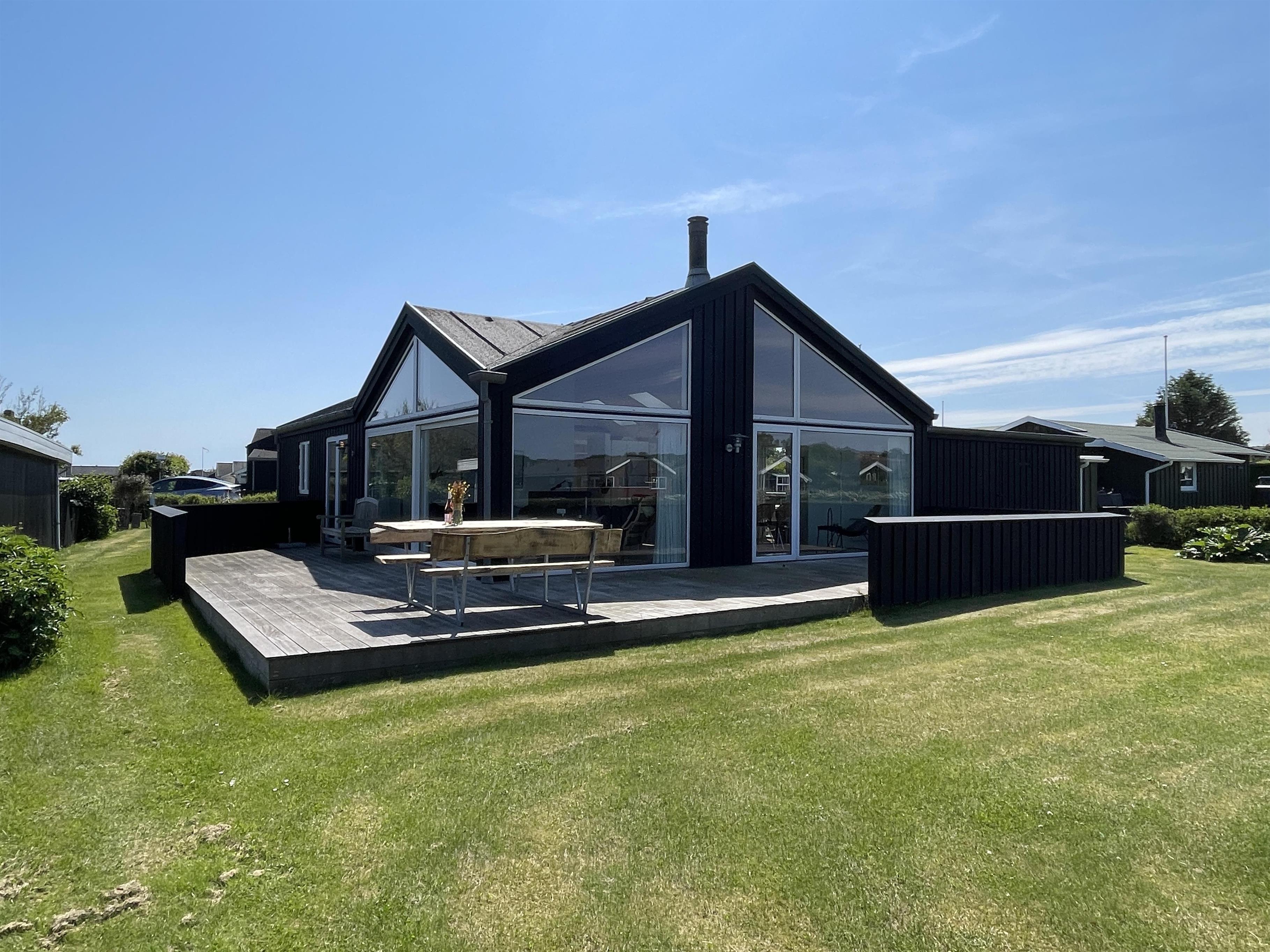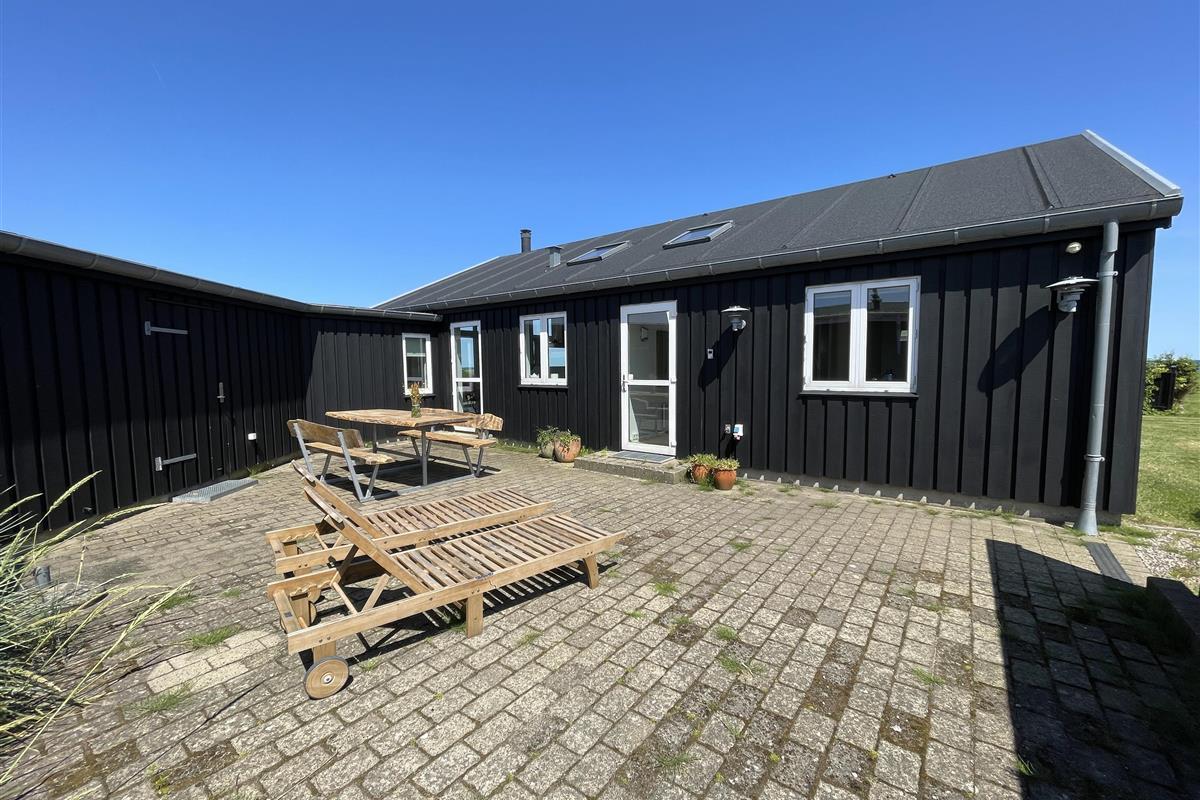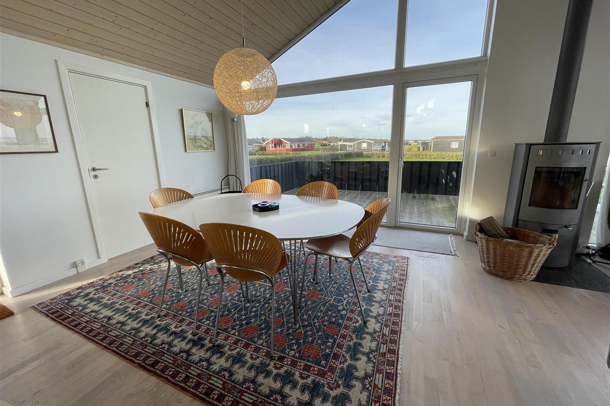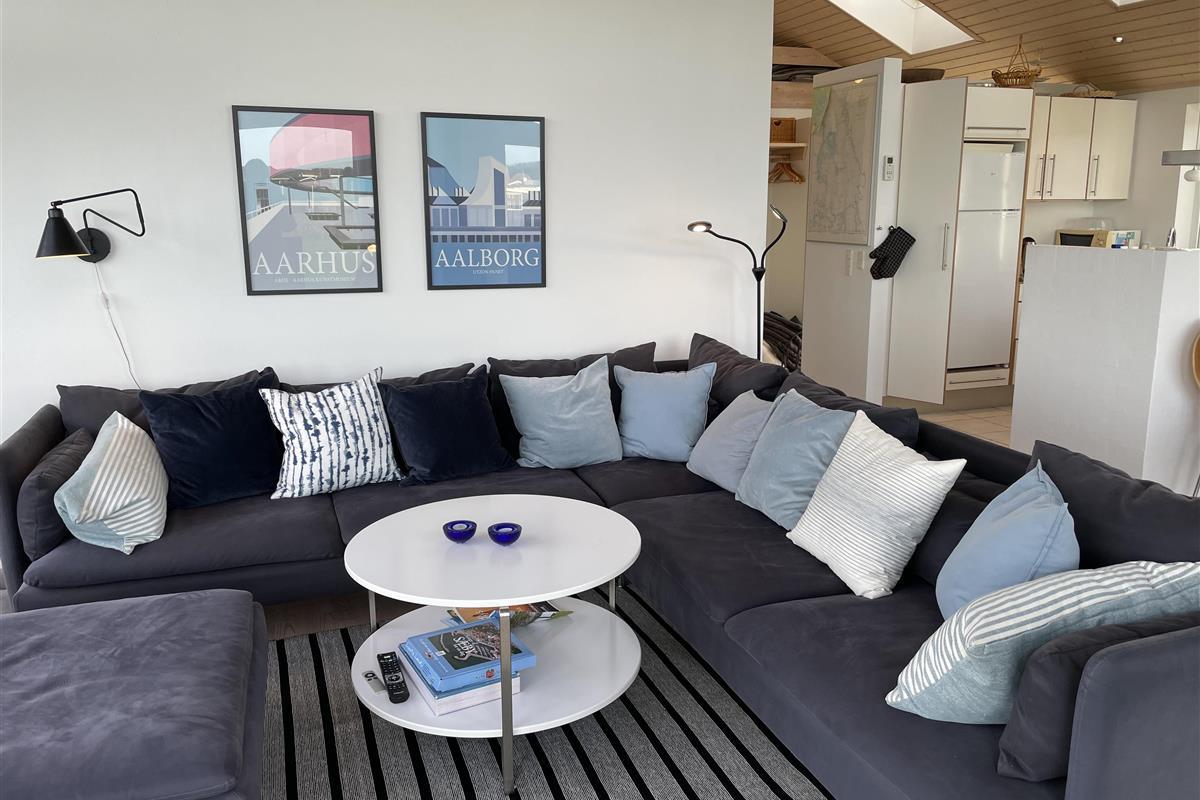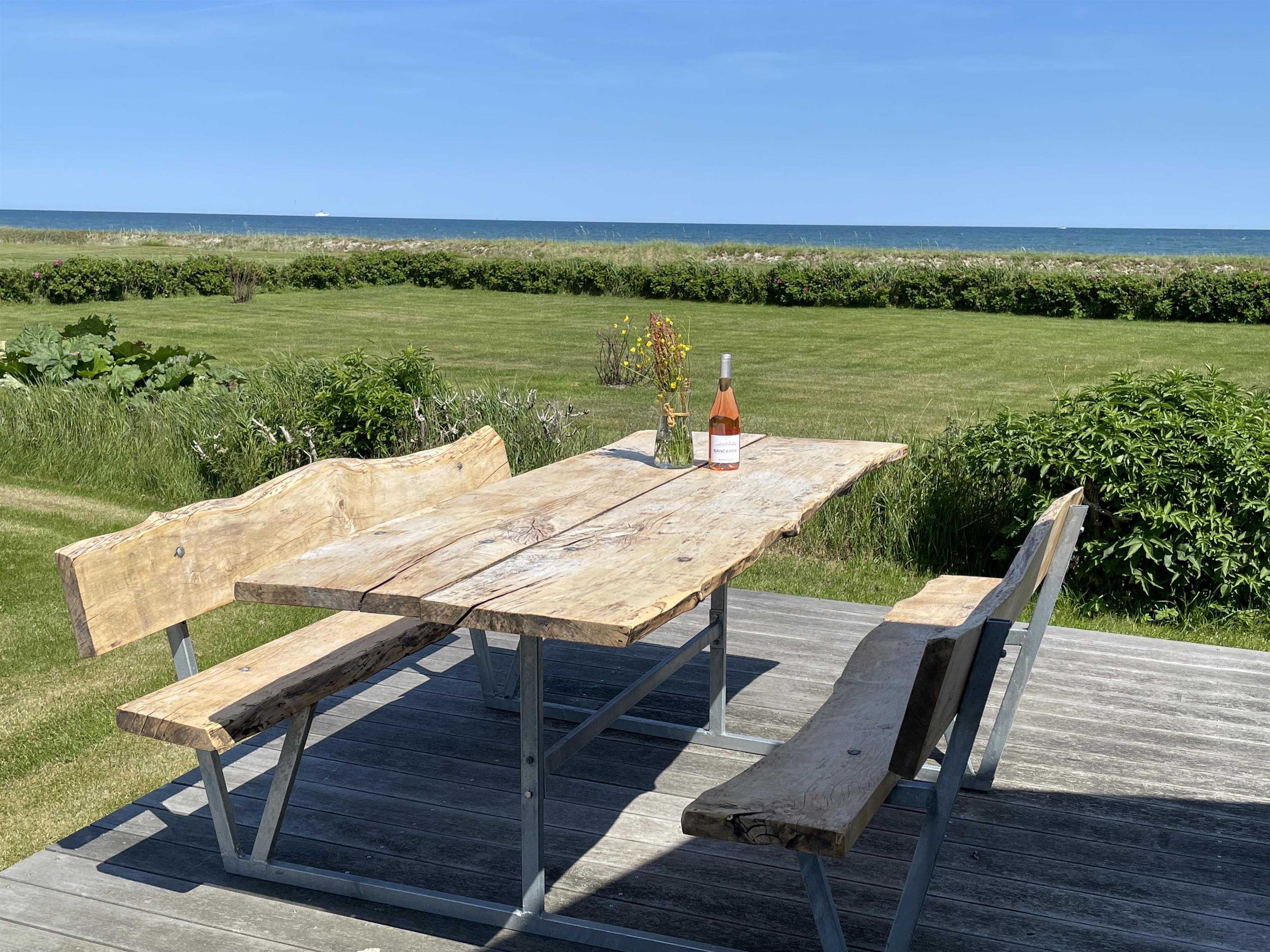 The kitchen is very well-equipped, containing everything you need to prepare delicious summer meals, which you can enjoy at the dining table by the large windowed patio, offering beautiful, private views of the Kattegat.