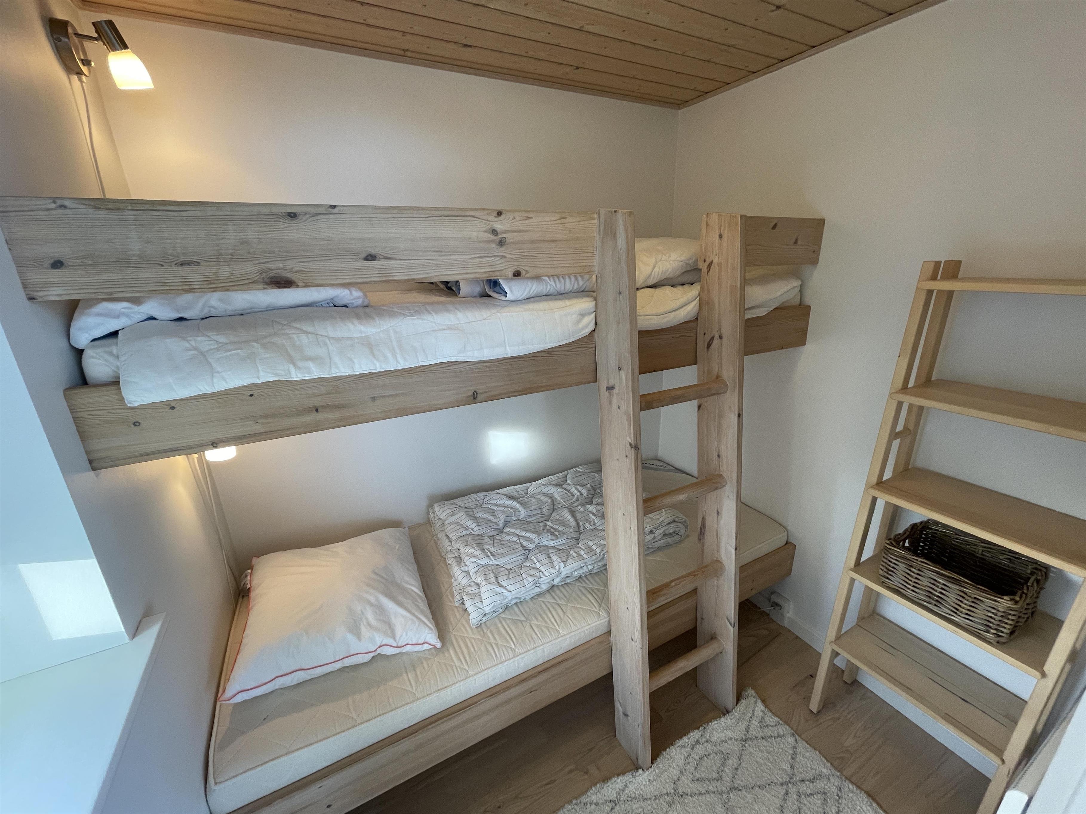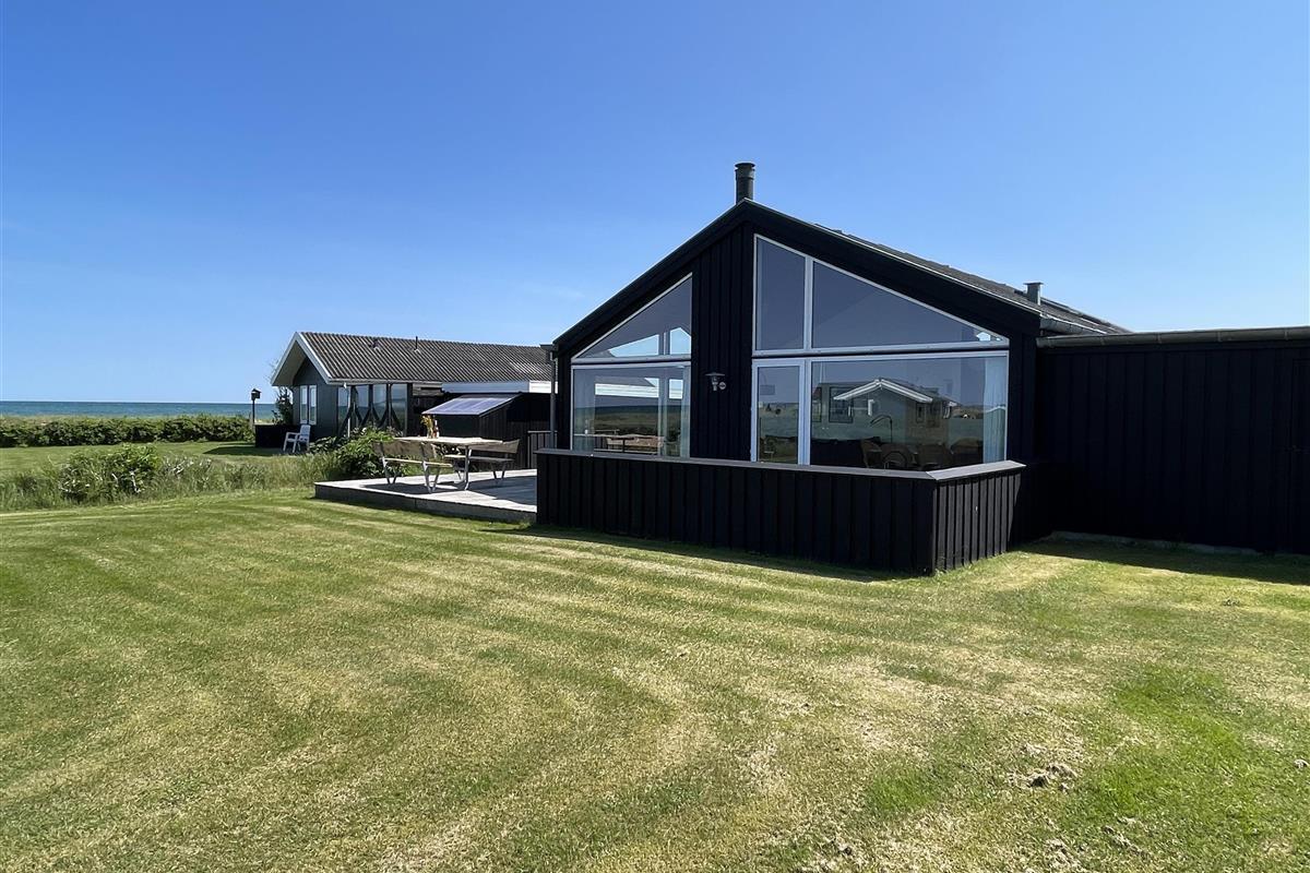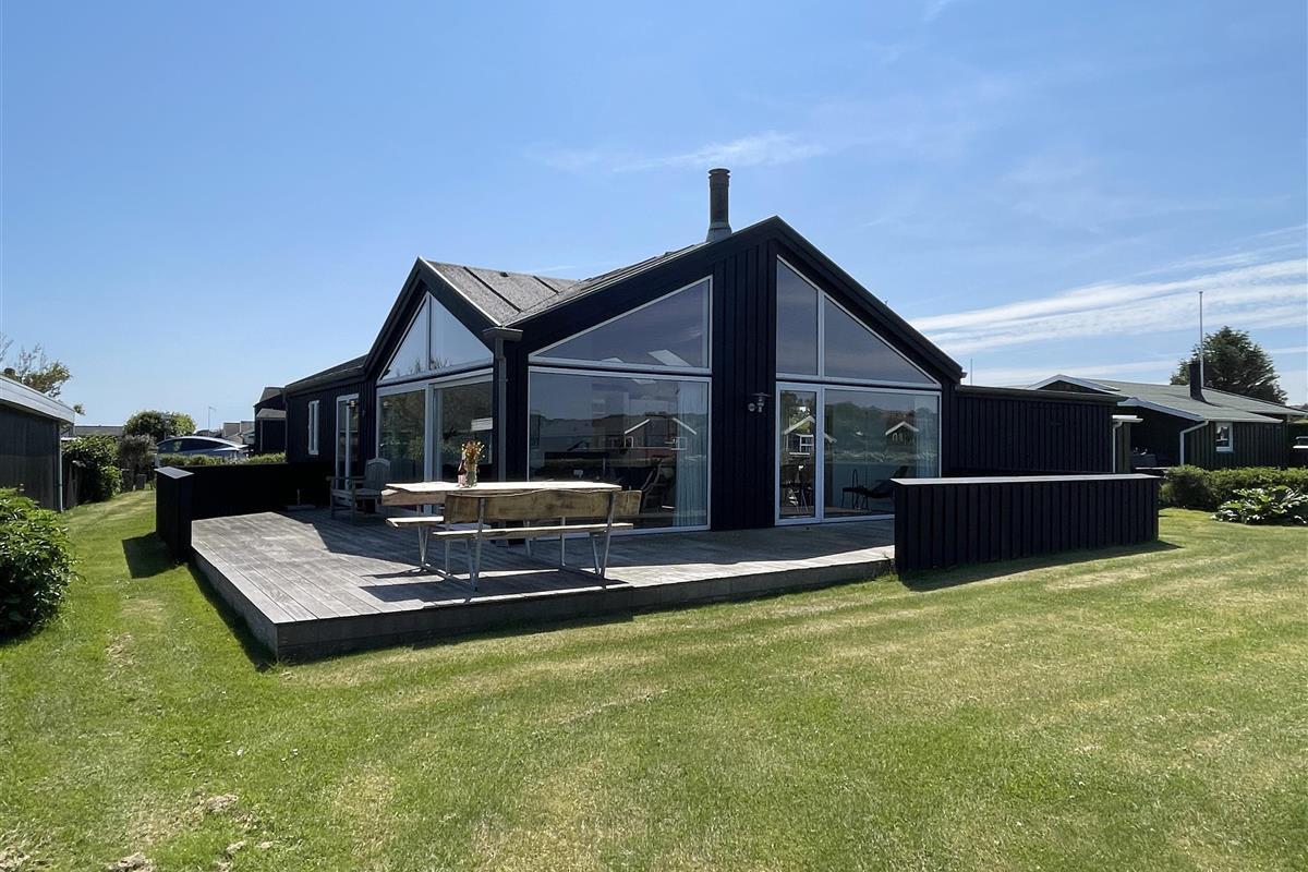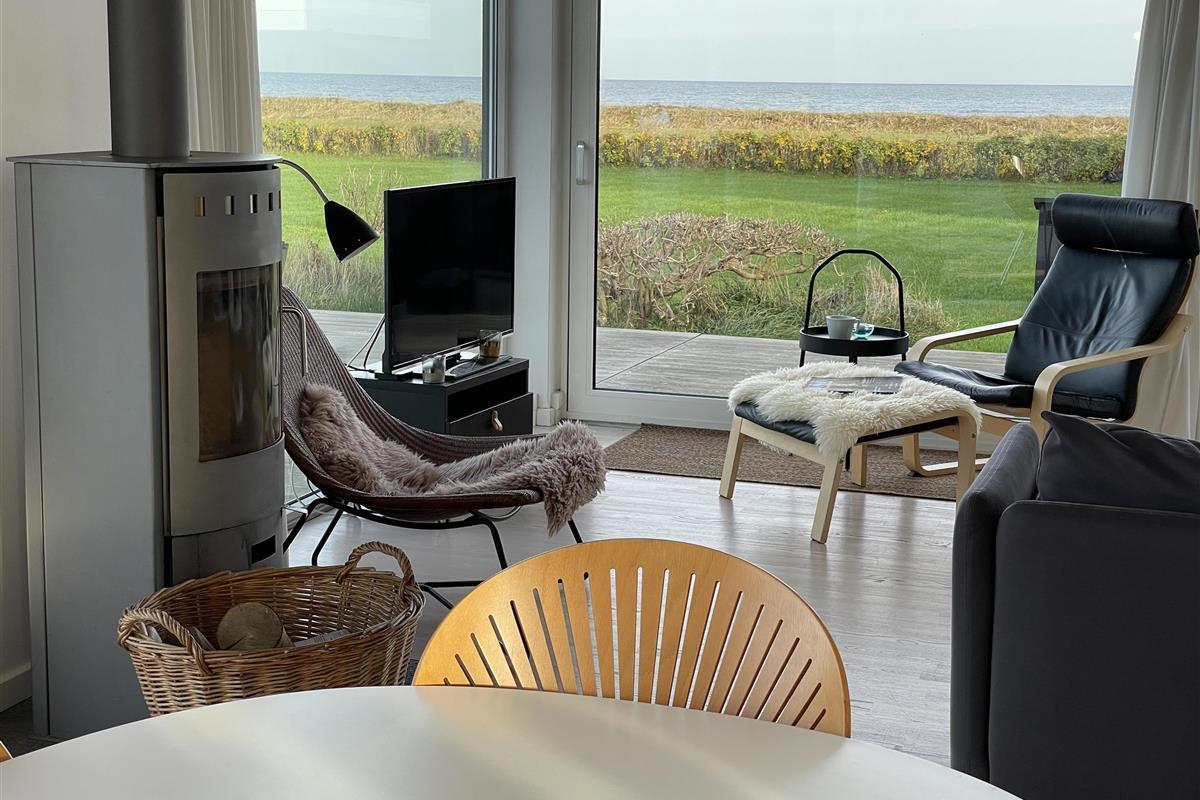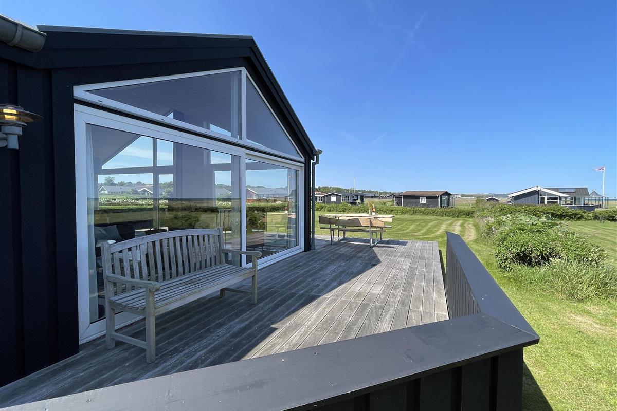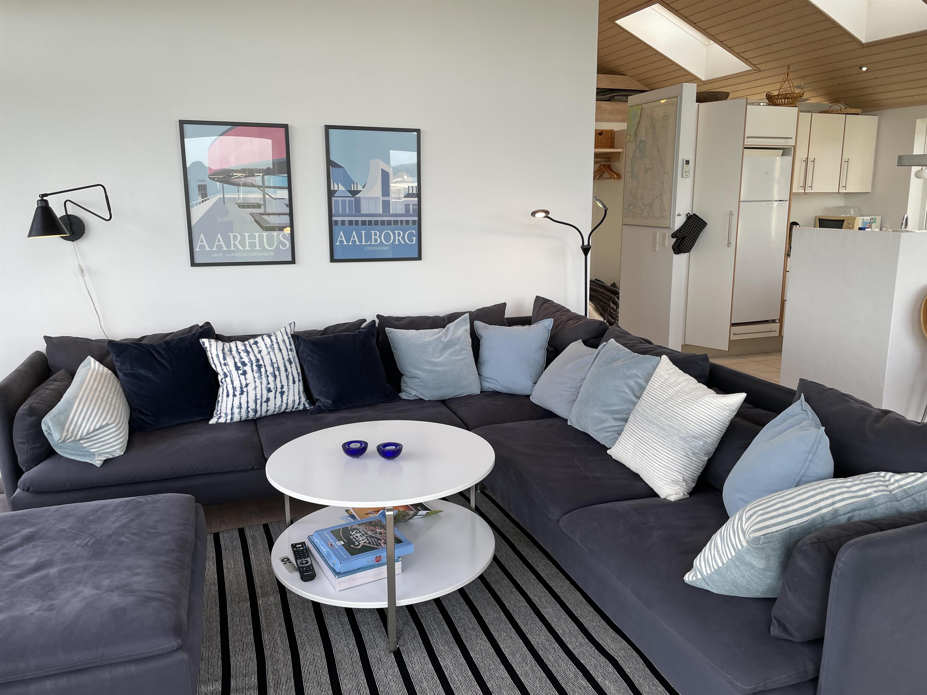 The kitchen is very well-equipped, containing everything you need to prepare delicious summer meals, which you can enjoy at the dining table by the large windowed patio, offering beautiful, private views of the Kattegat.