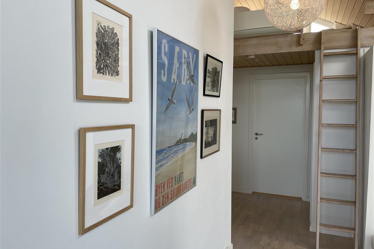 The house is situated in a desirable holiday home neighborhood with views of the sea and beach, and it’s also close to the forest. The beach just below is a lovely sandy beach, perfect for beach days, swimming, and fishing trips. From the house, you can walk or cycle to Sæby Harbor or Sæby town center via small roads and along the beach promenade.
