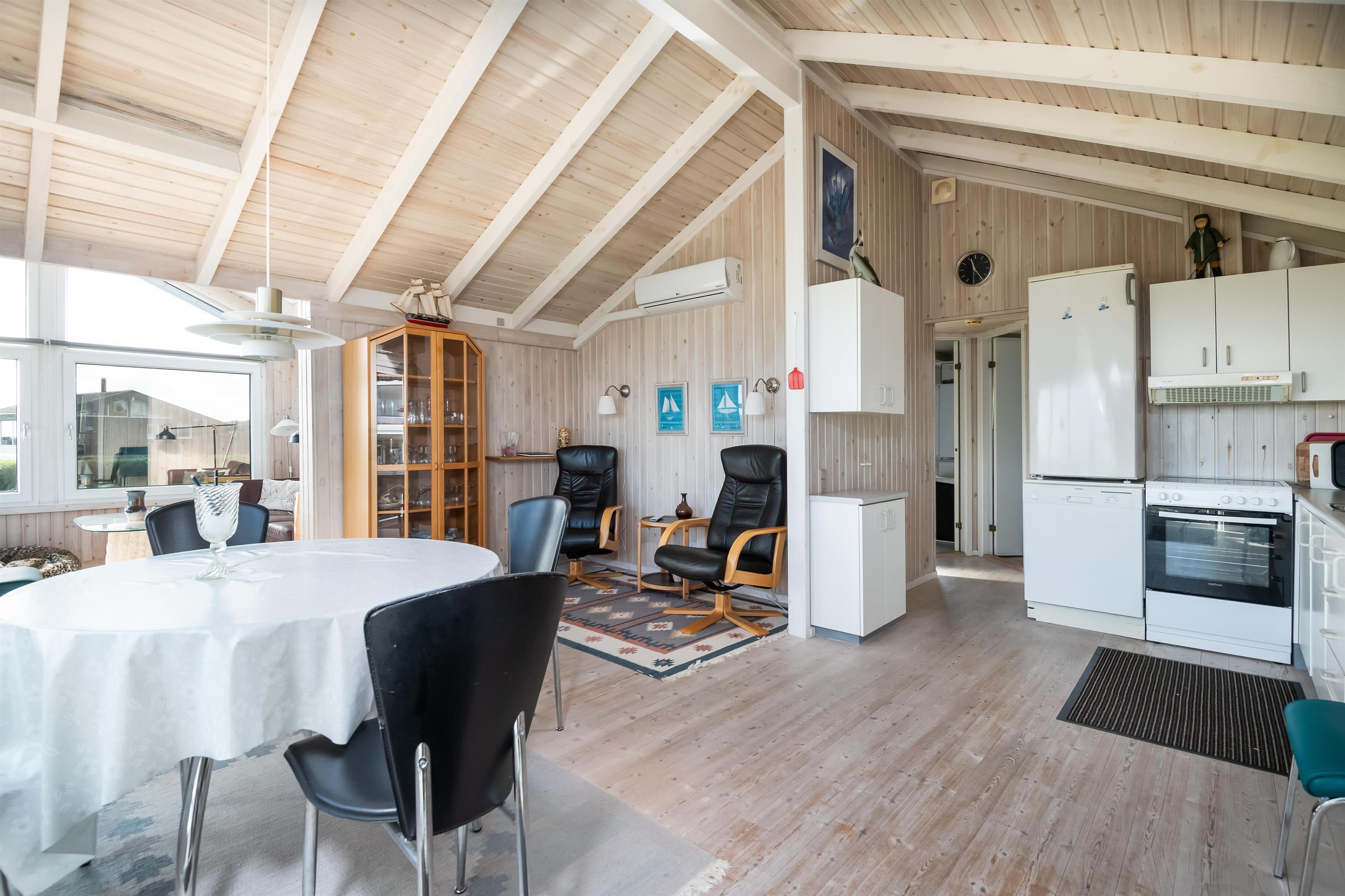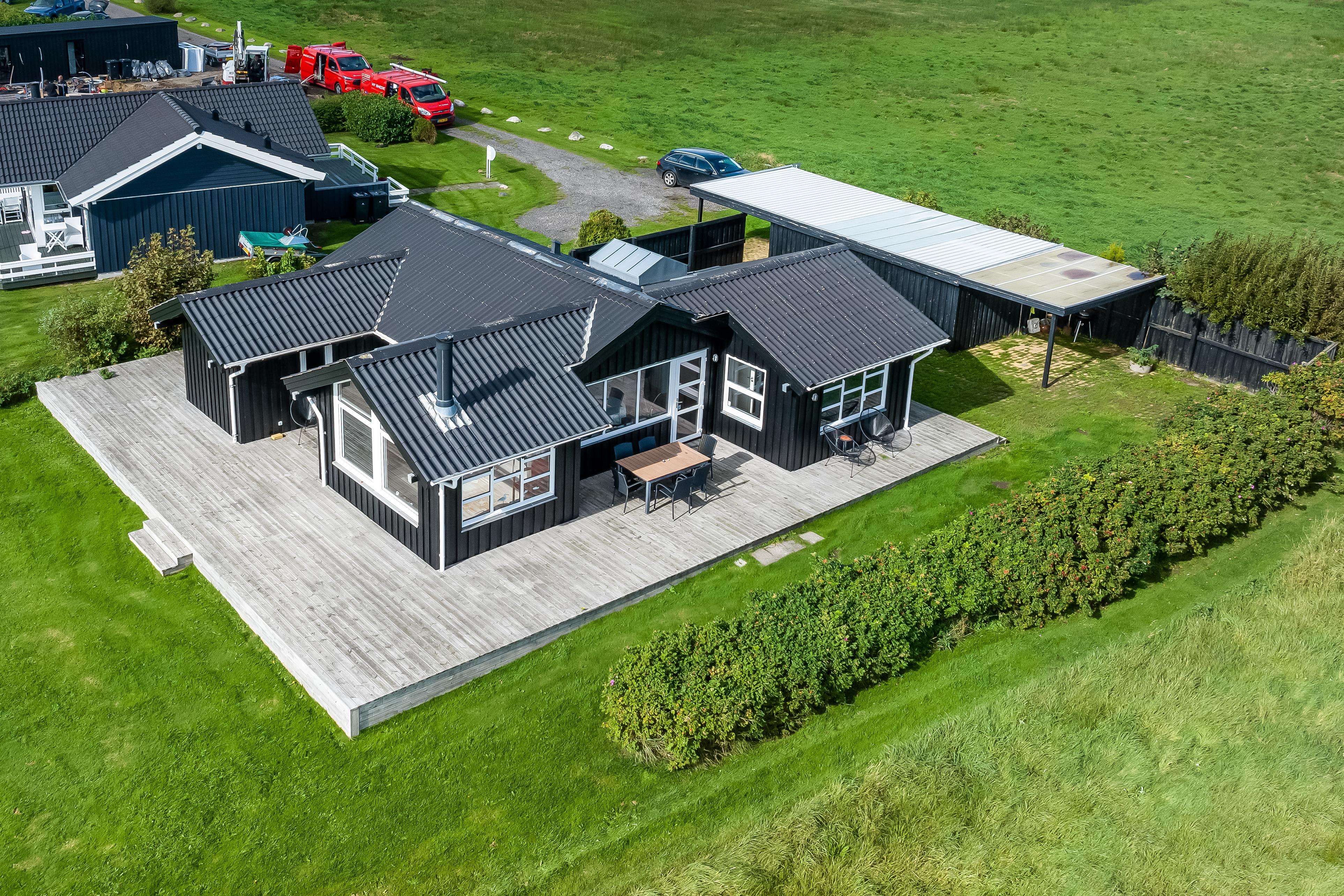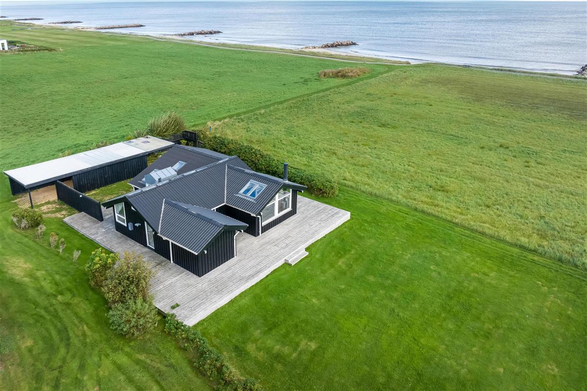 The holiday home is situated right by the beautiful coastline north of Sæby, surrounded by open green areas. It accommodates up to 5 people in 3 comfortable bedrooms: one with a double bed, one with a three-quarter bed, and one with a single bed.