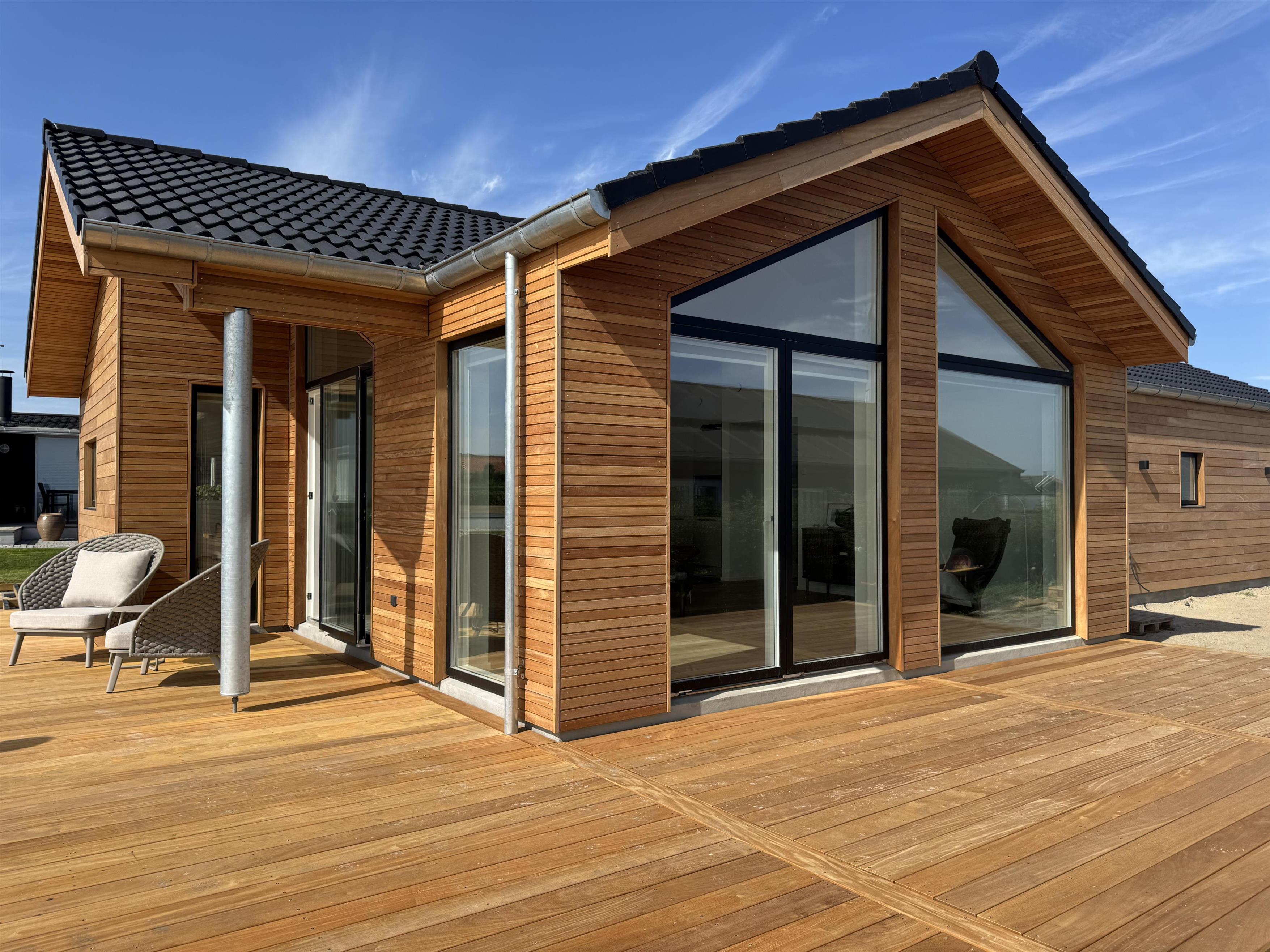 This beautiful wooden summer house was built in 2025 and features bright, spacious rooms with sea views – just 150 meters from the water.