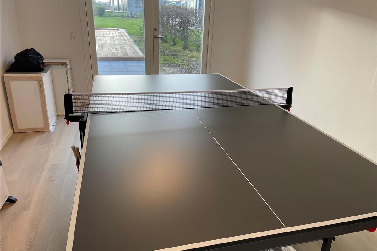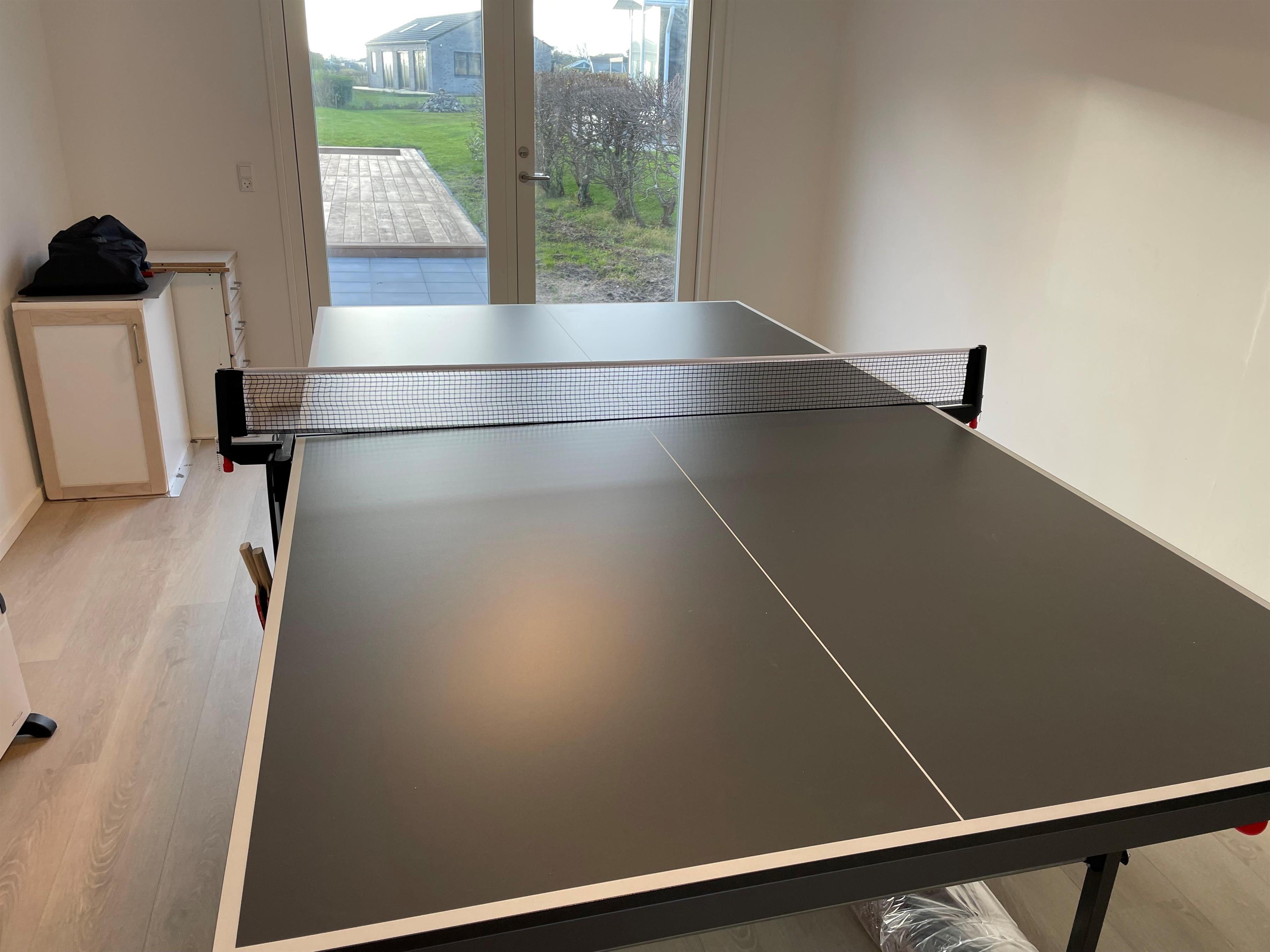 The home is designed for social living both indoors and out. From the large open-plan kitchen and living area, there is direct access to a spacious wooden terrace where you can relax and soak up the sun. You’ll also find a game room with a ping pong table for indoor fun.