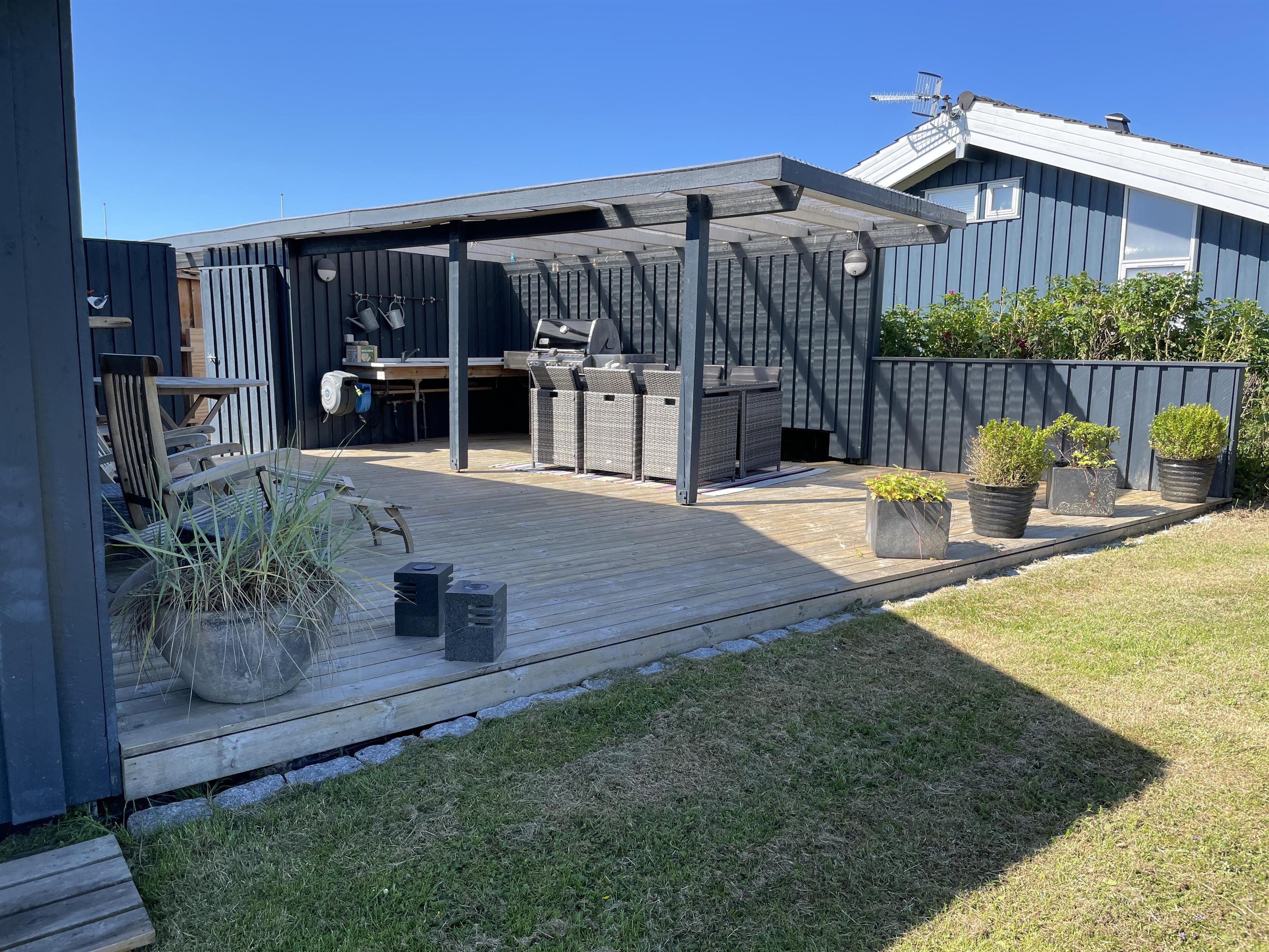 One terrace allows you to enjoy the morning sun, and another large newer wooden terrace with a canopy lets you enjoy the late afternoons and evening sun. There is an outdoor kitchen with water installed and a new dining table with chairs so you can enjoy your summer dishes and stay outside even when the dew falls.