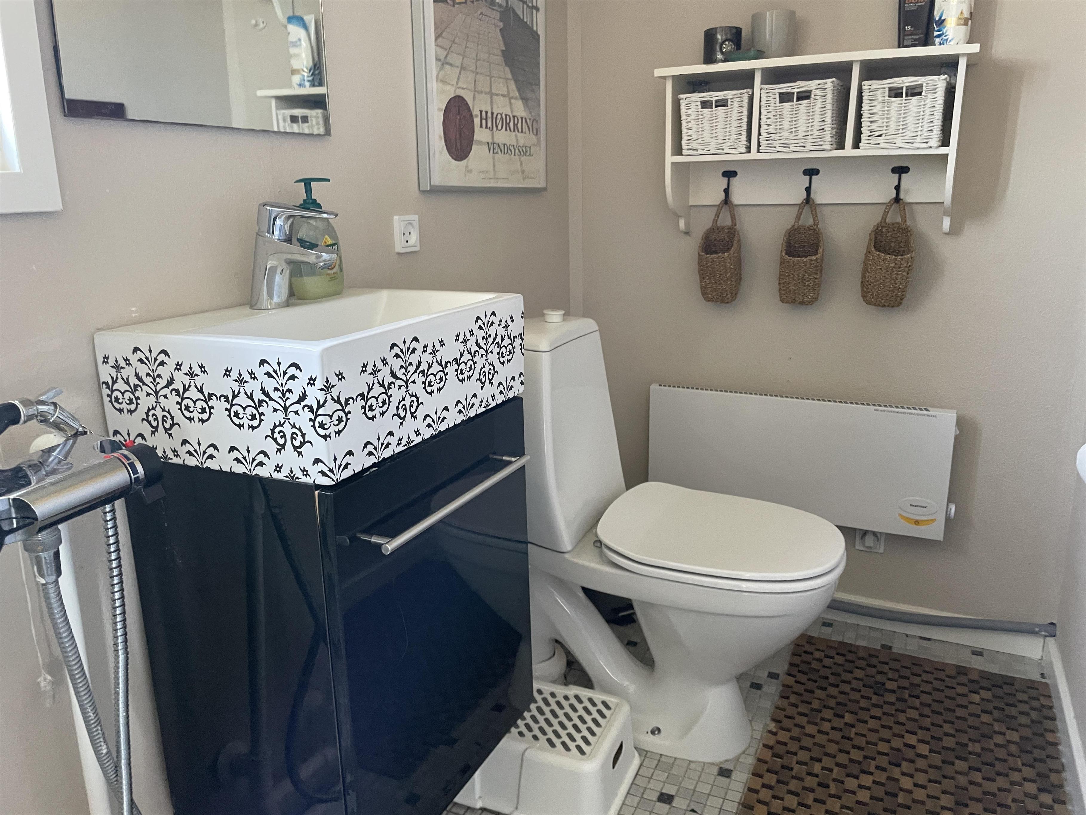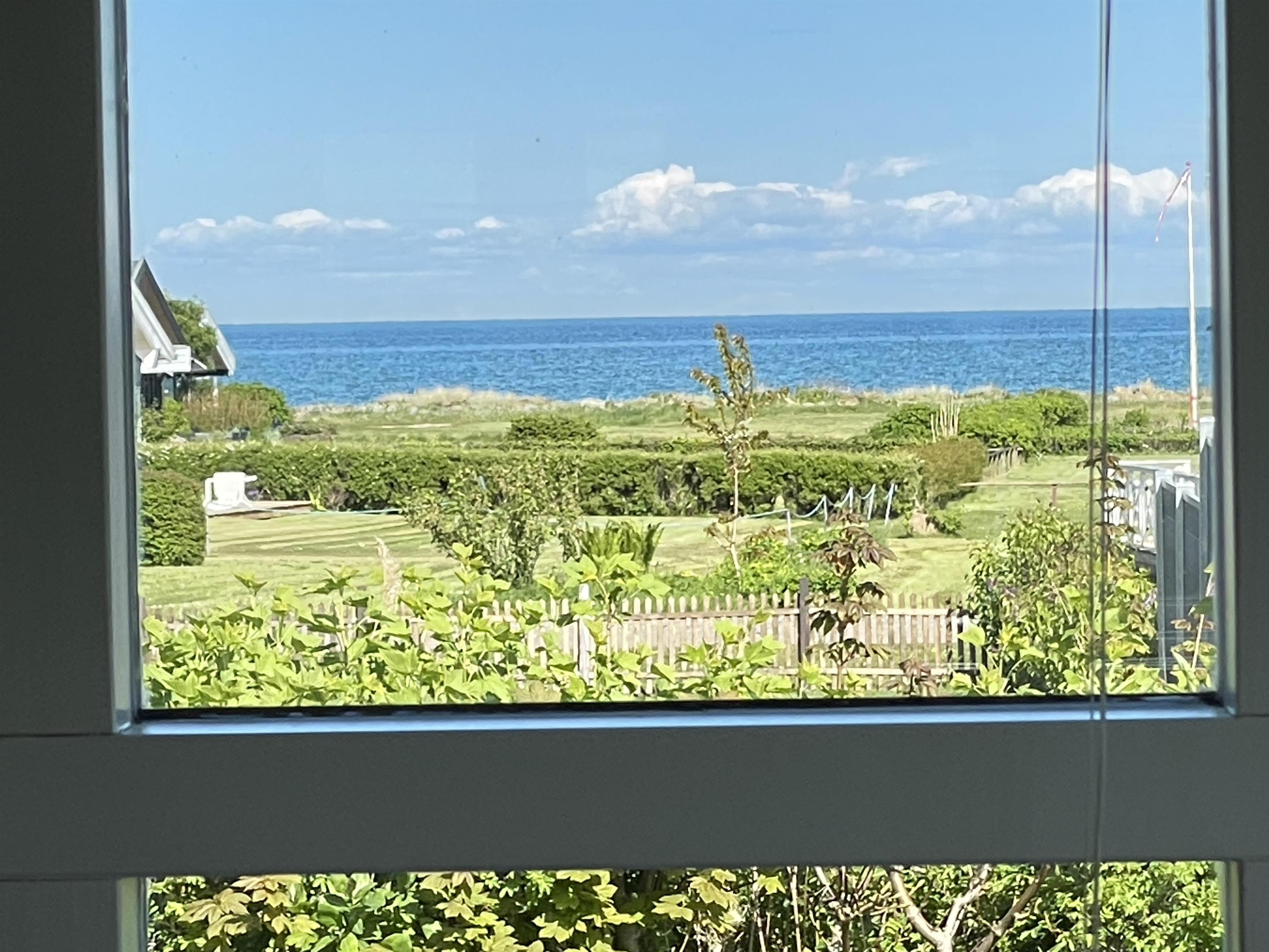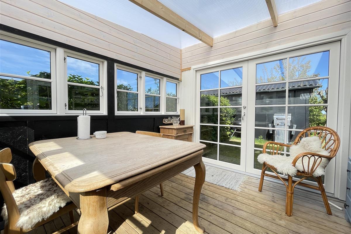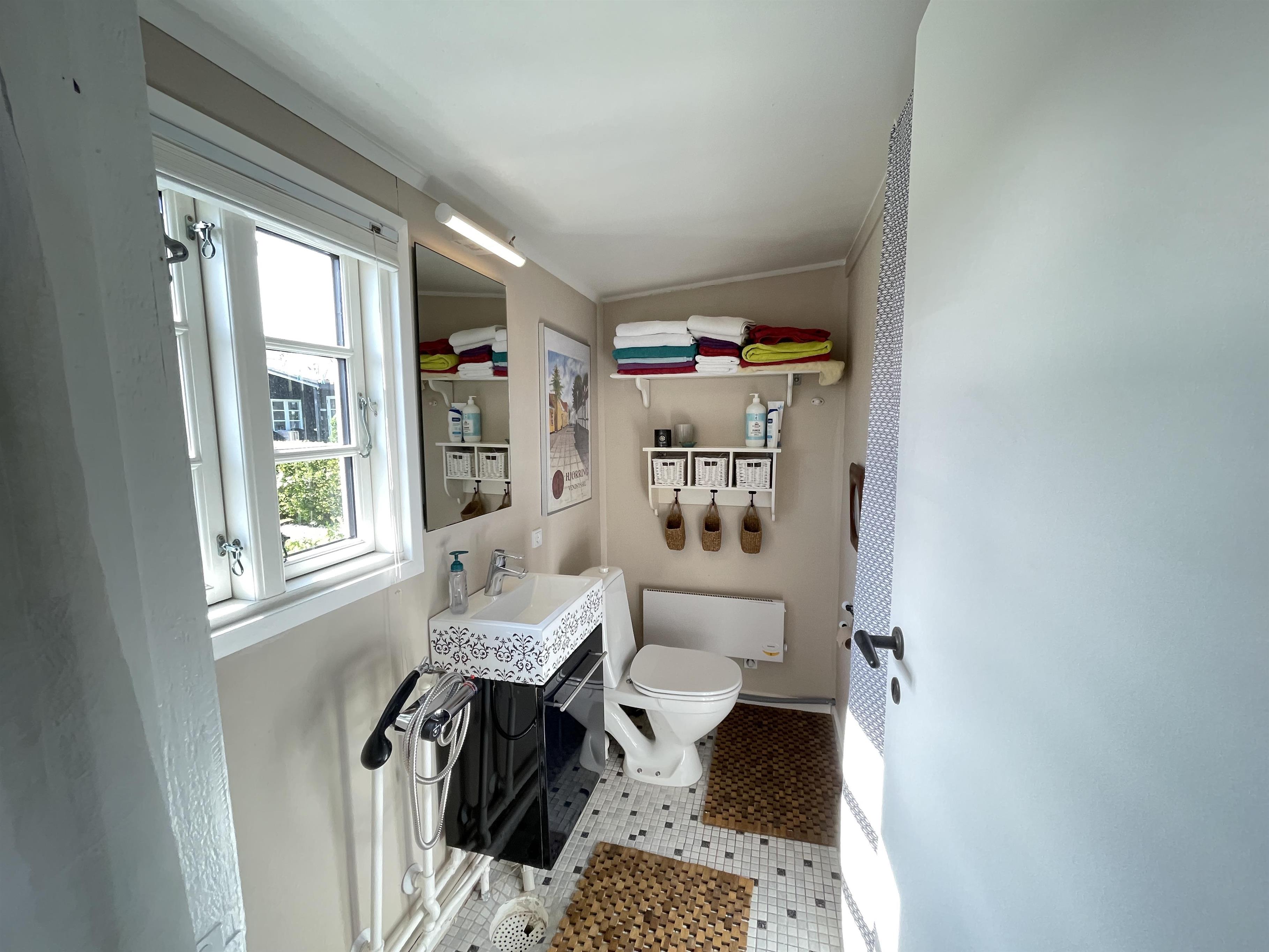 The living area has been beautifully renovated with a new floor and new furniture. It radiates charm and comfort, with a dining nook and a lovely sofa placed in the bay window. From here, you can enjoy views of the Kattegat Sea, just 200 meters away, and the peaceful natural surroundings. Attached to the house is a wonderful little sunroom.