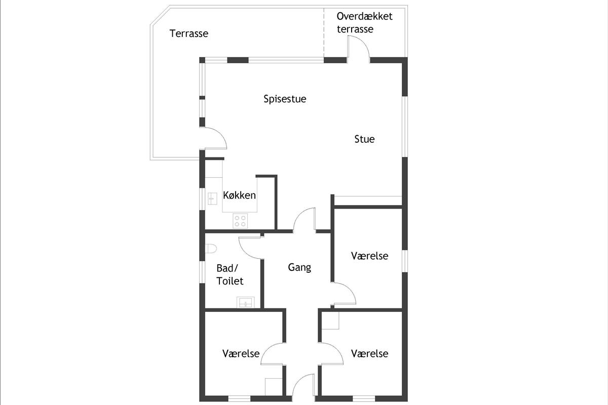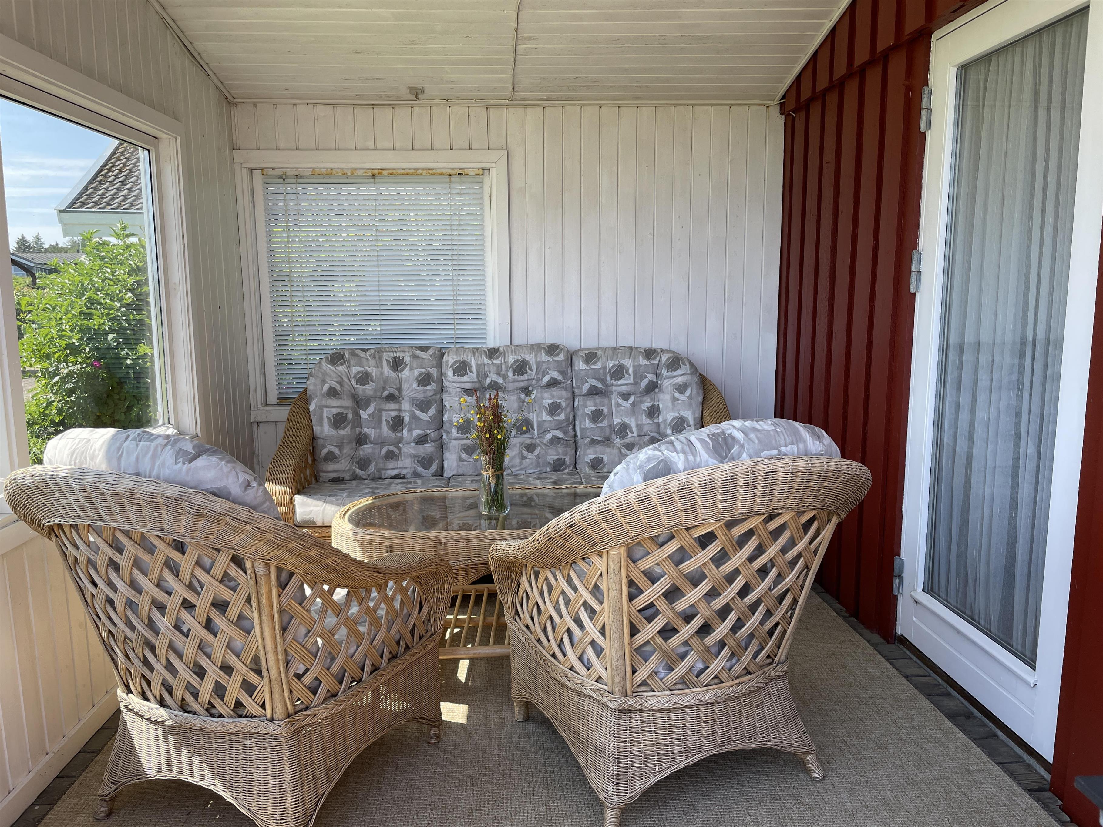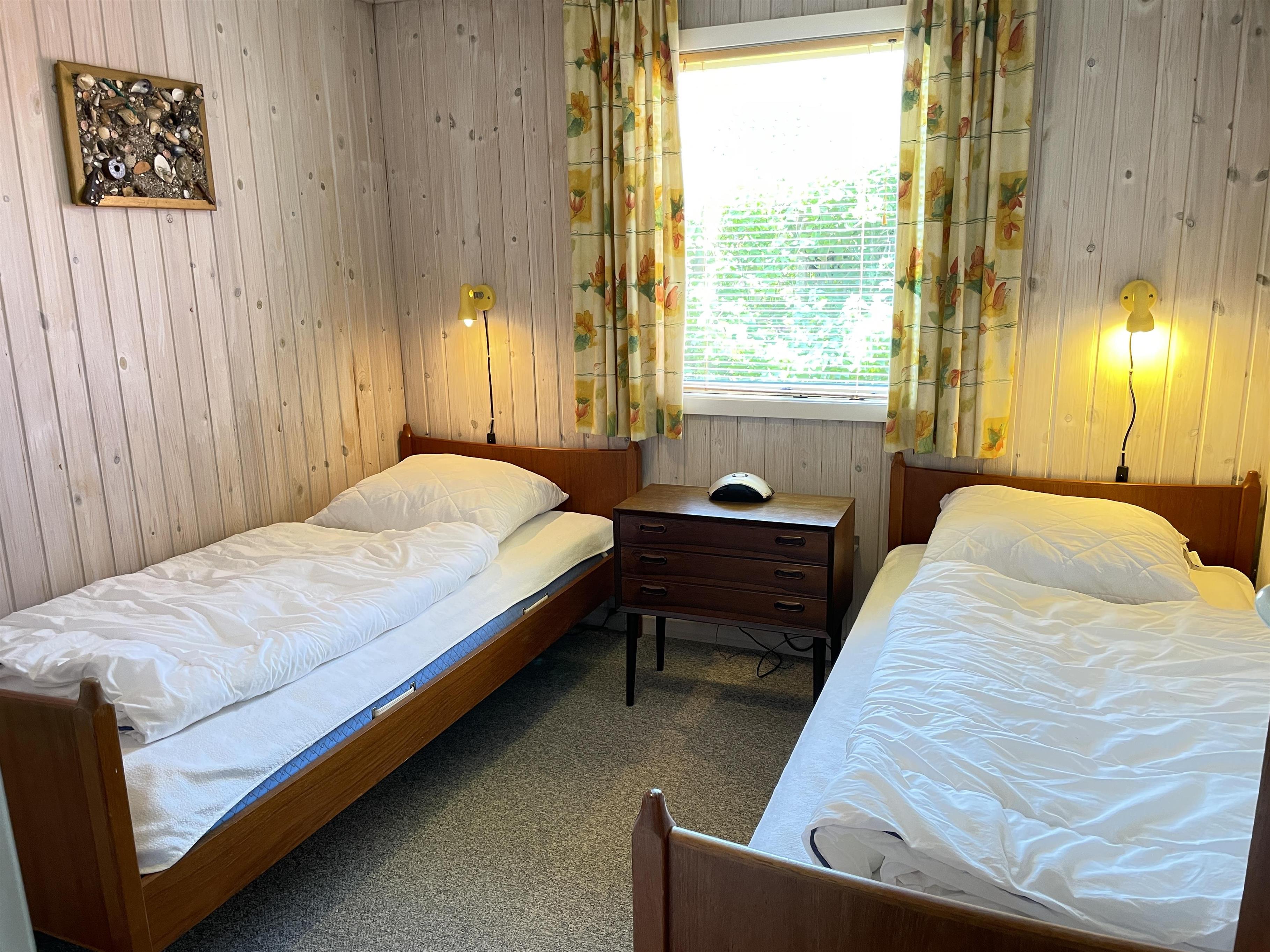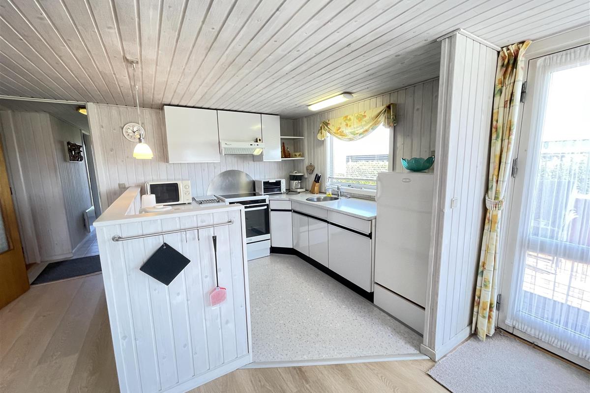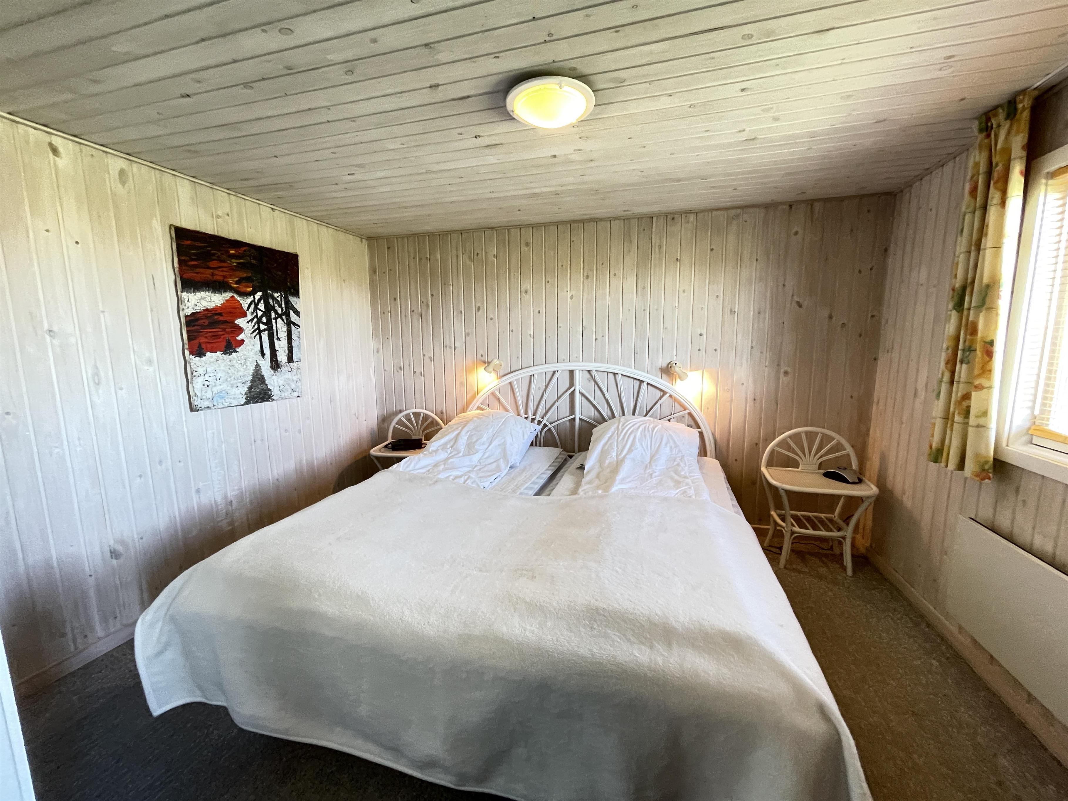 The living room has direct access to a cozy covered terrace, where you can enjoy your morning coffee while listening to the soothing sound of the waves. The summer house features three well-appointed bedrooms, all with ample closet space. Here, you’ll find comfortable sleeping arrangements for up to 6 people, including a double bed, two single beds, and a bunk bed (80 cm x 210 cm).