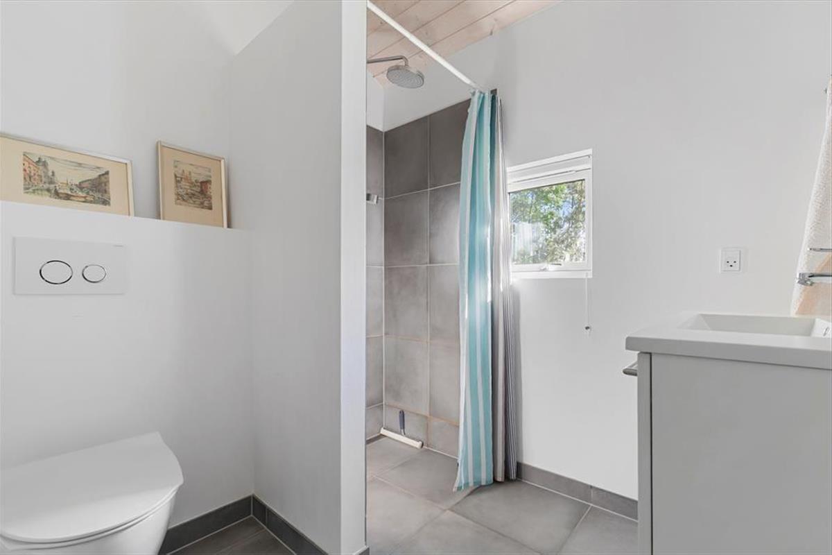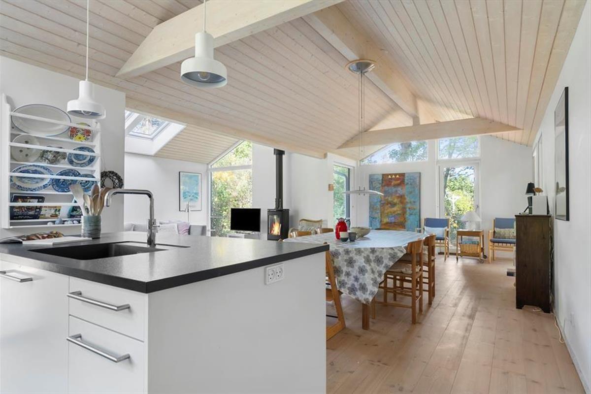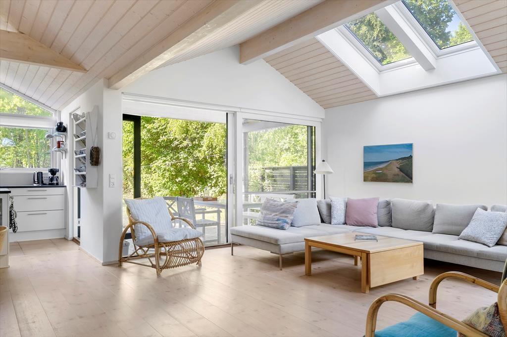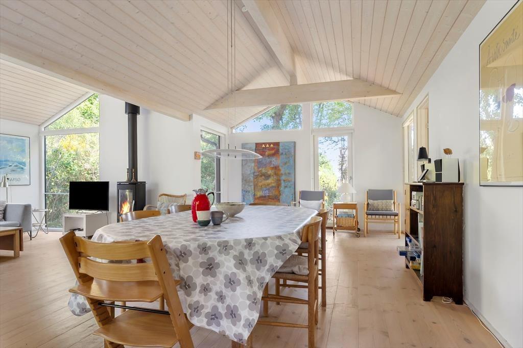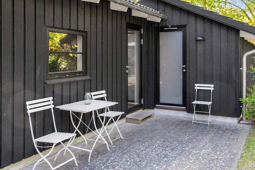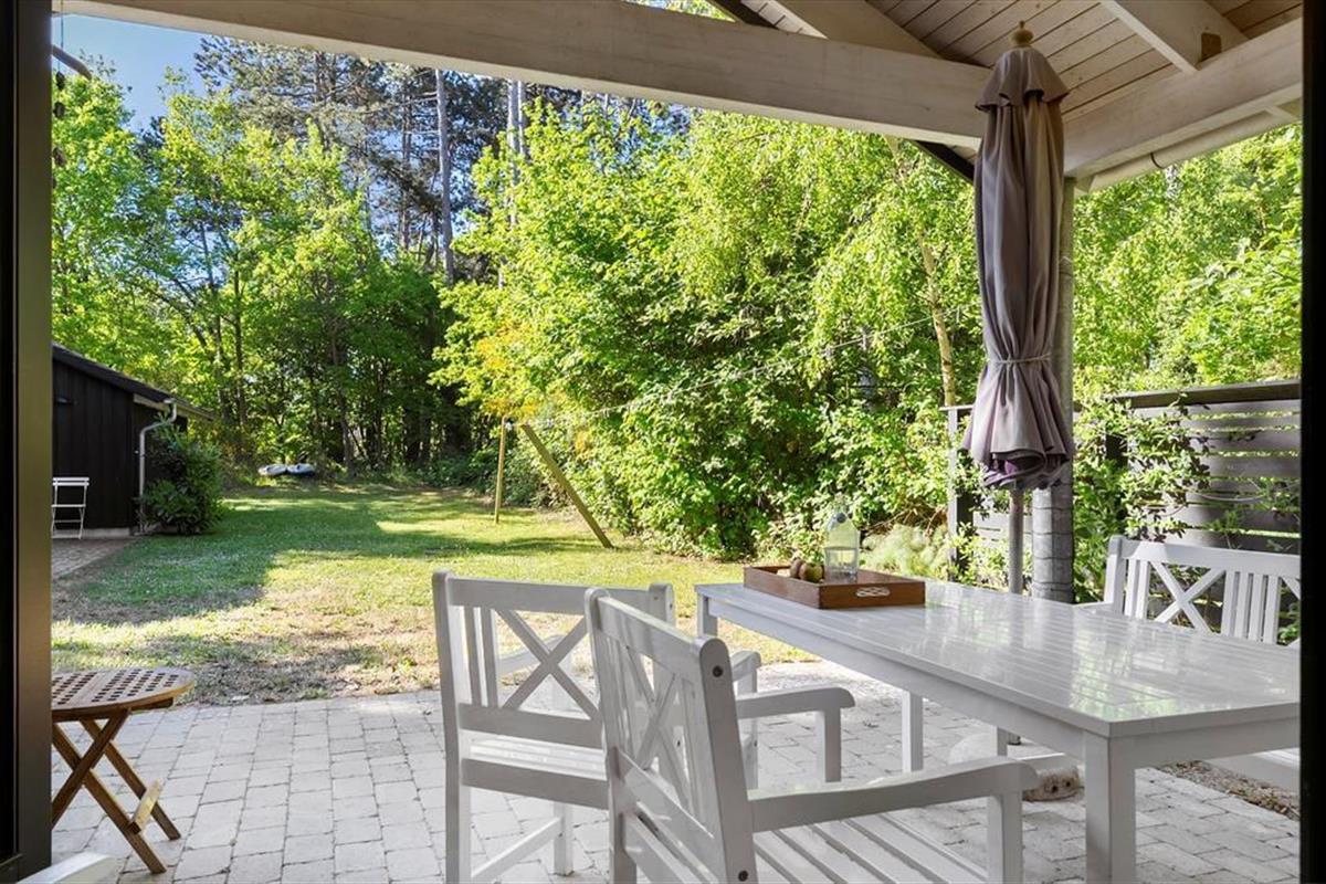 Das Ferienhaus ist von einem schönen Garten mit Sträuchern und Bäumen umgeben, die Privatsphäre und eine entspannte Atmosphäre schaffen. Es gibt viel Platz zum Spielen auf der Wiese, und der Strand ist nur 150 Meter entfernt. Ein kleiner Pfad führt direkt vom Haus ans Wasser – perfekt für ein erfrischendes Bad oder einen Spaziergang entlang der Küste. Die Terrasse mit direktem Zugang von der Küche ist ideal zum Grillen und Essen im Freien.