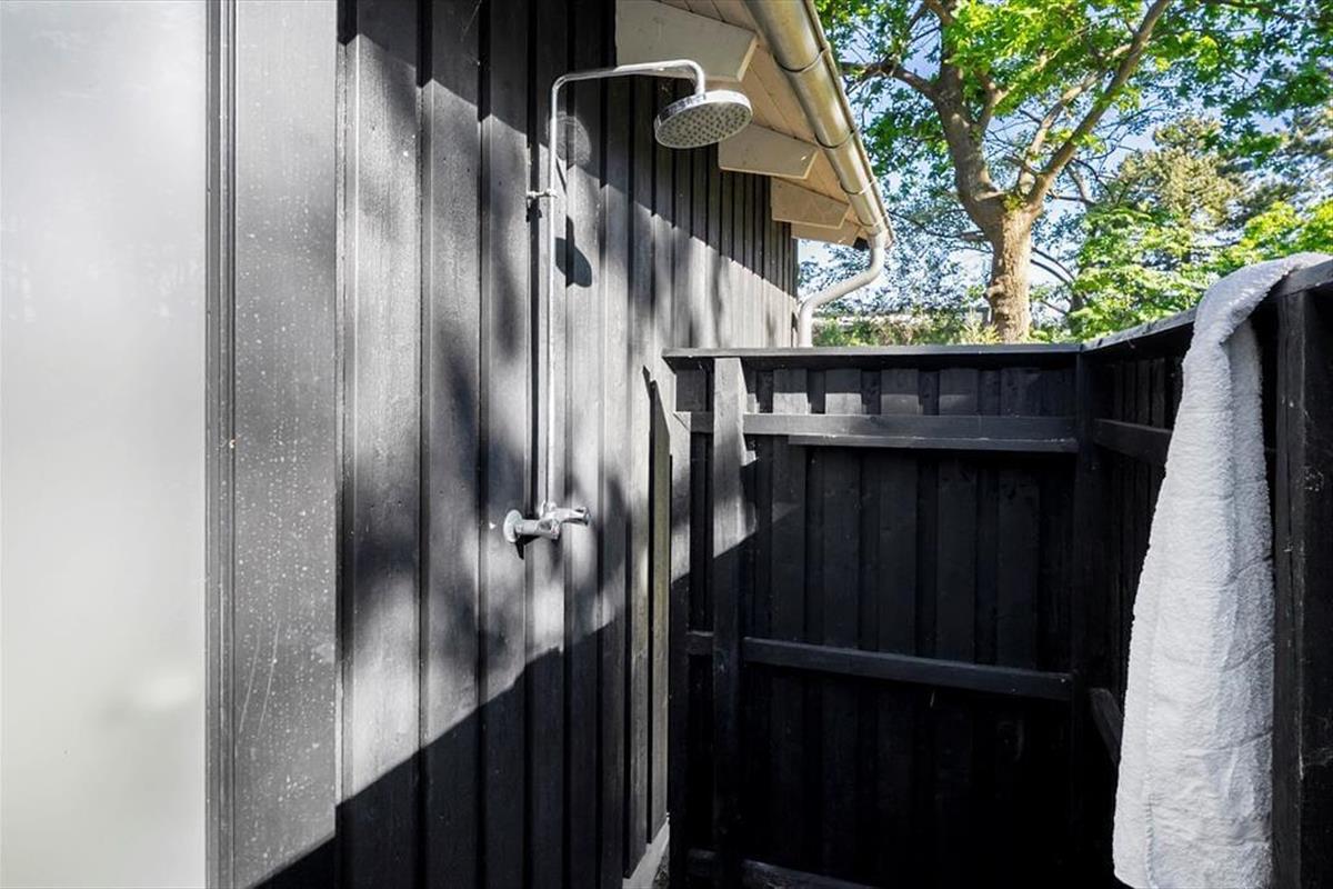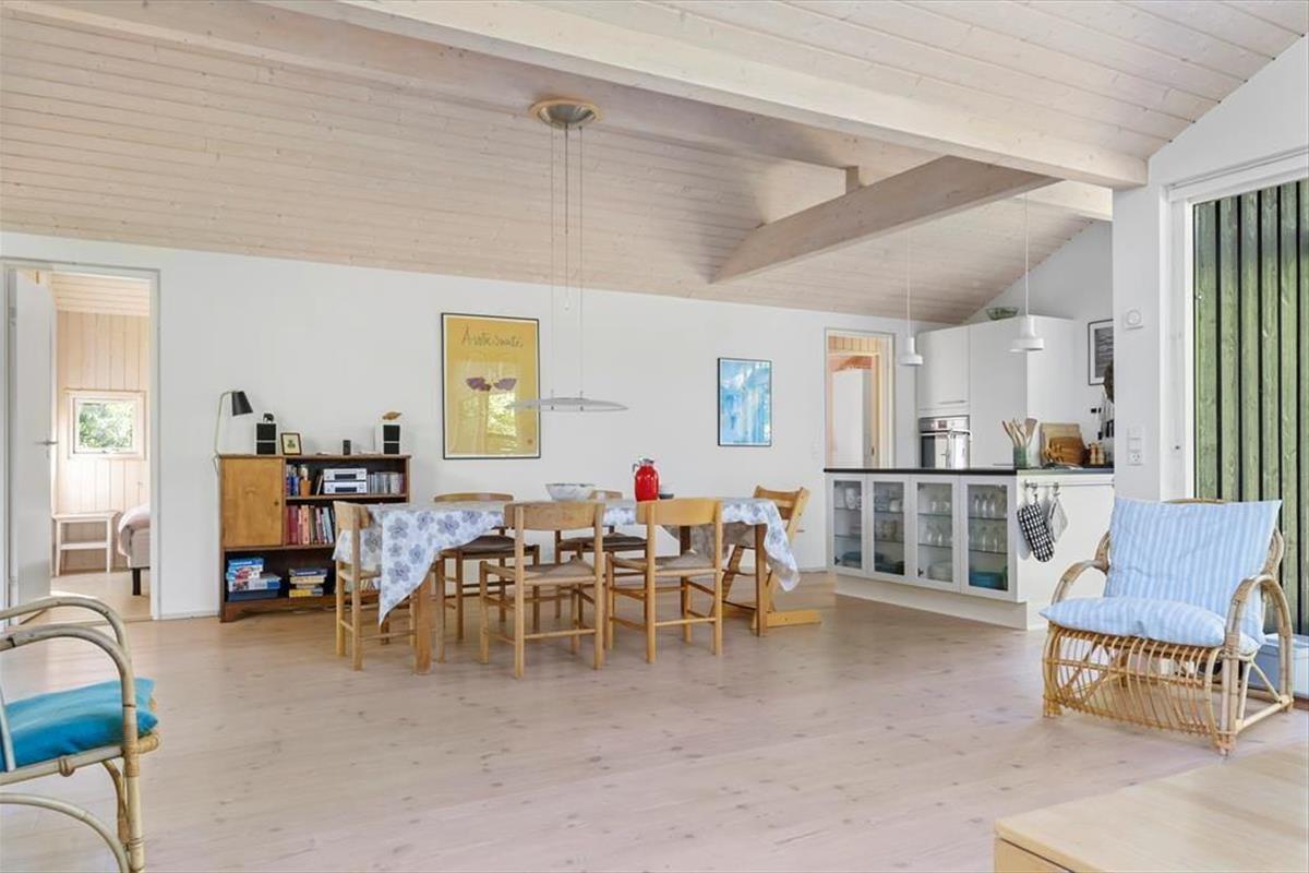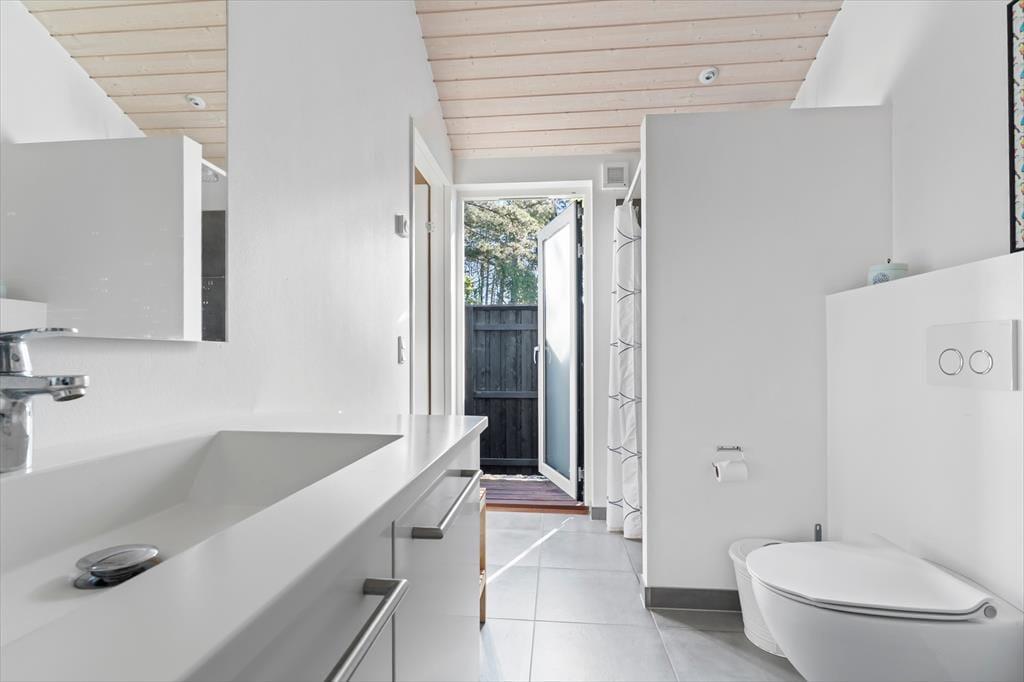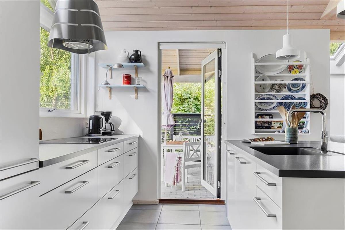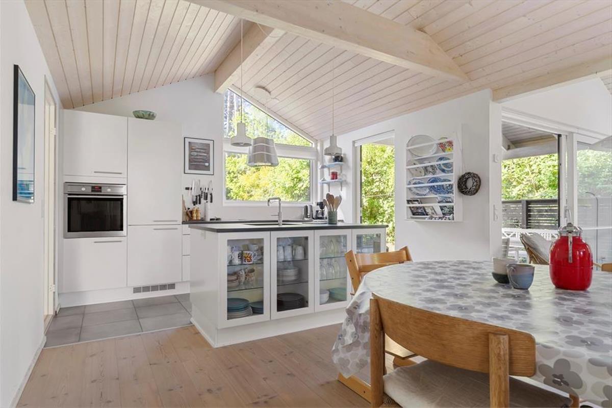 Das Ferienhaus ist von einem schönen Garten mit Sträuchern und Bäumen umgeben, die Privatsphäre und eine entspannte Atmosphäre schaffen. Es gibt viel Platz zum Spielen auf der Wiese, und der Strand ist nur 150 Meter entfernt. Ein kleiner Pfad führt direkt vom Haus ans Wasser – perfekt für ein erfrischendes Bad oder einen Spaziergang entlang der Küste. Die Terrasse mit direktem Zugang von der Küche ist ideal zum Grillen und Essen im Freien.