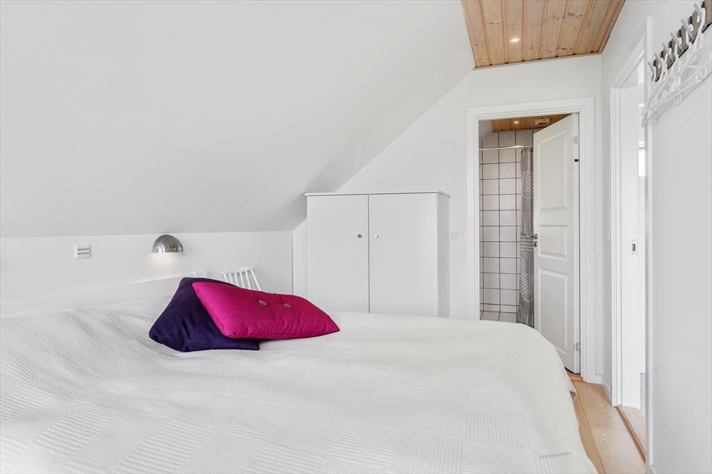Dieses schön helle und einladende Ferienhaus erstreckt sich über zwei Stockwerke. Es beinhaltet zwei Badezimmer und bietet Platz für Ihre gesamte Familie oder all Ihre guten Freunde. Die attraktive Aussicht auf Samsøs Westküste macht dieses Mietobjekt zu etwas ganz Besonderem.