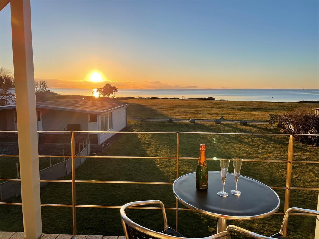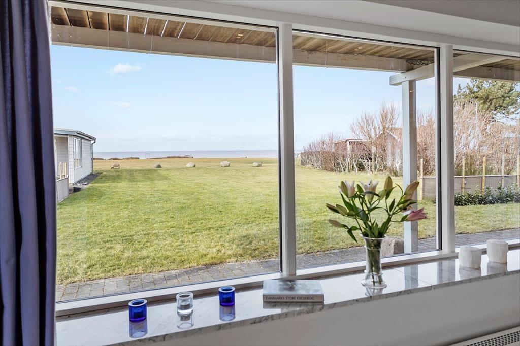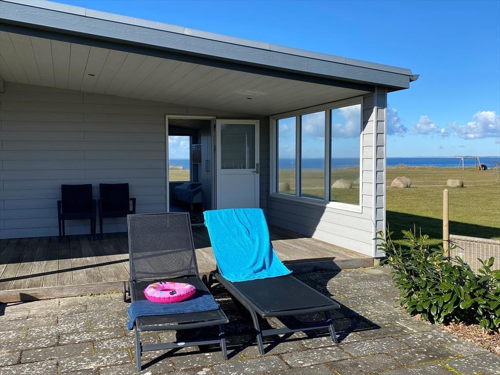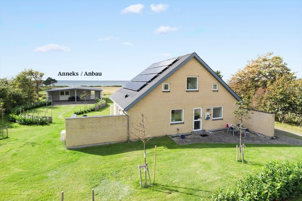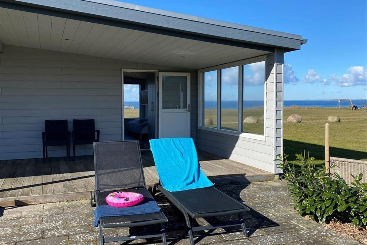 Das Ferienhaus befindet sich auf einem großen, offenen und mit Gras bewachsenen Grundstück. Dadurch genießen Sie den Ausblick in seiner ganzen Pracht. An den Grundstücksrändern sind einige Büsche gepflanzt, die durch niedrige Zaunelemente teilweise abgeschirmt werden. Die großen Terrassen laden zu erholsamen Stunden und zu gemeinsamen Essen unter freiem Himmel ein. Bei schönem Wetter machen Sie es sich auf Liegestühlen in der Sonne gemütlich. Die Südterrasse ist durch eine halbhohe Mauer abgeschirmt, die Privatsphäre und Windschutz bietet. In Richtung Wasser steht Ihnen eine große, überdachte Terrasse zur Verfügung. Auf dieser werden Sie viele Abende mit Ausblick auf das Meer und auf die wundervollen Sonnenuntergänge verbringen.
