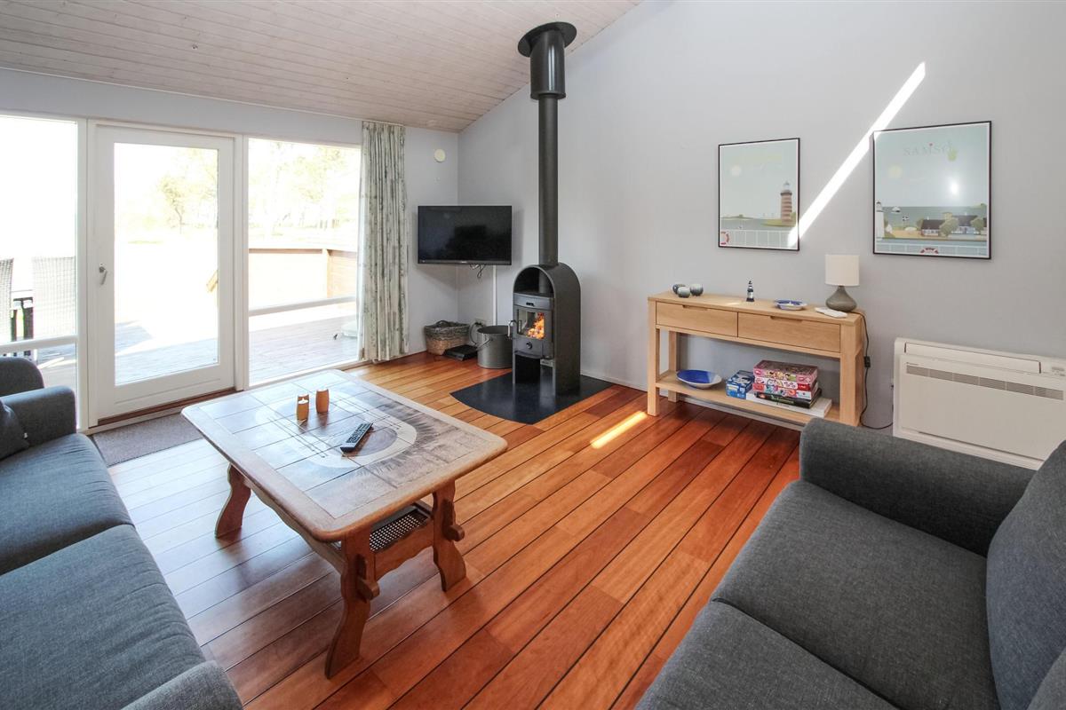 Stijlvol vakantiehuis direct aan zee op Samsø, met open haard en prachtig uitzicht.