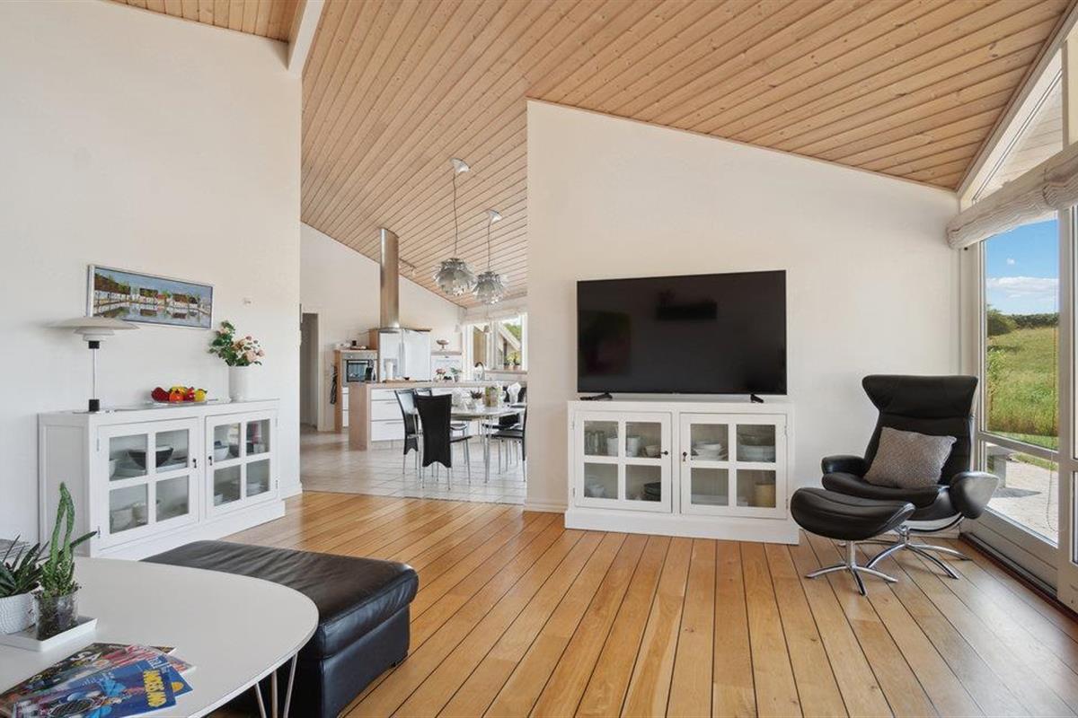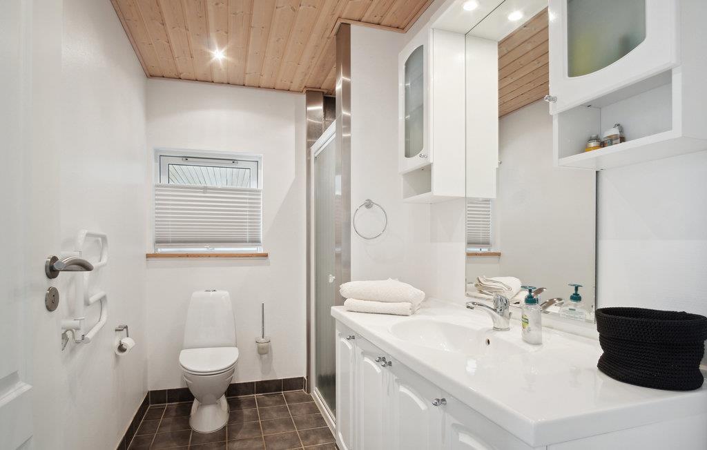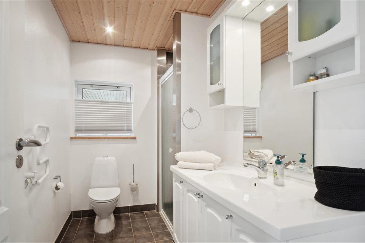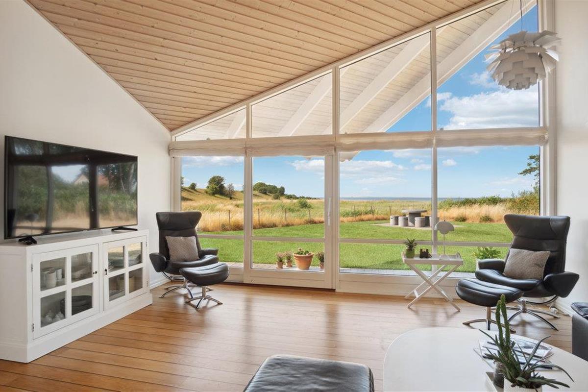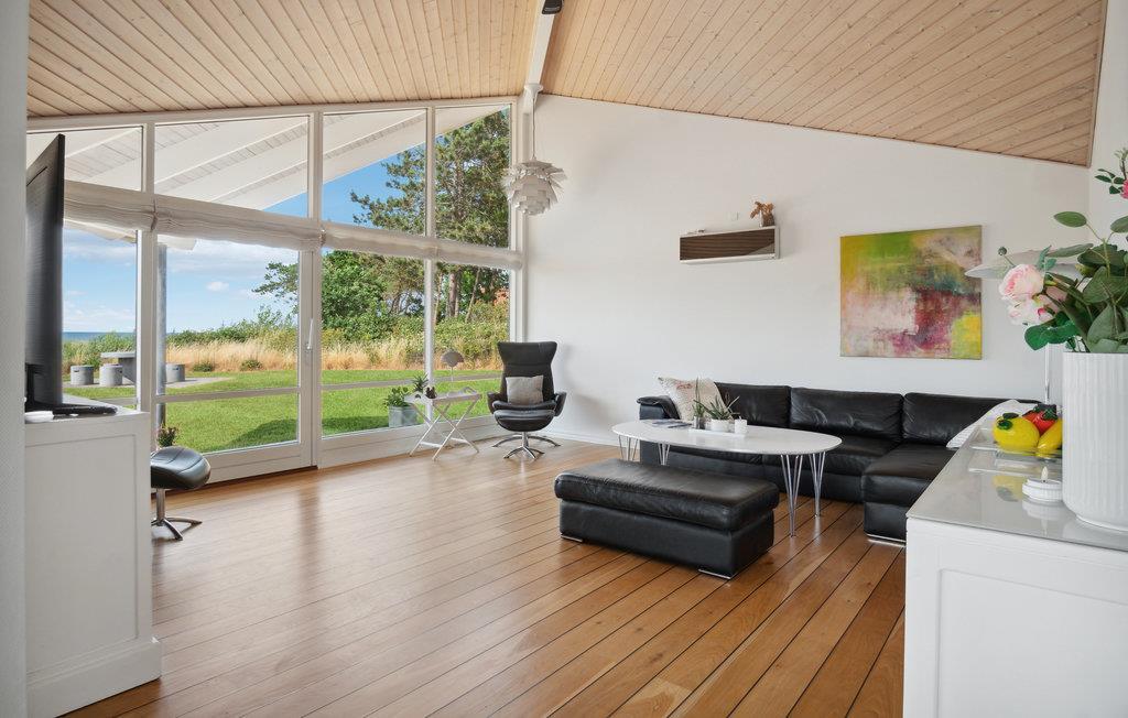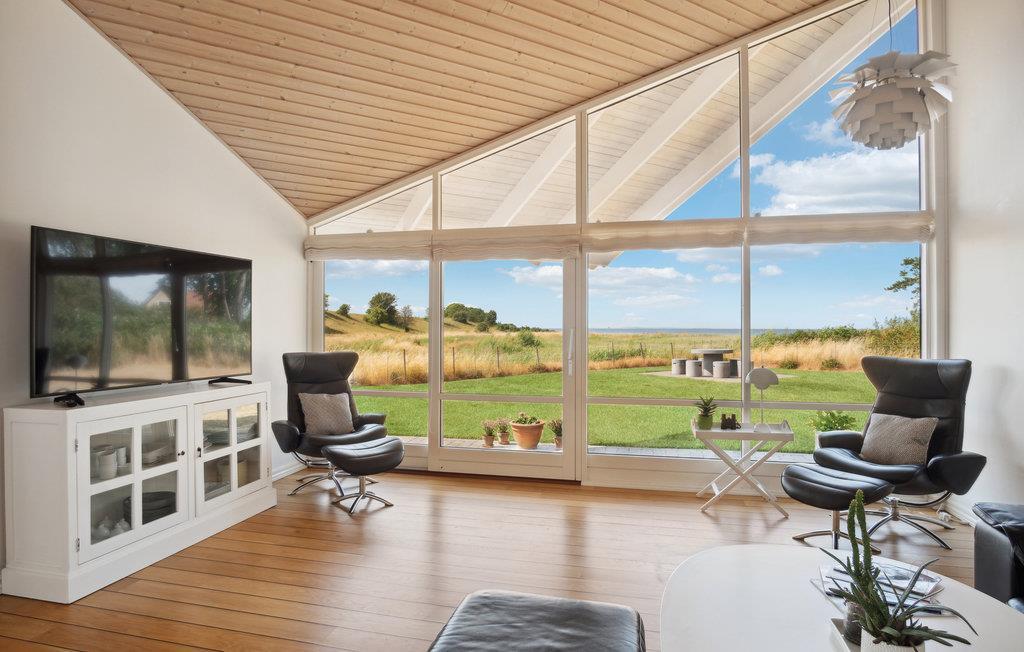 Here you get 120 m² spread over 3 rooms, 2 modern bathrooms and a large, open living room with kitchen and dining area. The large panoramic windows create a unique connection between indoors and outdoors, so you always have nature close by. The living room is furnished with comfortable furniture and a large TV, so there is plenty of opportunity to relax after a day full of experiences.