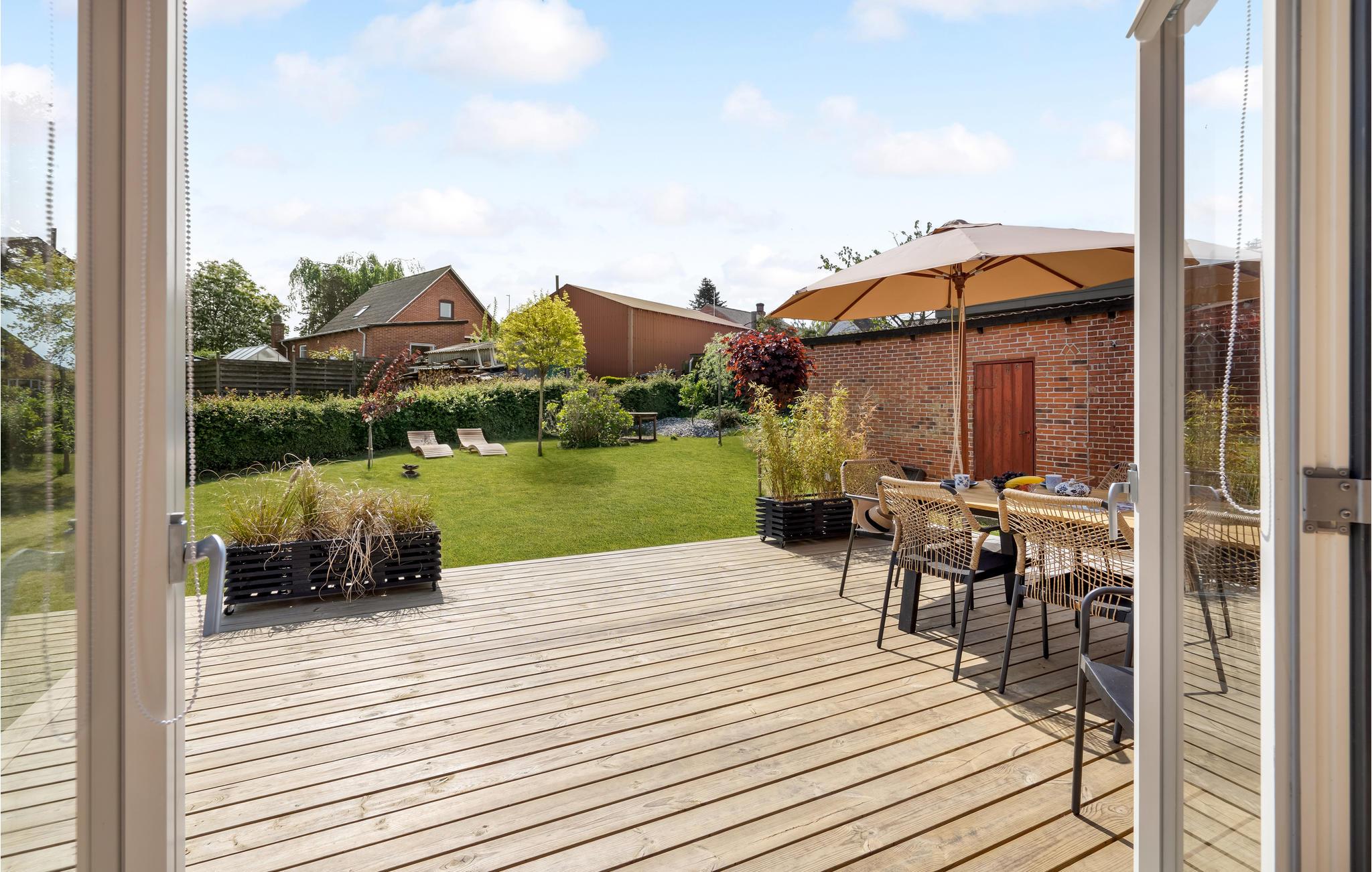 U kunt de zonnige uren van de dag doorbrengen op het ruime houten terras. Lees een boek en kijk hoe uw kinderen voetballen op het gazon of daag uzelf uit met een potje kubb.