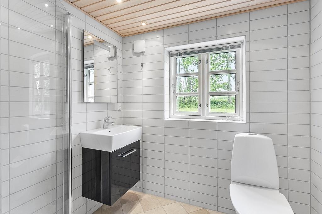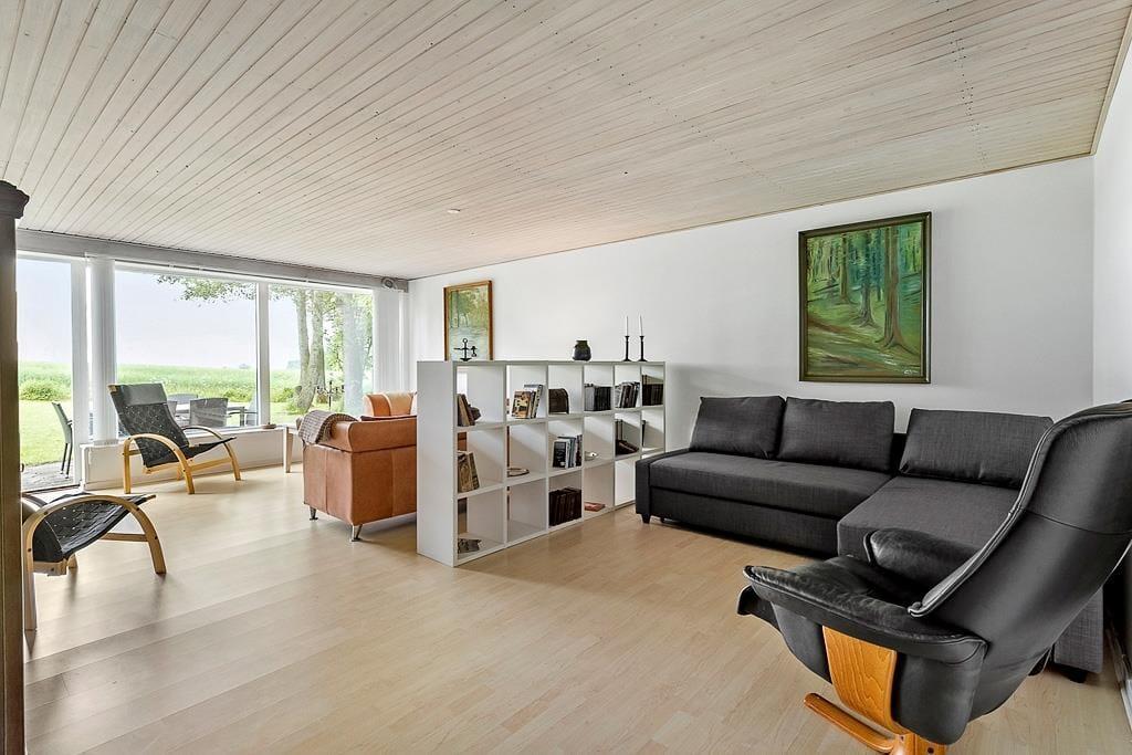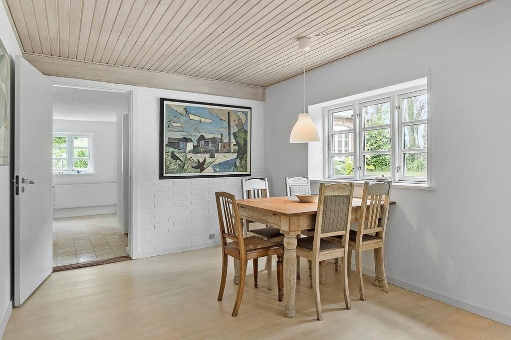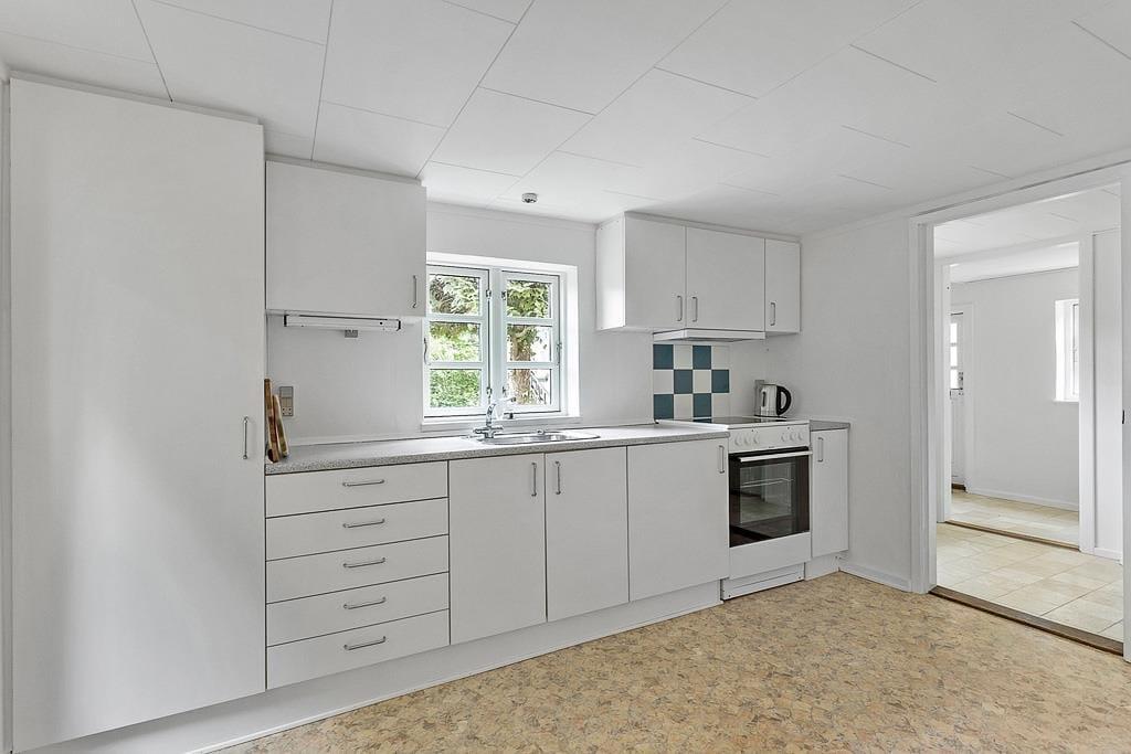 Beim Betreten dieses charmanten Sommerhauses wirst du sofort die warme und einladende Atmosphäre spüren. Das schöne Wohnzimmer hat dank großer Fenster einen fantastischen Lichteinfall, und vom Wohnzimmer aus gelangt man direkt auf die Terrasse und die grüne Rasenfläche, wo du die friedliche Umgebung genießen kannst. Die separate weiße Küche ist funktional und gemütlich eingerichtet, obwohl sie keine Spülmaschine hat, was lediglich das einfache und authentische Sommerhauserlebnis unterstützt. Es gibt viel Platz, um köstliche Mahlzeiten mit lokalen Zutaten zuzubereiten, und wenn du deinen eigenen Fisch gefangen hast, kannst du das Fischreinigungsbrett draußen benutzen.