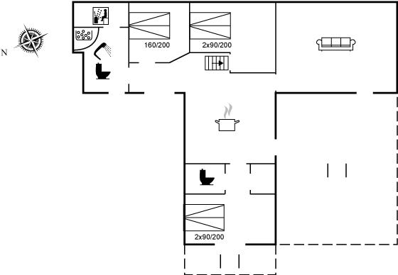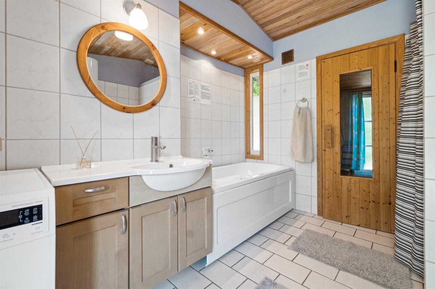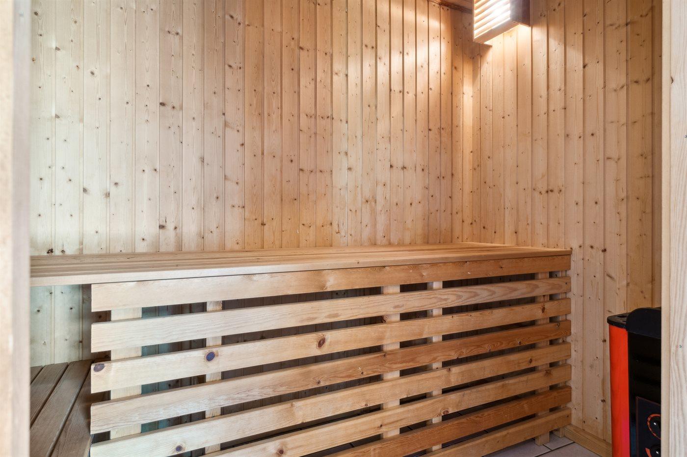 Er is 1 badkamer met douchehok en 2 toiletten, waarvan 1 gastentoilet. Er is vloerverwarming in 1 badkamer. De sauna biedt de gelegenheid tot ontspanning.