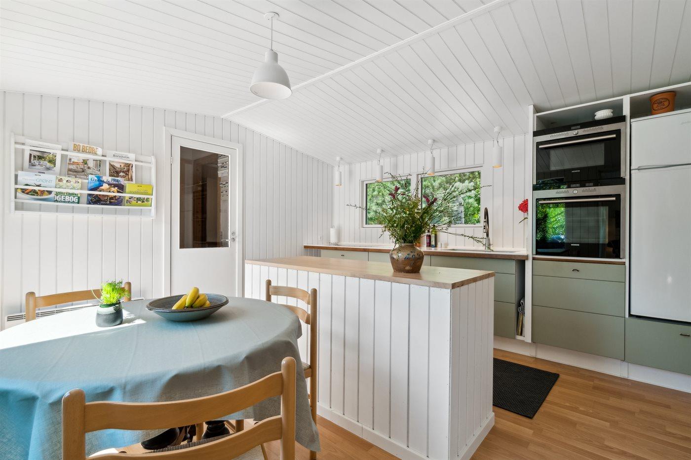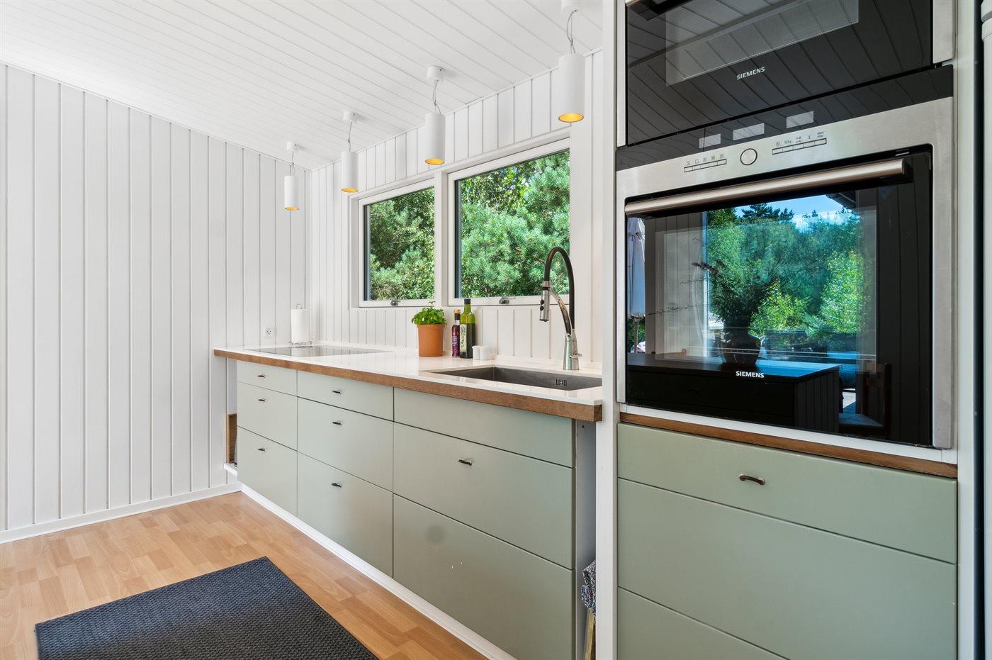 De keuken is uitgerust met koelkast Er is 4 inductiekookplaten, heteluchtoven, magnetron en vaatwasser.