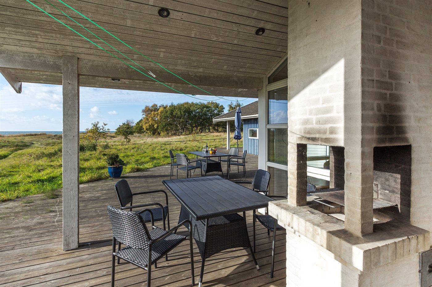 De vakantiewoning is gelegen op een 2133 m² groot natuural grond. Afstand tot de zee 50 m. Dichtstbijzijnde winkel 4000 m. Bij de vakantiewoning hoort 125 m² terras. Daarnaast is er een 30 m² groot overdekt terras. Gereedschapsruimte. Op zwoele avonden zorgt de buitenhaard voor een gezellige sfeer. Parkeerplaats bij het huis.