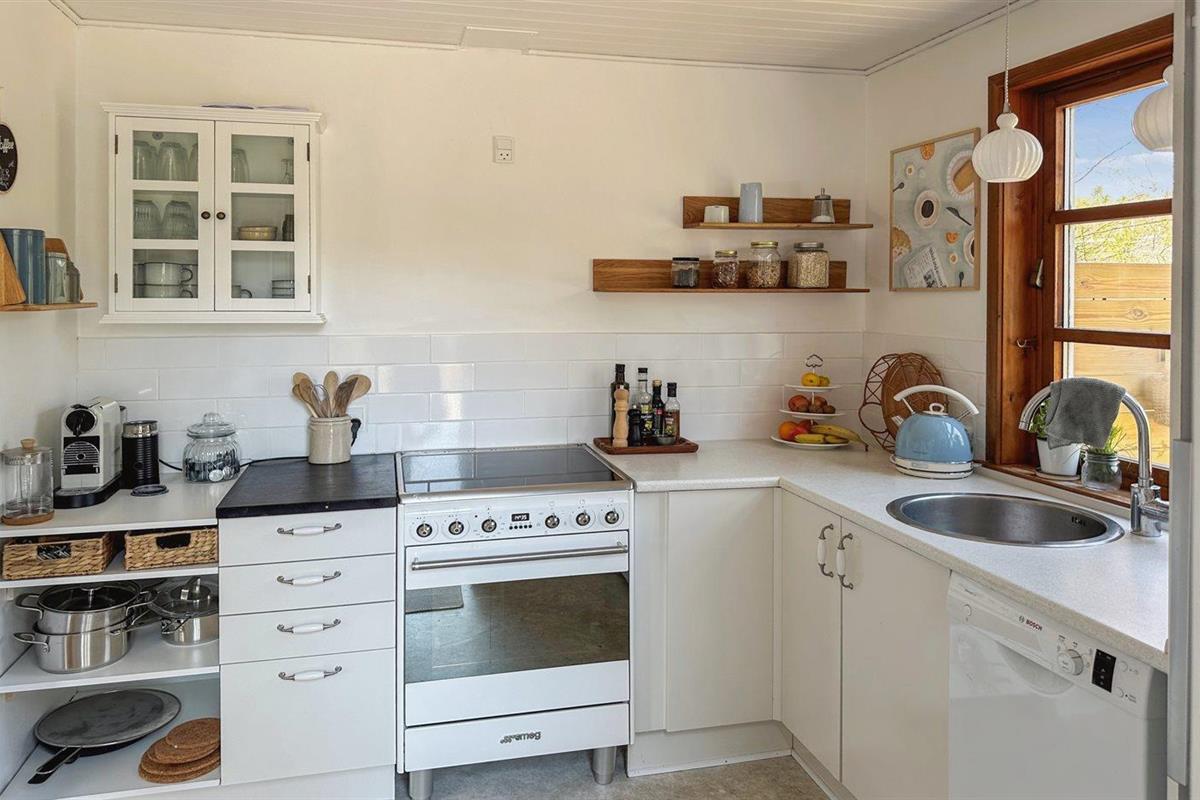 De keuken is uitgerust met koelkast Er is 4 elektrische kookplaten, bakoven en vaatwasser.