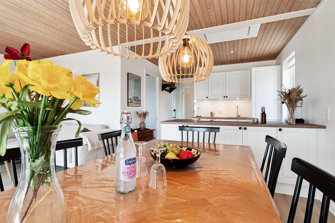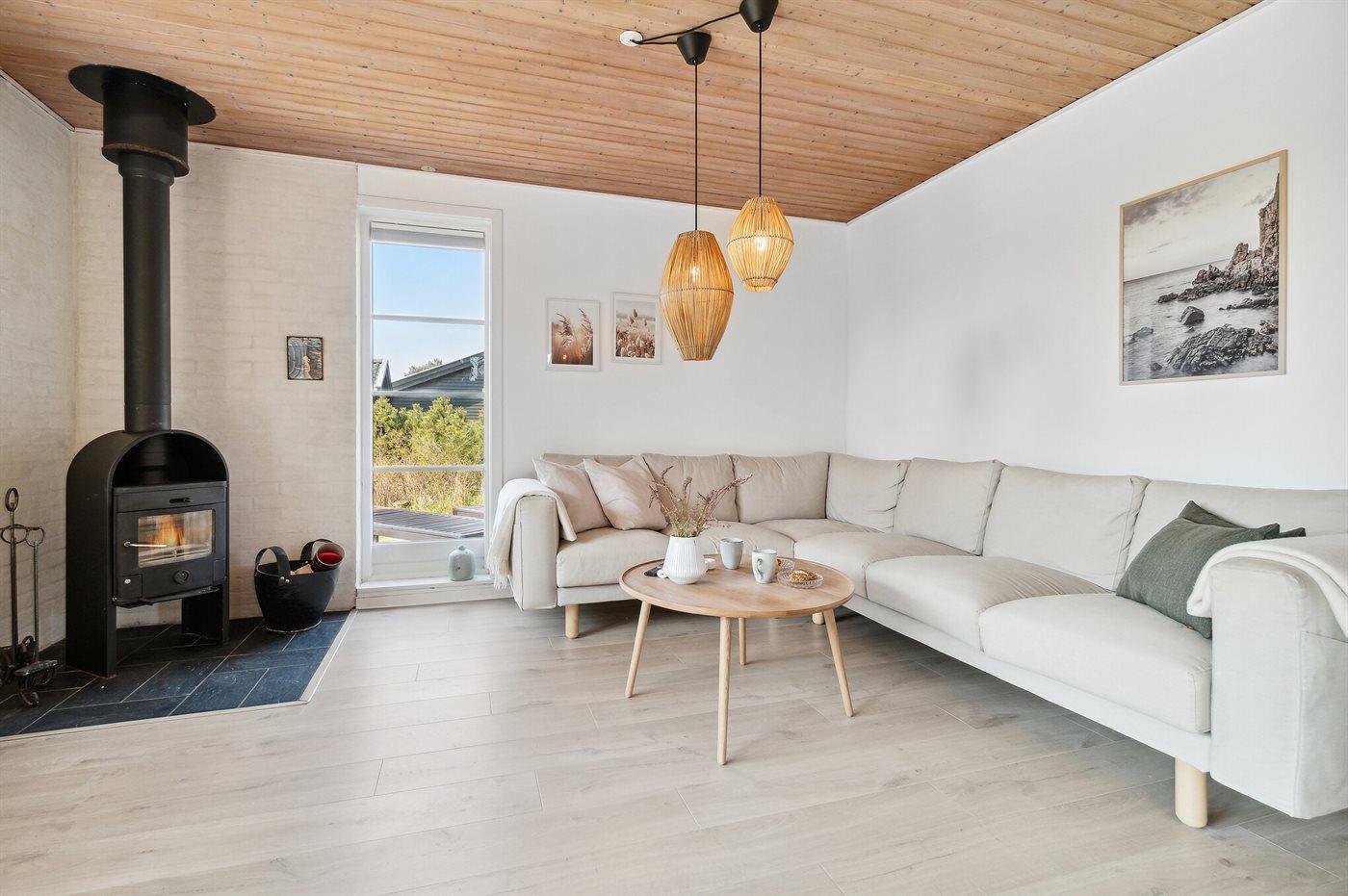 Volledig gerenoveerd vakantiehuis in Aakirkeby, Denemarken, vlak bij zee met houtkachel en warmtepomp.