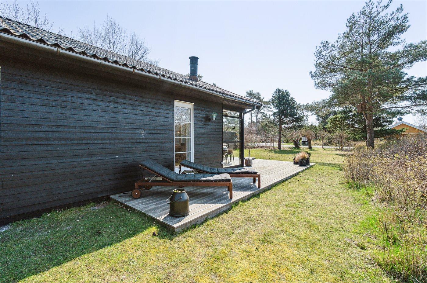 De vakantiewoning is gelegen op een 780 m² groot natuural grond. Afstand tot de zee 150 m. Dichtstbijzijnde winkel 3000 m. Bij de vakantiewoning hoort 14 m² terras. Daarnaast is er een 10 m² groot overdekt terras. Parkeerplaats bij het huis.