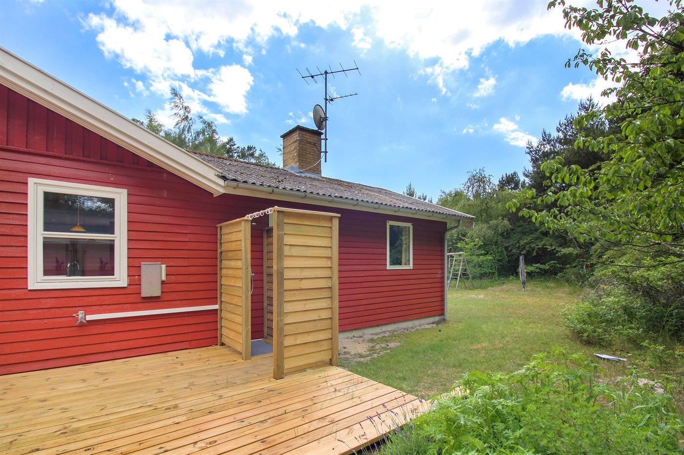 De vakantiewoning is gelegen op een 2500 m² groot natuural grond. Afstand tot de zee 300 m. Dichtstbijzijnde winkel 4500 m. Bij de vakantiewoning hoort 40 m² terras. Gereedschapsruimte. Schommel. Buitendouche. Carport ter beschikking. Parkeerplaats bij het huis.