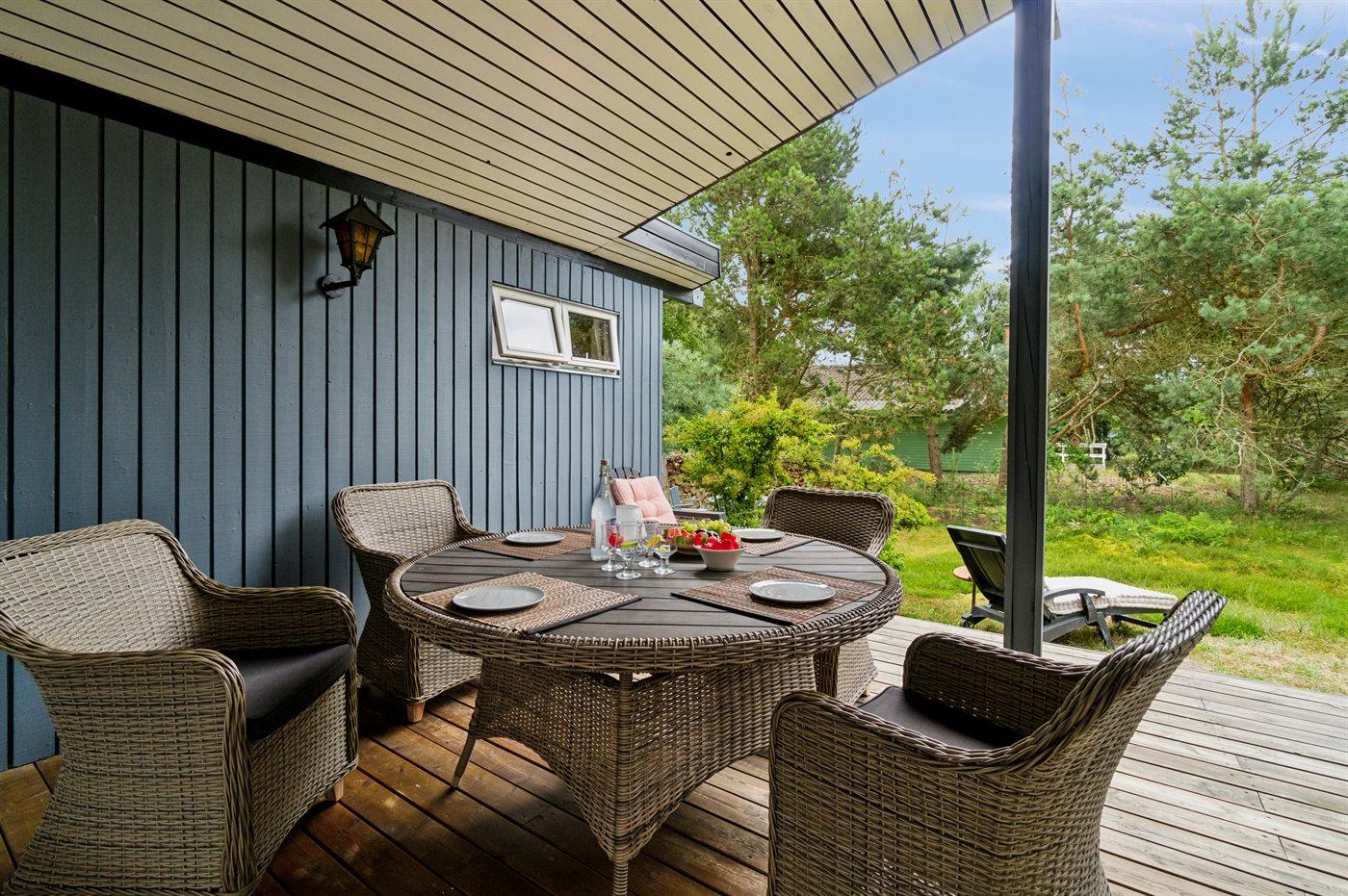 Charmant vakantiehuis nabij zee met houtkachel en overdekt terras in Aakirkeby.