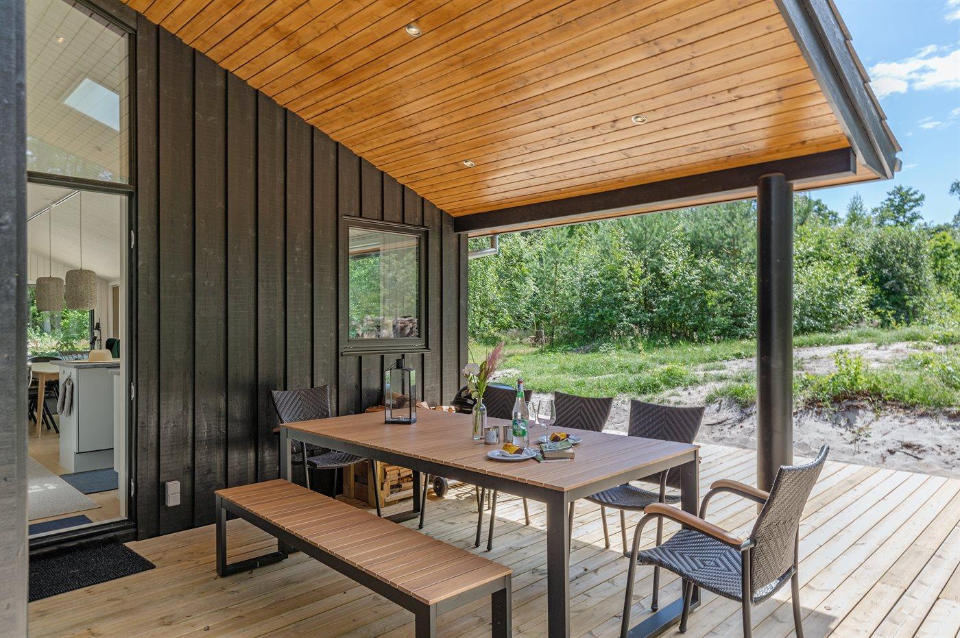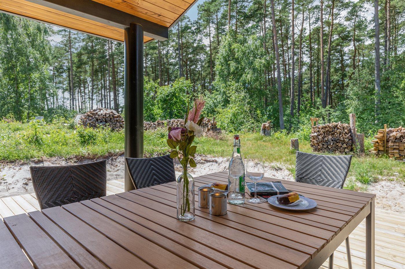 De vakantiewoning is gelegen op een 2000 m² groot grond in bos/park. Afstand tot de zee 200 m. Dichtstbijzijnde winkel 3000 m. Er is een golfbaan op een afstand van 4000 m. Bij de vakantiewoning hoort 30 m² terras. Daarnaast is er een 33 m² groot overdekt terras. Barbecue. Parkeerplaats bij het huis.