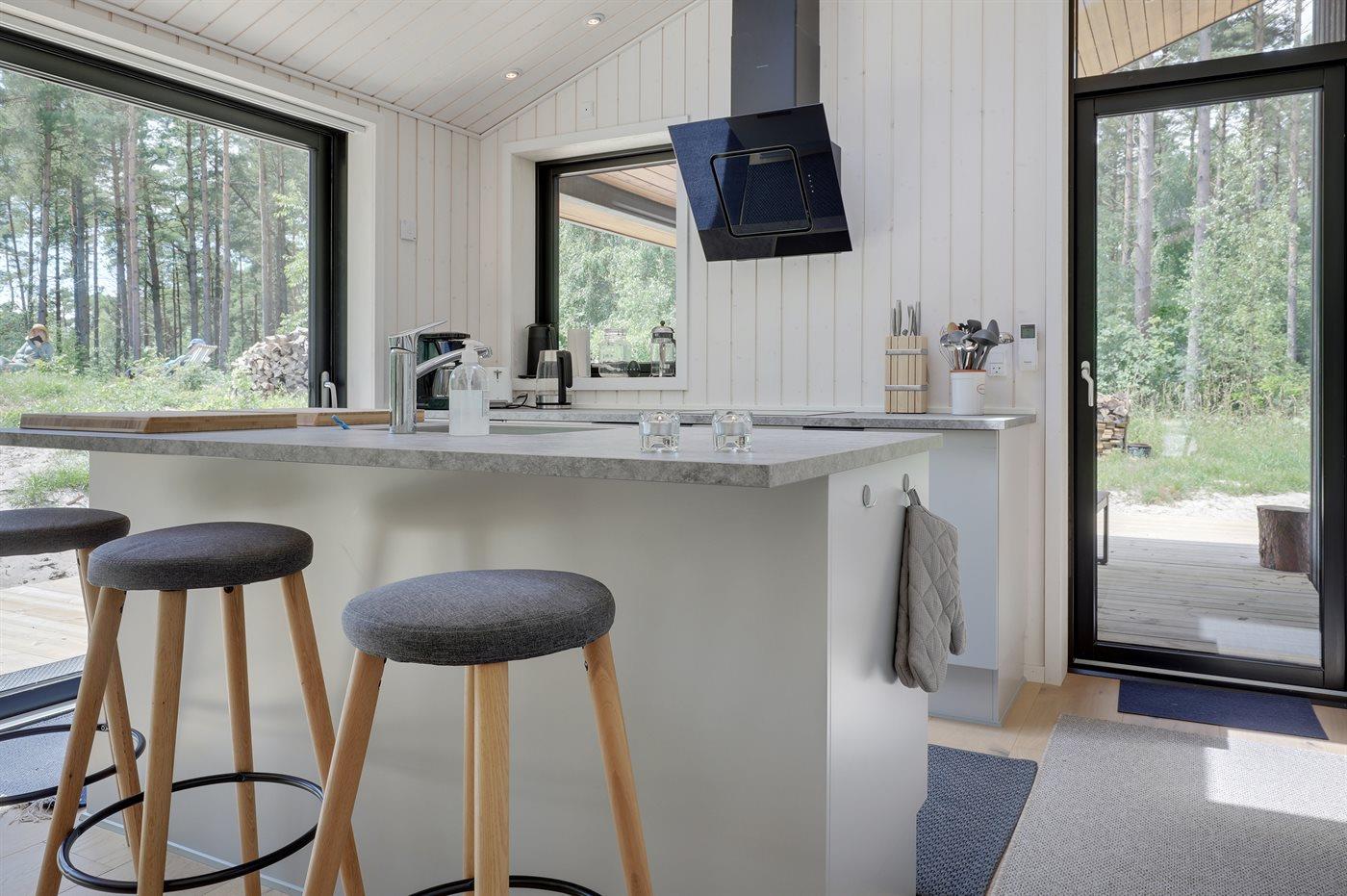 Modern vakantiehuis in Aakirkeby, 200 m van zee, met houtkachel en ruim terras.