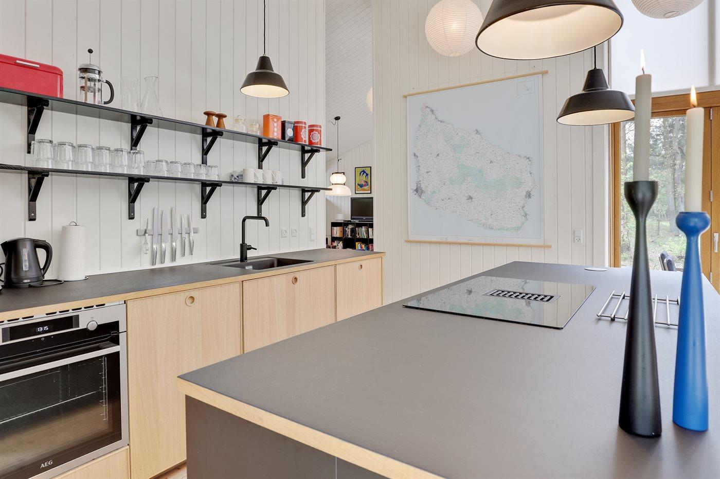 De keuken is uitgerust met koelkast Er is 4 inductiekookplaten, heteluchtoven en vaatwasser.