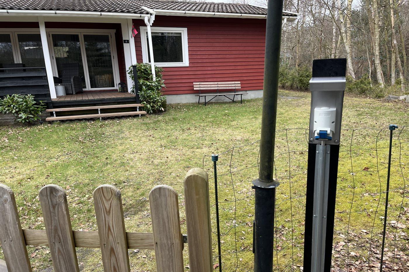 De vakantiewoning is gelegen op een 1217 m² groot natuural grond. De grond is omheind. Afstand tot de zee 700 m. Dichtstbijzijnde winkel 3500 m. Er is een golfbaan op een afstand van 3800 m. Bij de vakantiewoning hoort terras. Daarnaast is er een overdekt terras. Barbecue. Het huis heeft een stopcontact voor het opladen van een elektrische auto. CEE-stekker. Met 3 kW-laadvermogen. Parkeerplaats bij het huis.