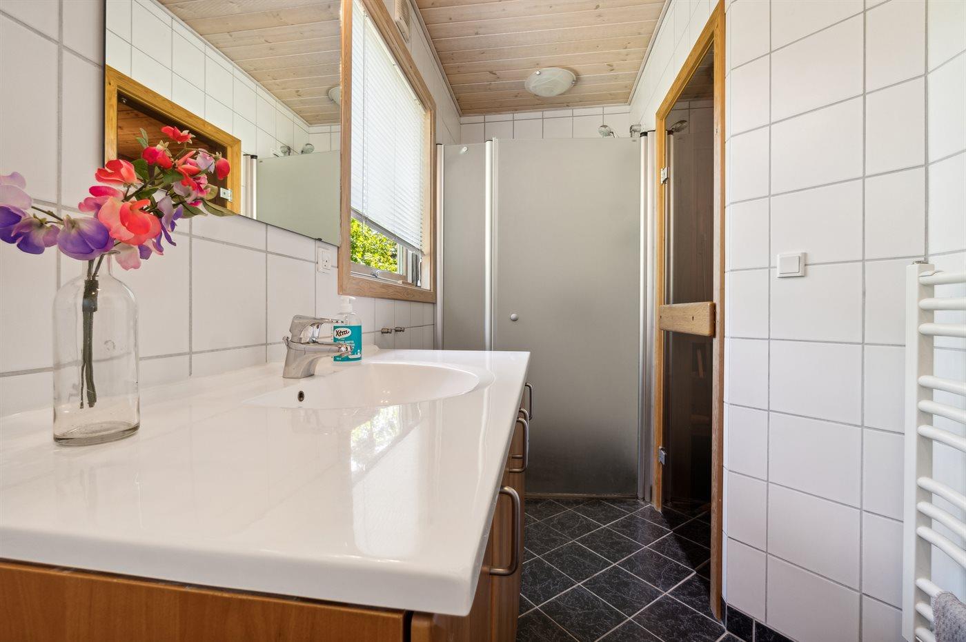 Er is 1 badkamer met douchehok en 1 toilet.. Er is vloerverwarming in 1 badkamer. De sauna biedt de gelegenheid tot ontspanning.