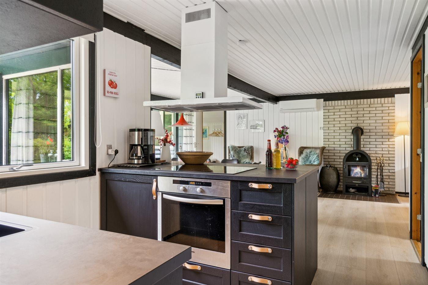 De keuken is uitgerust met koelkast Er is 1 inductiekookplaten, heteluchtoven, magnetron en vaatwasser.