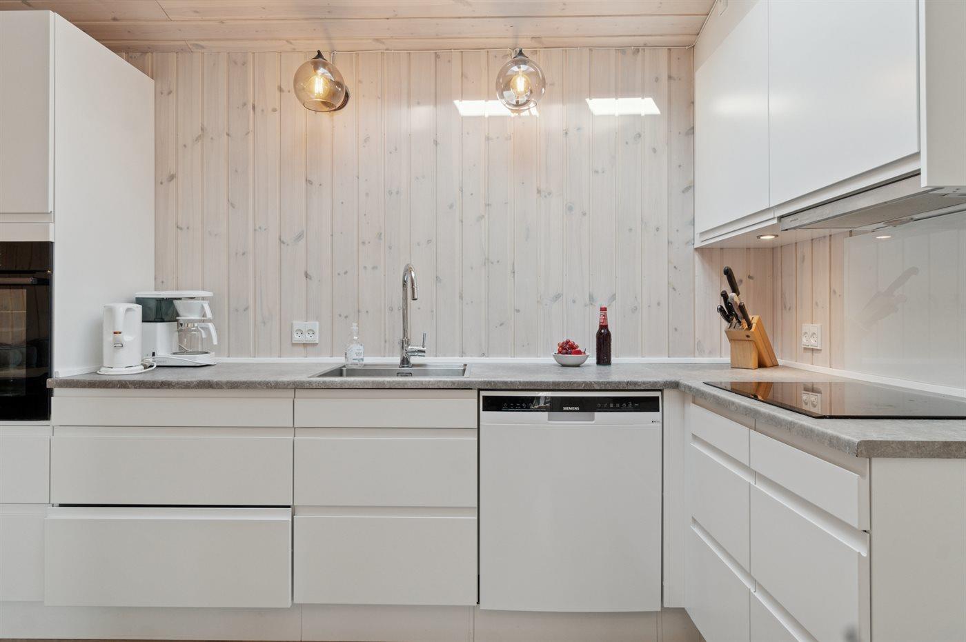 De keuken is uitgerust met koelkast Er is 4 inductiekookplaten, heteluchtoven en vaatwasser.