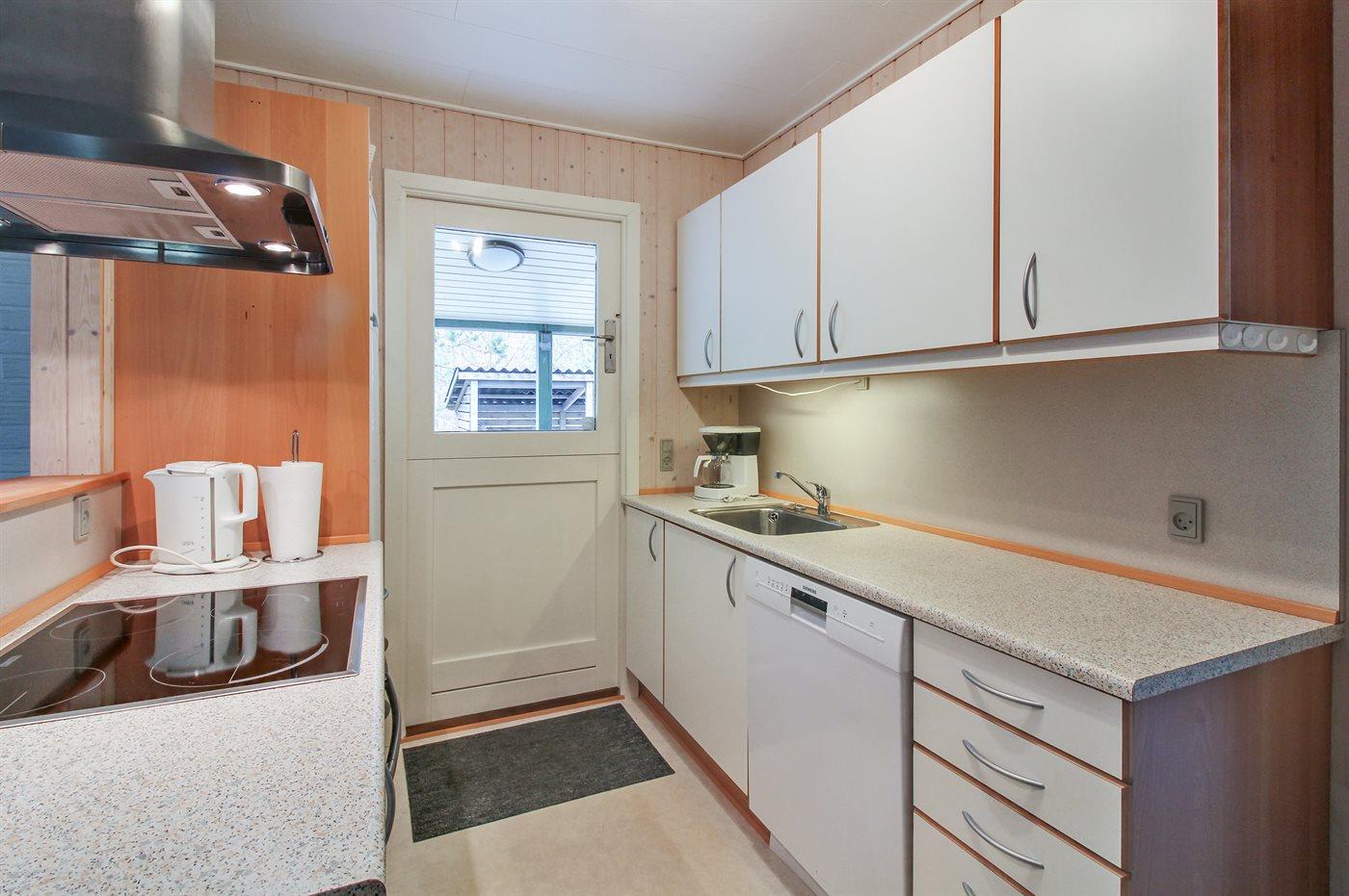 De keuken is uitgerust met koelkast Er zijn 4 keramische kookplaten, heteluchtoven en vaatwasser.