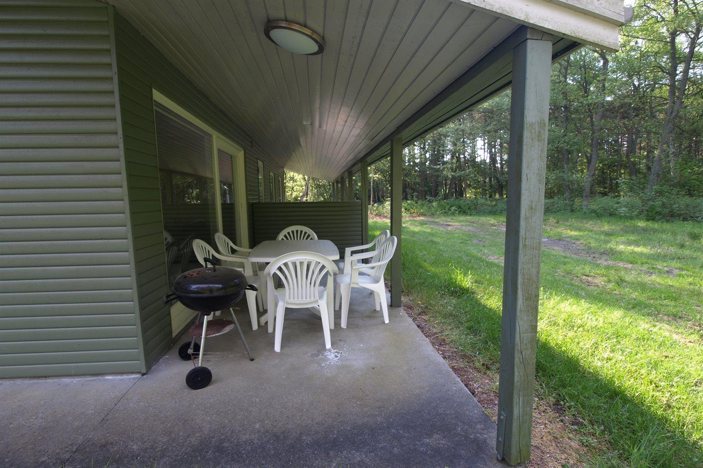 Rustig gelegen vakantiehuis bij zee met overdekt terras en houtkachel, ideaal voor natuurliefhebbers.